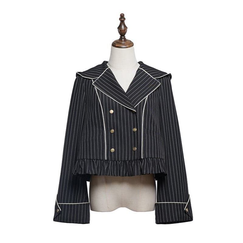 シックなデザインのフード付きダブルボタンショートコートが登場✦