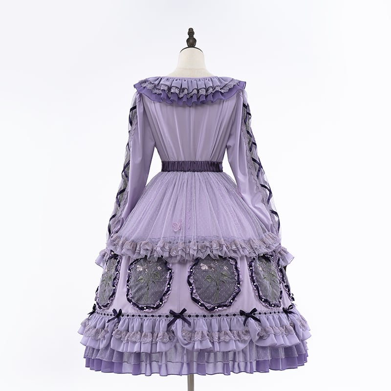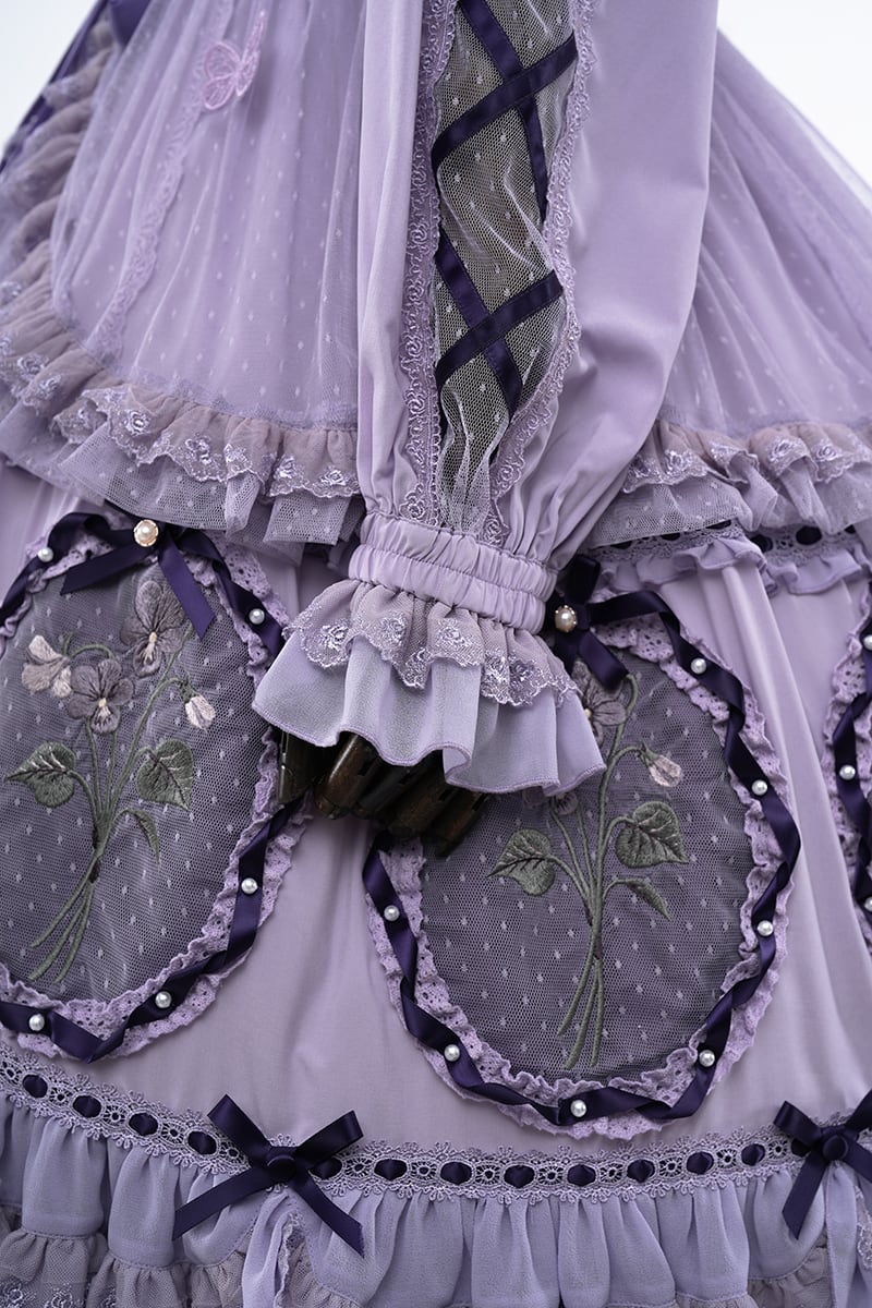 描き下ろしのオリジナルスミレ刺繍をスカートへ贅沢にあしらいました✽