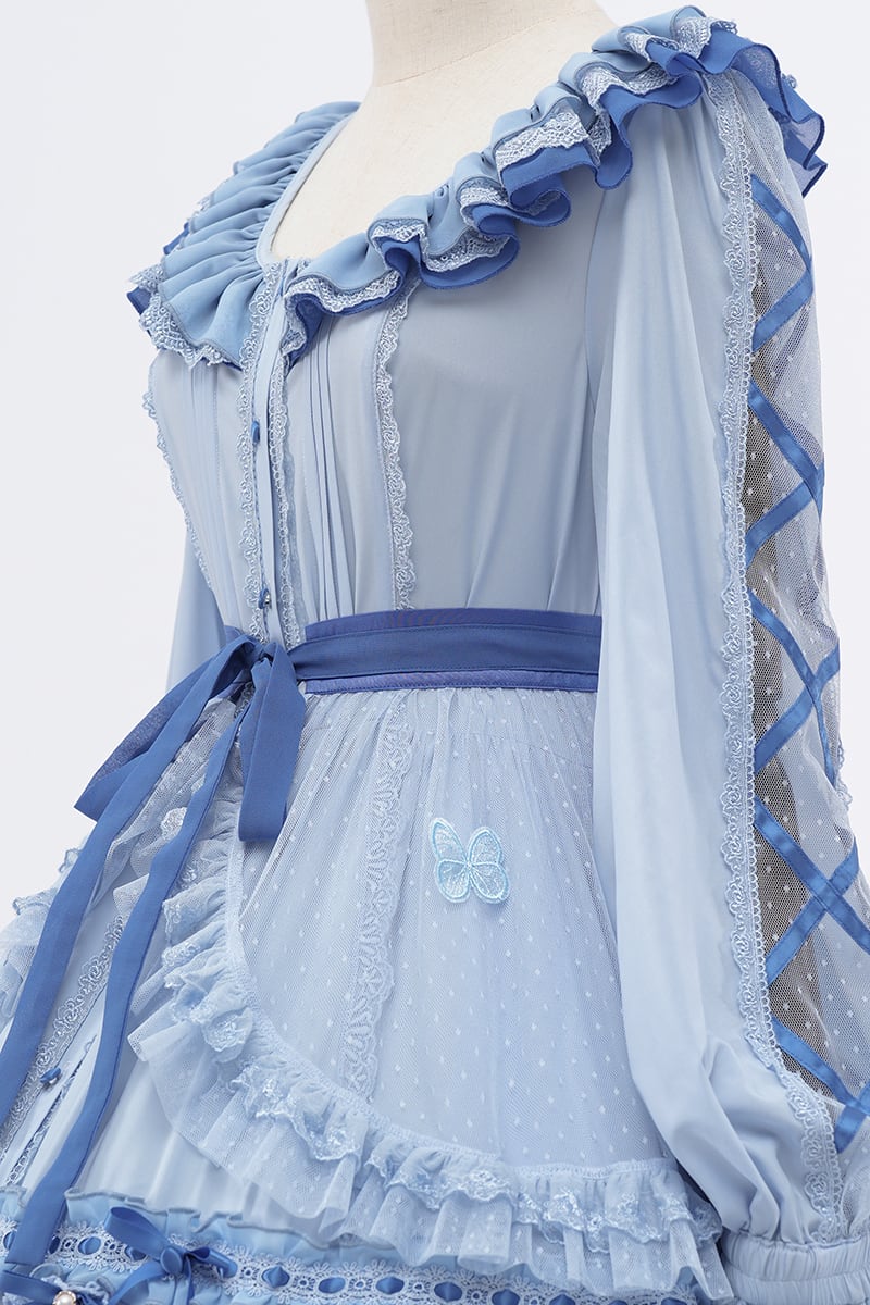可愛い蝶モチーフレース付きのオーバースカートは取り外し可能でケープとしてアレンジ使いしても♡