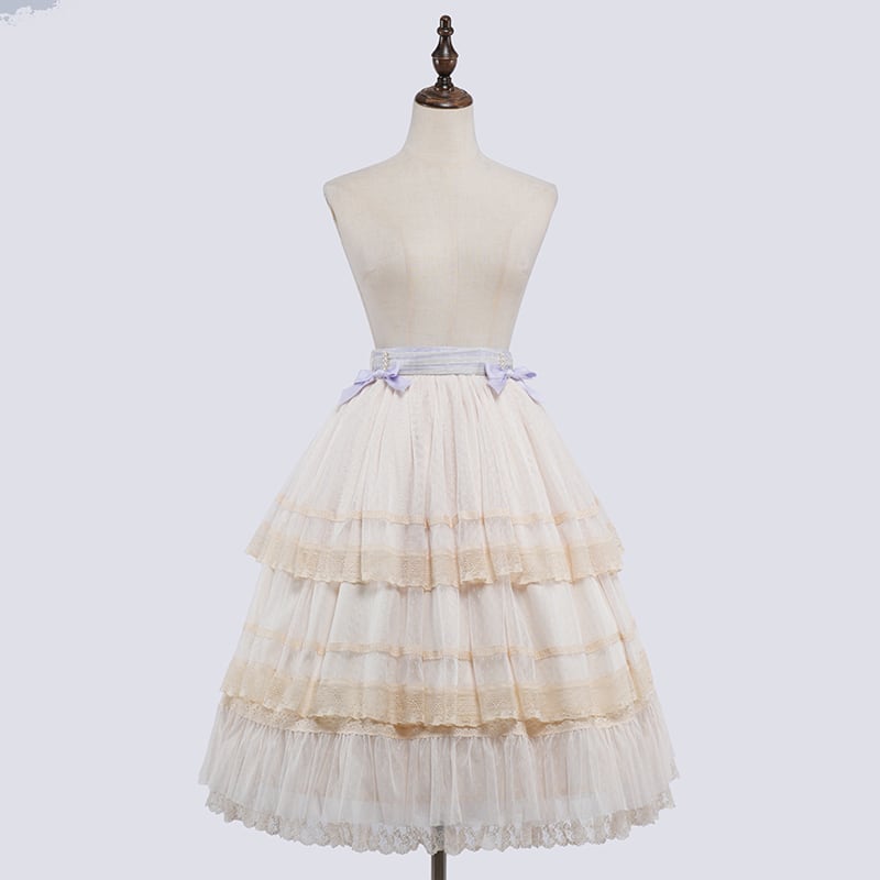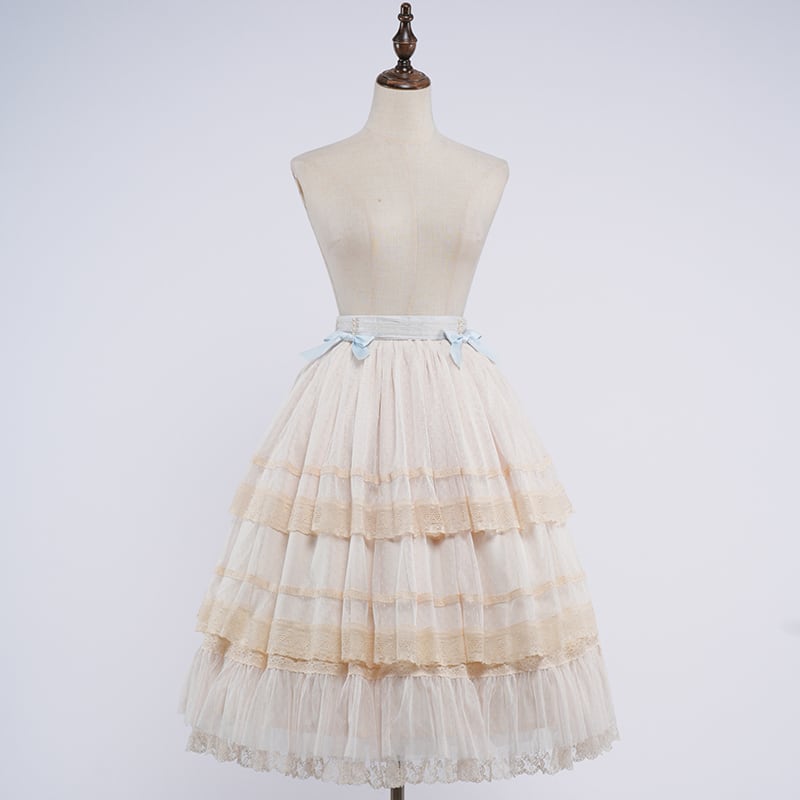 ふんわりと揺れるエアリーなチュールのレイヤードスカート。