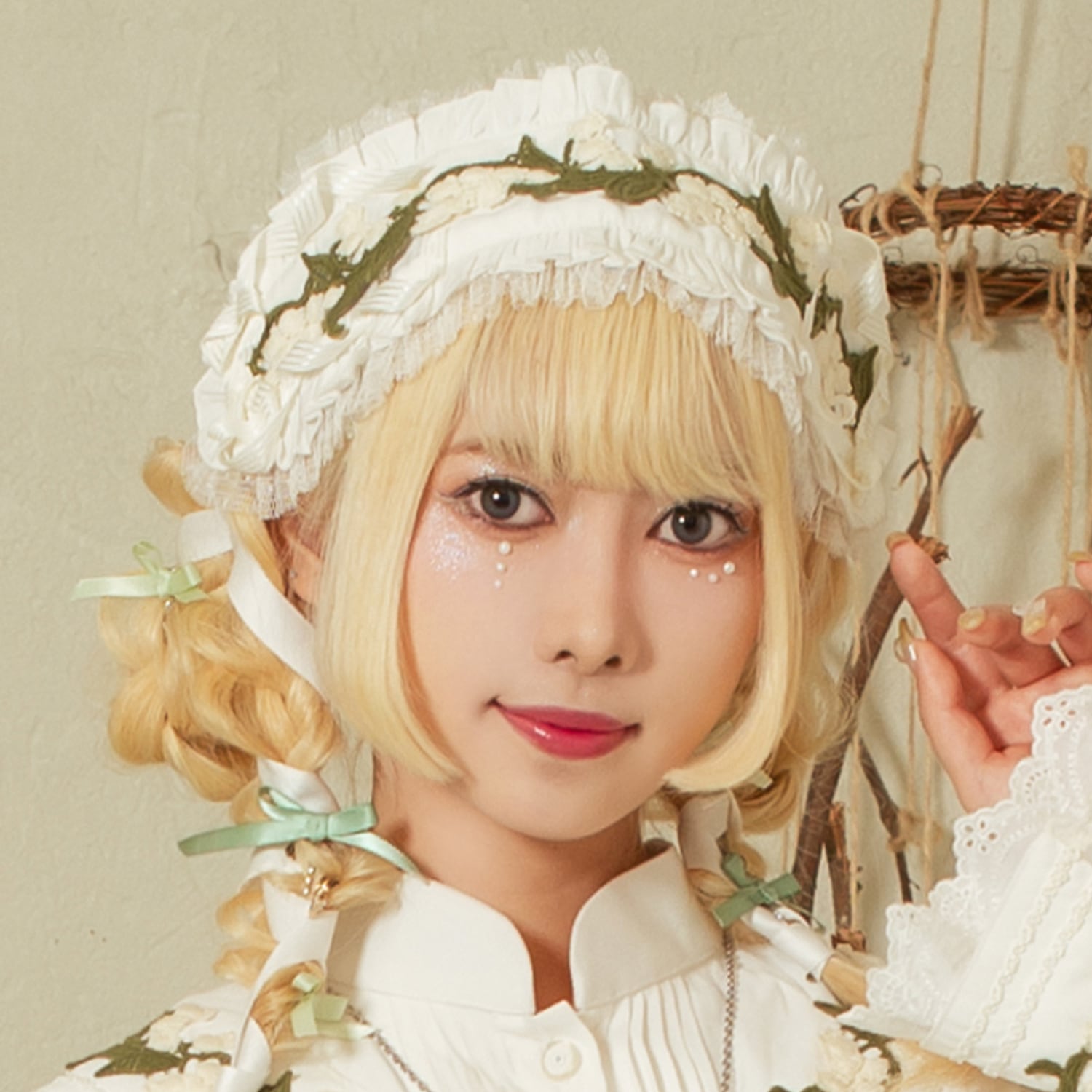 大ぶりな鈴蘭のレースをあしらった可憐なヘッドドレス。
