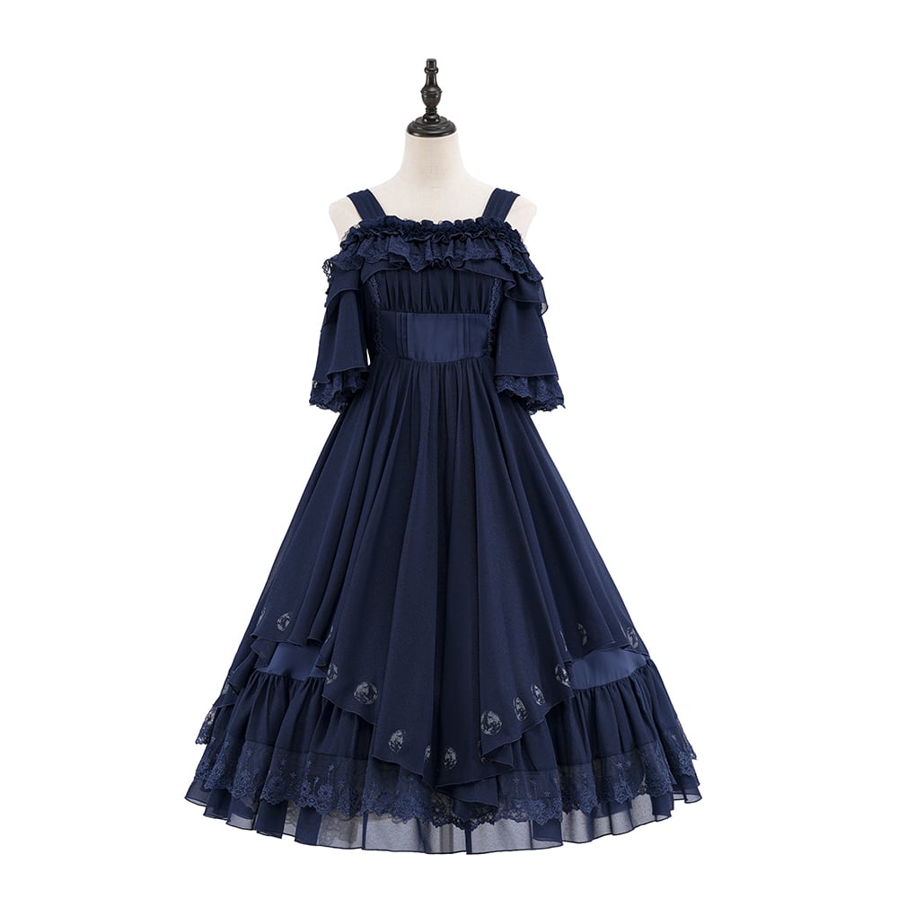 美しく輝く月の満ち欠けをテーマにした華麗なオフショルワンピースが登場。