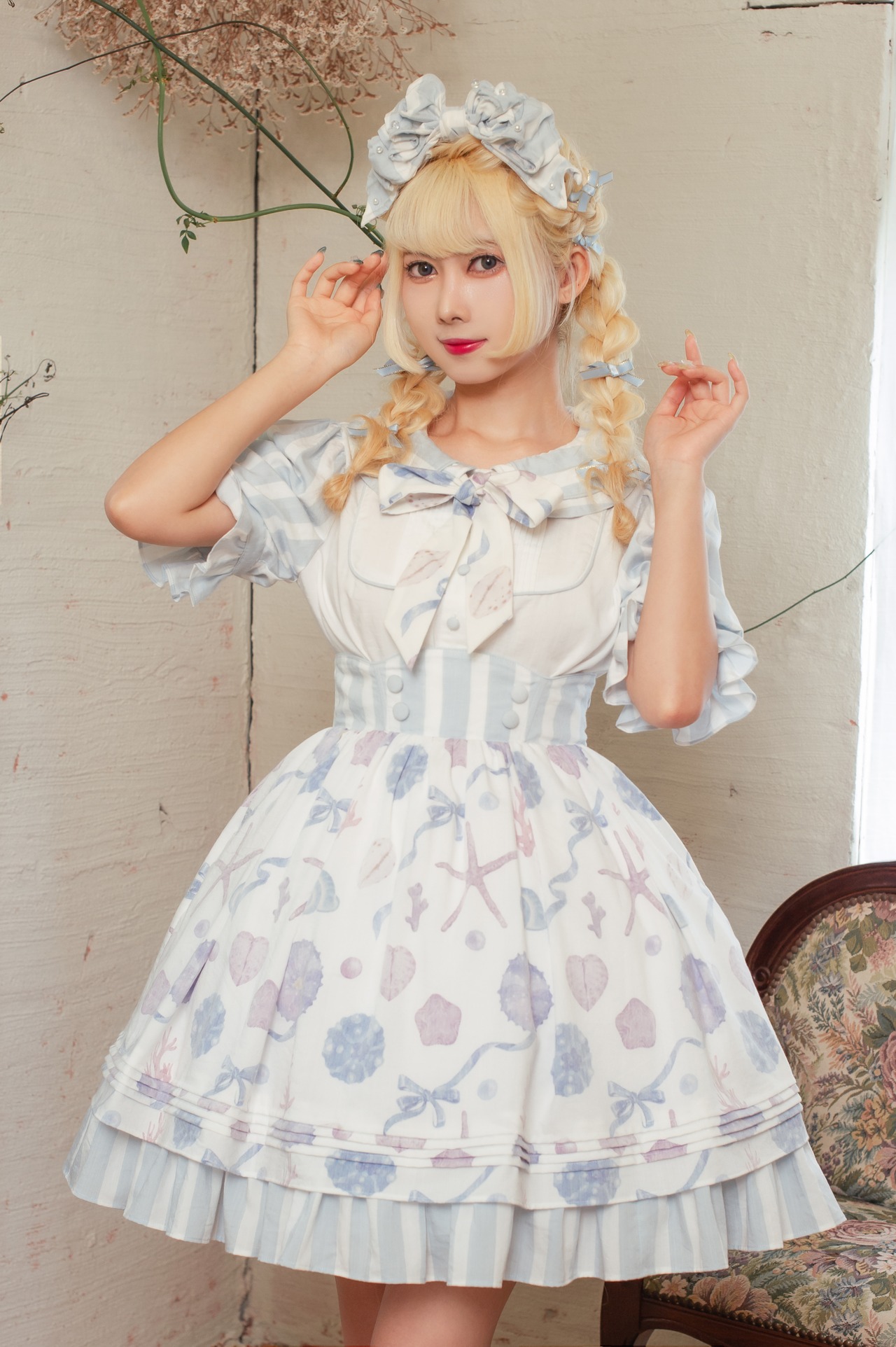 さわやかなボーダーの丸襟とフリルは、パステルカラーのお洋服と相性◎