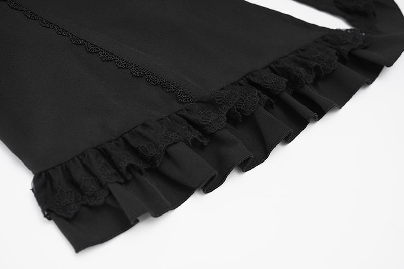 燕尾風の裾やちりばめたレース、フリルが華やかなブラウス。