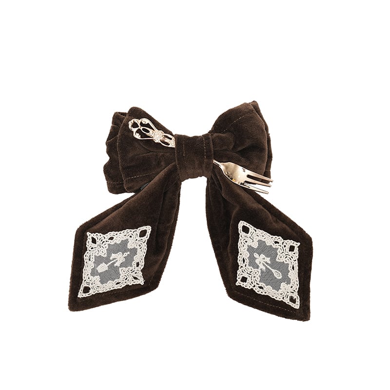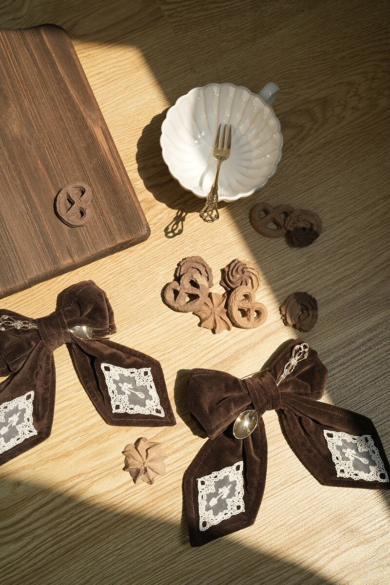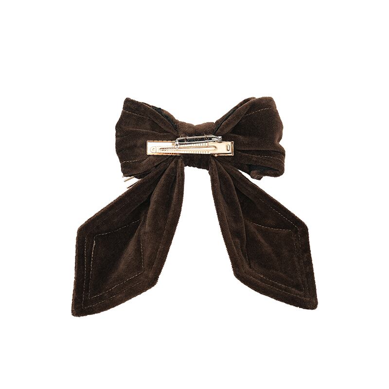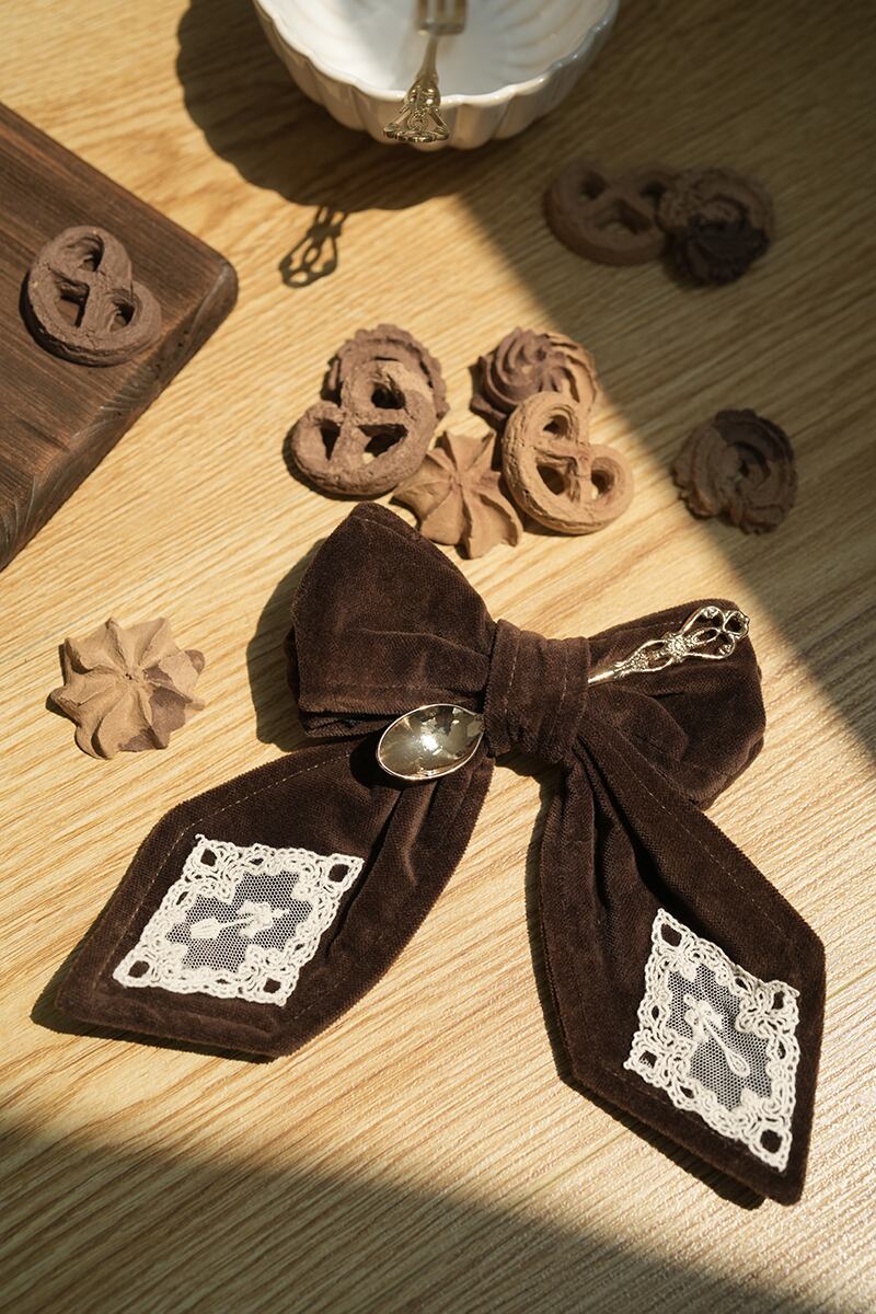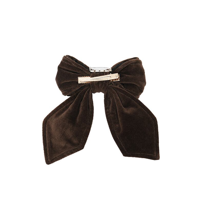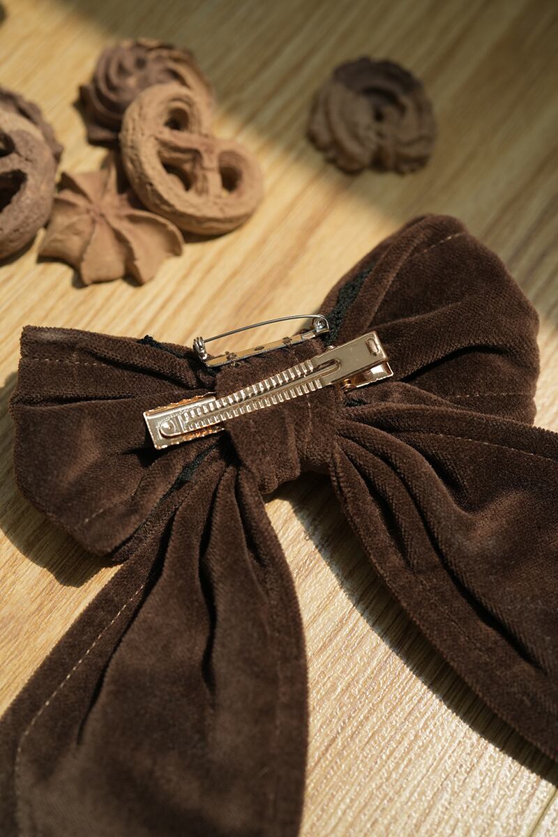 チョコレートブラウンのこっくりとした色合いが可愛らしいリボンクリップ。