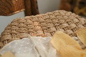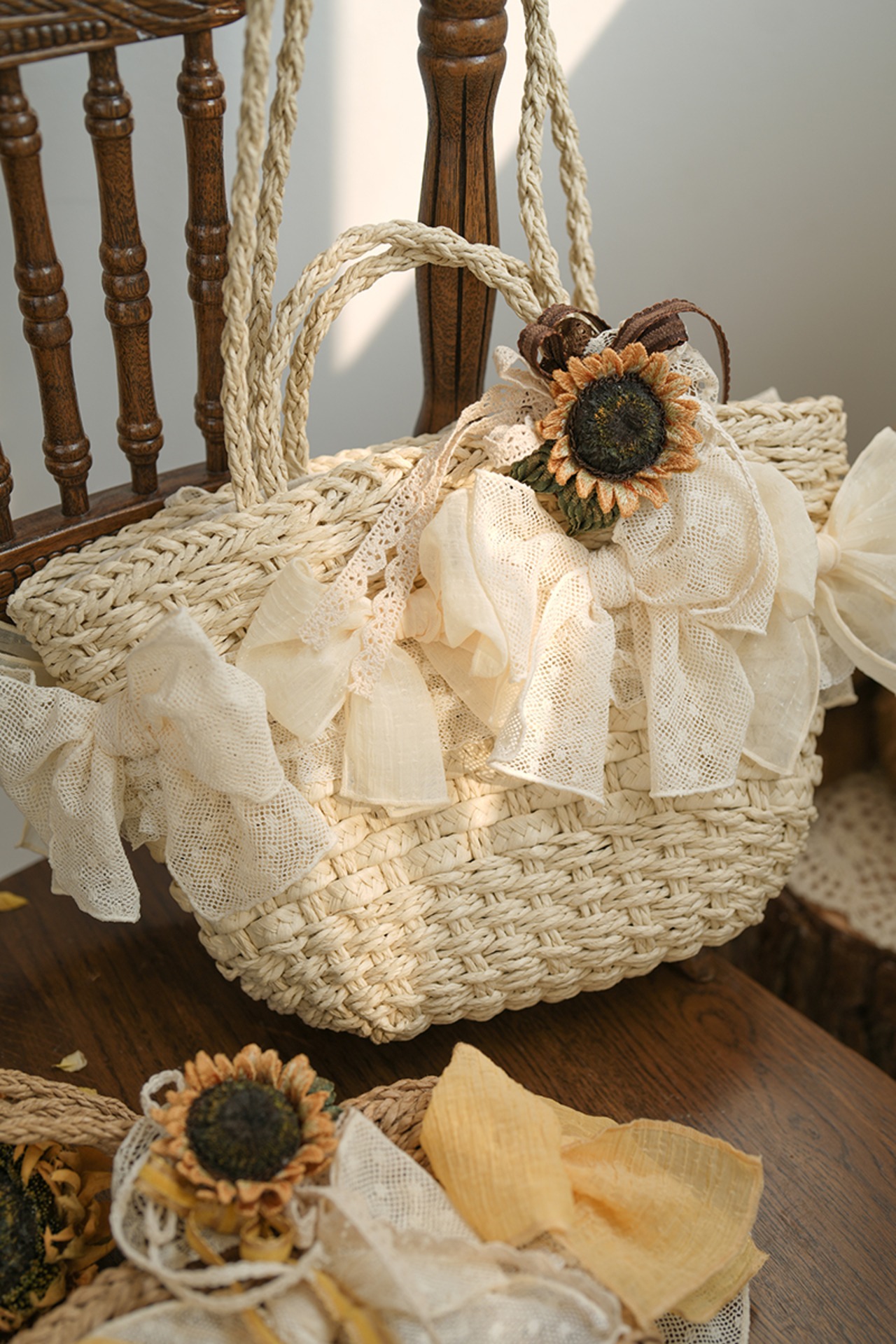 まるで向日葵の花びらのようなリボンをあしらったバスケット。