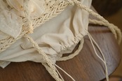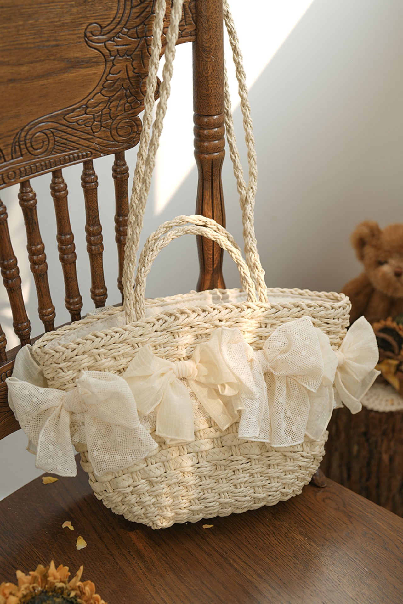 丁寧に編み込まれたバスケットにチュール素材のリボンをたっぷりあしらいました♡