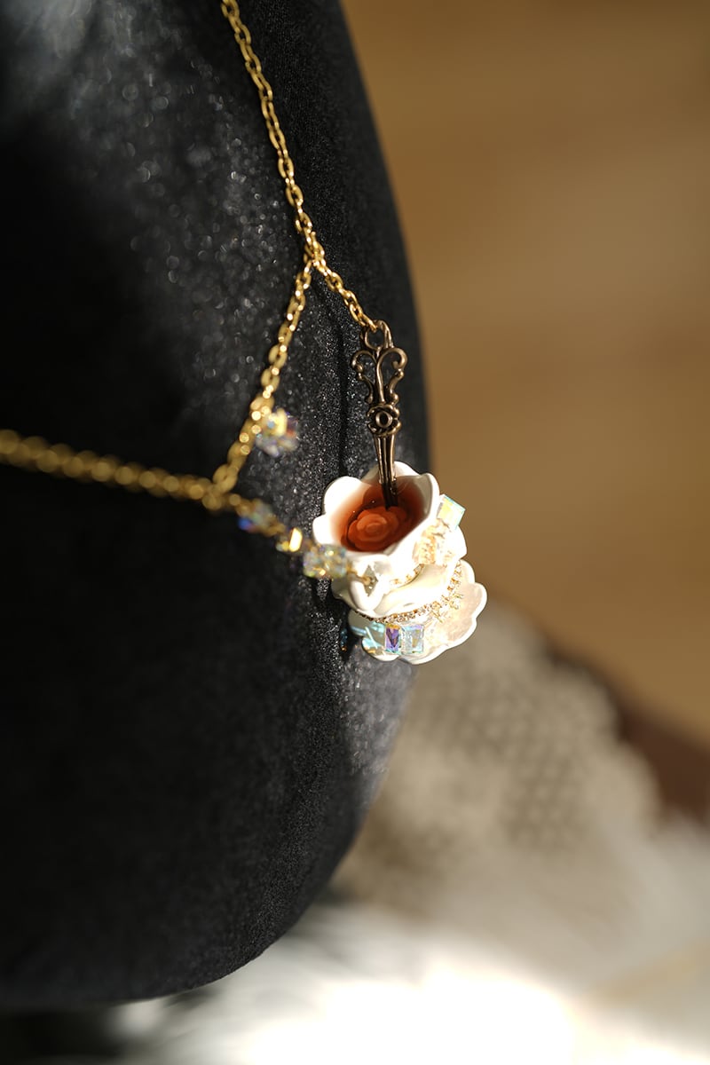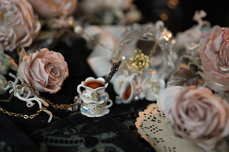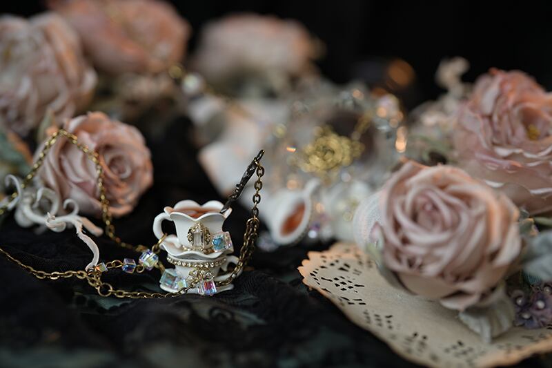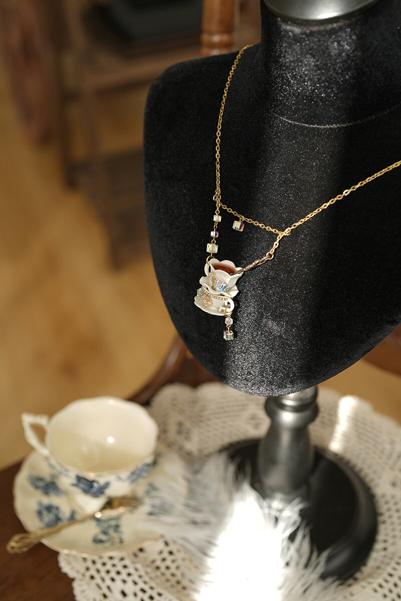 貴婦人のティータイムを思わせるティーカップが主役のネックレス。