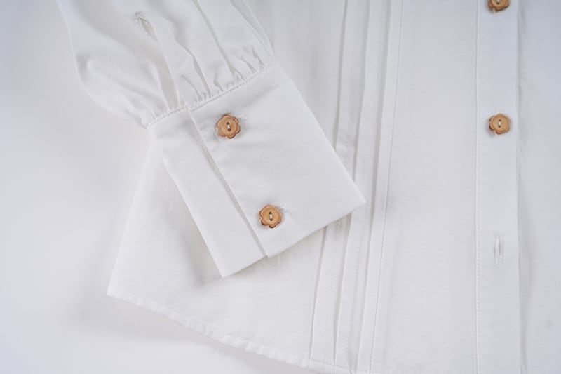 コスモスの刺繍が首元を彩るシンプルなピンタックブラウス。