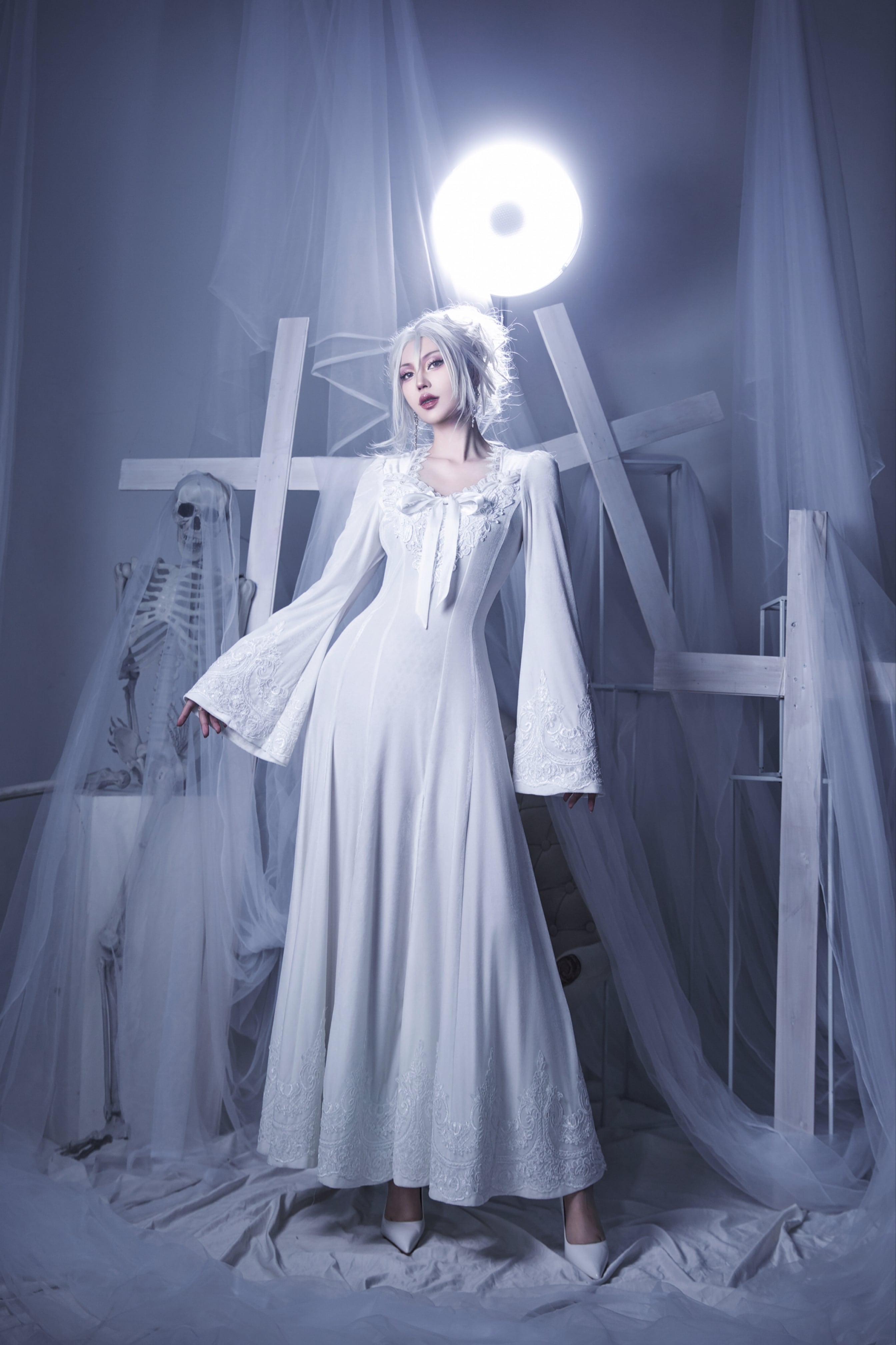 優美なシルエットとラグジュアリーなレースが施されたワンピース。