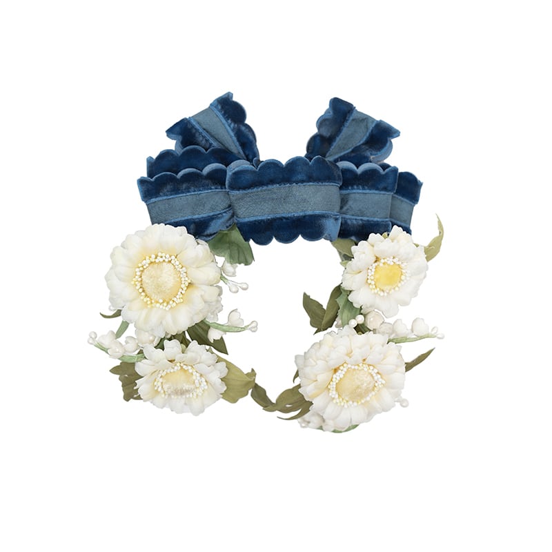 トップのベロアリボンはスカラップデザインで存在感抜群。