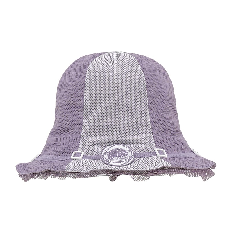遊び心のあるメッシュのフリルをブリムにたっぷりあしらいました。