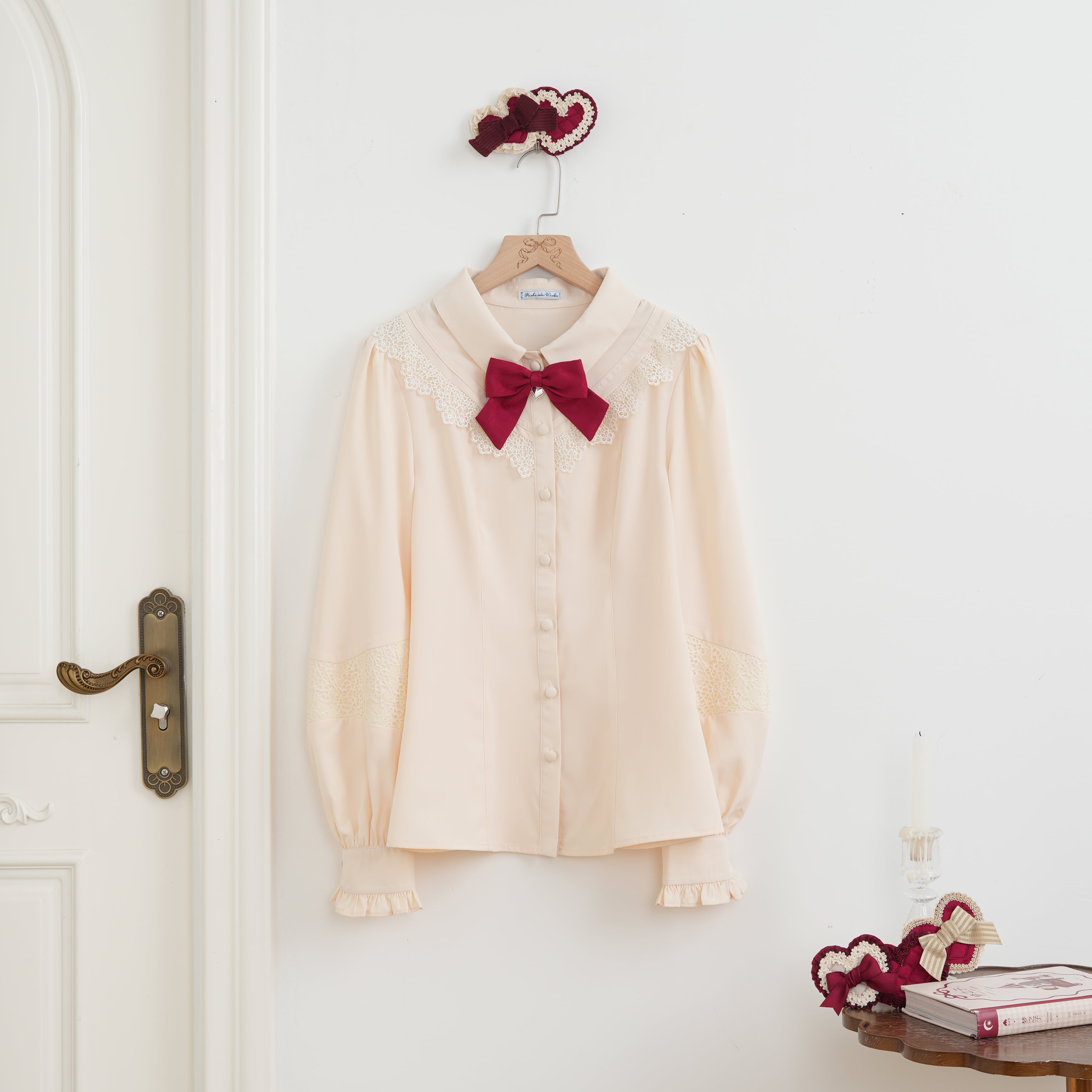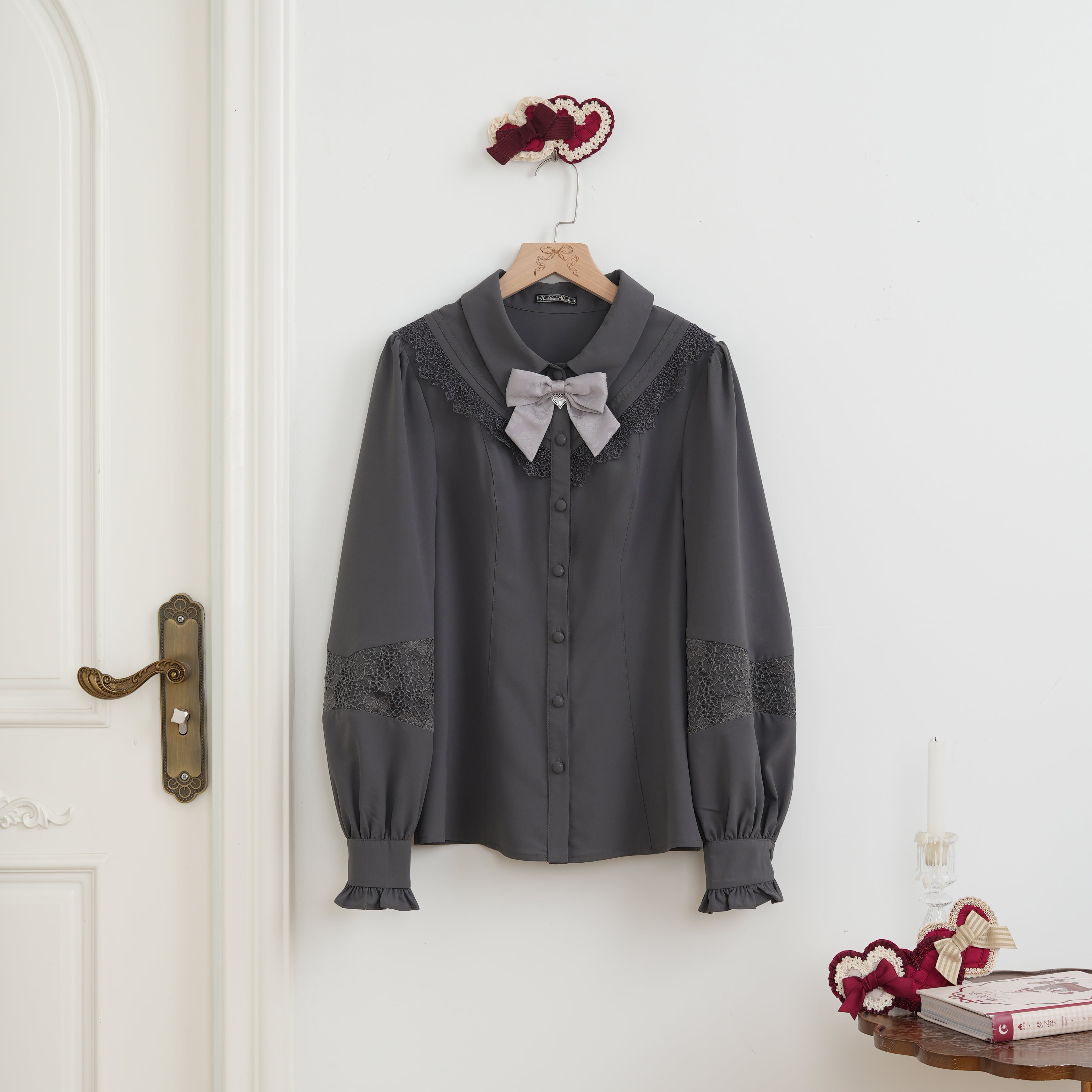チャームが揺れる胸元のリボンはクリップタイプの為、お洋服のアレンジ以外にも。