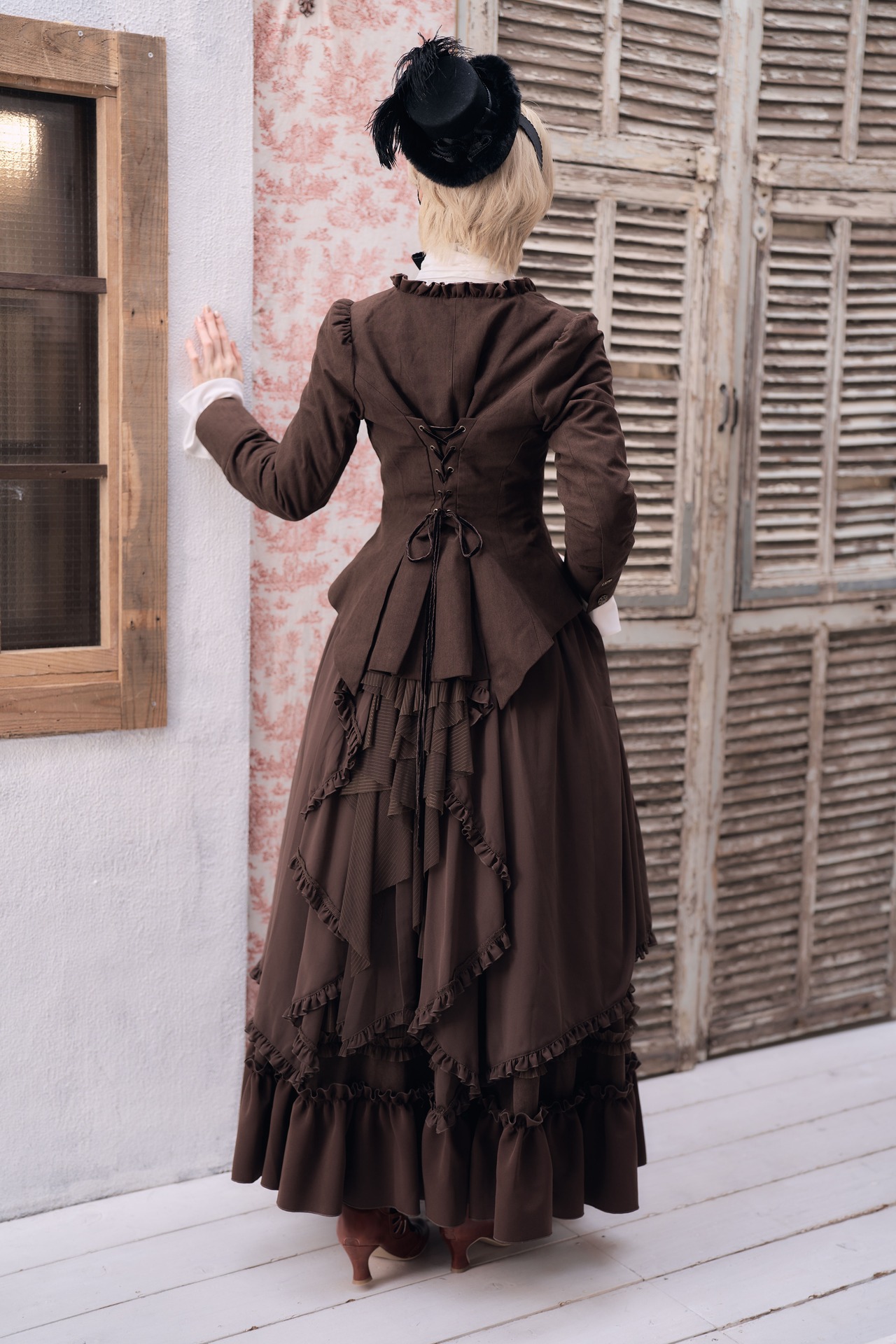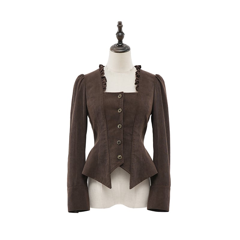 フロントに並んだボタンのアンティークな色味がヴィンテージな雰囲気を醸し出す、エレガントなデザイン。