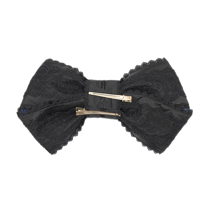 レースとパターンの重なりが美しい、モダンな雰囲気のリボンクリップ。