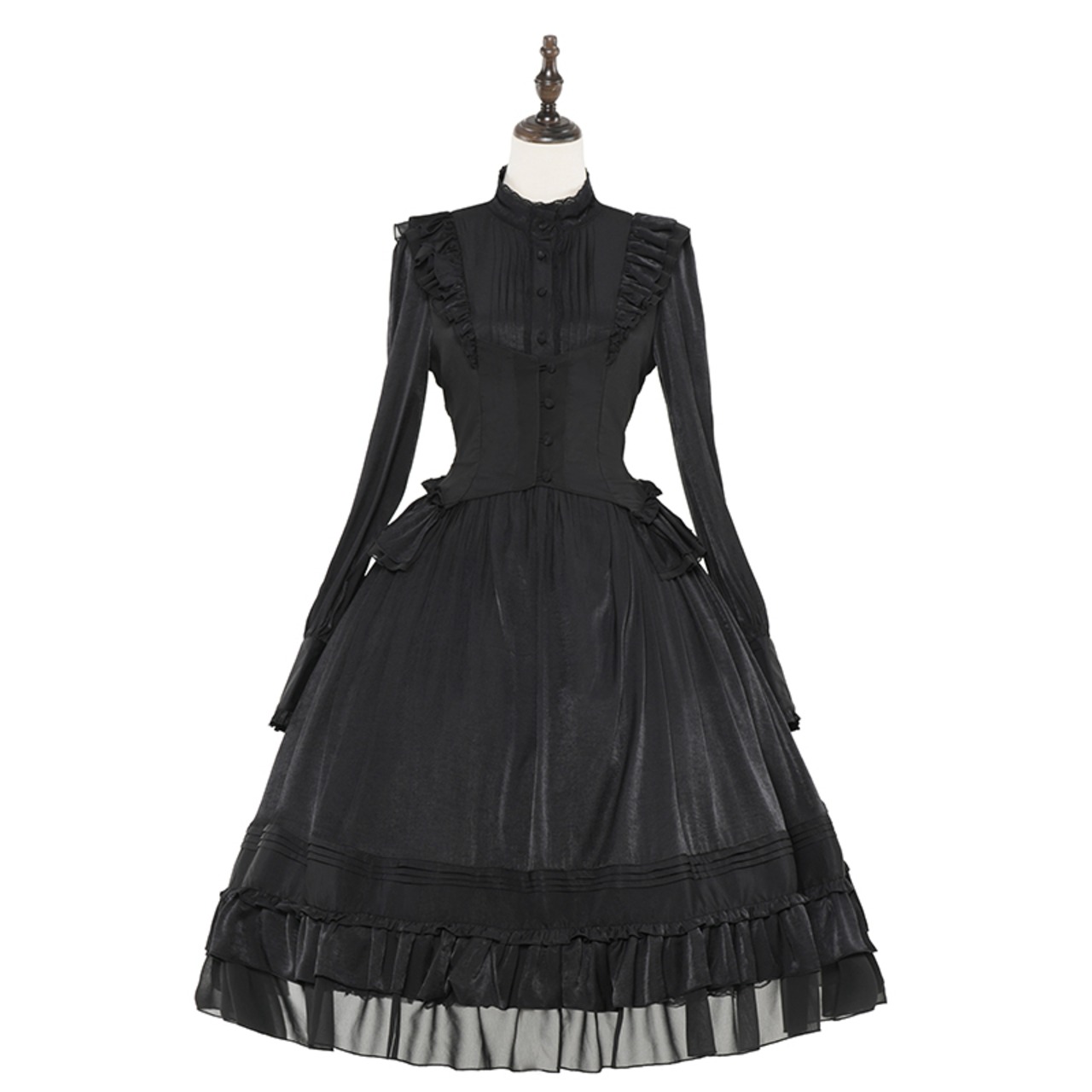 肩周りのフリルや、裾からのぞく二段フリルが華やかさを演出。