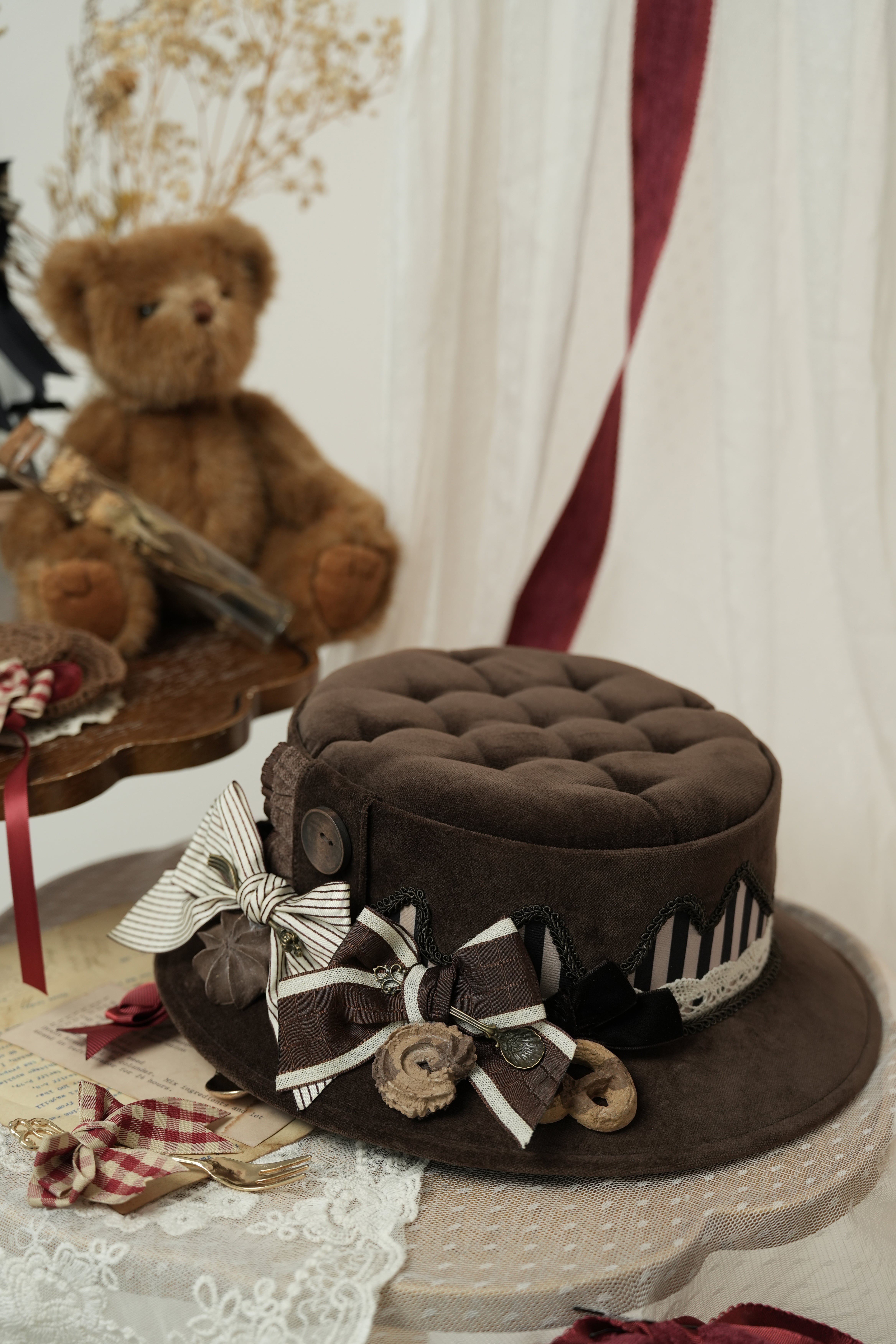 スプーンやストライプ、ベロアなど個性あふれるリボンたちが4つも集合しました。