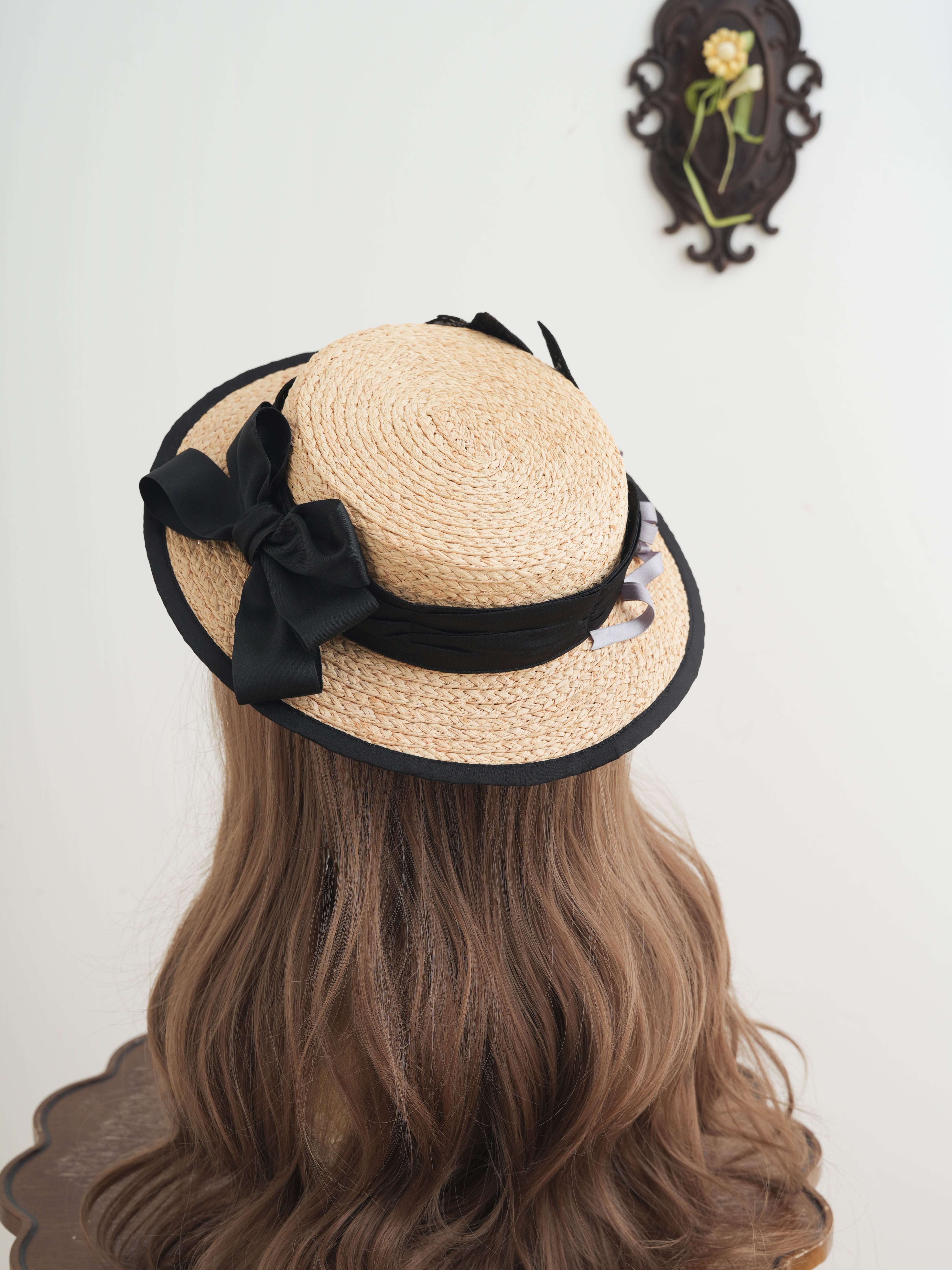 サイドの大きなリボンが可愛さをプラスした帽子。