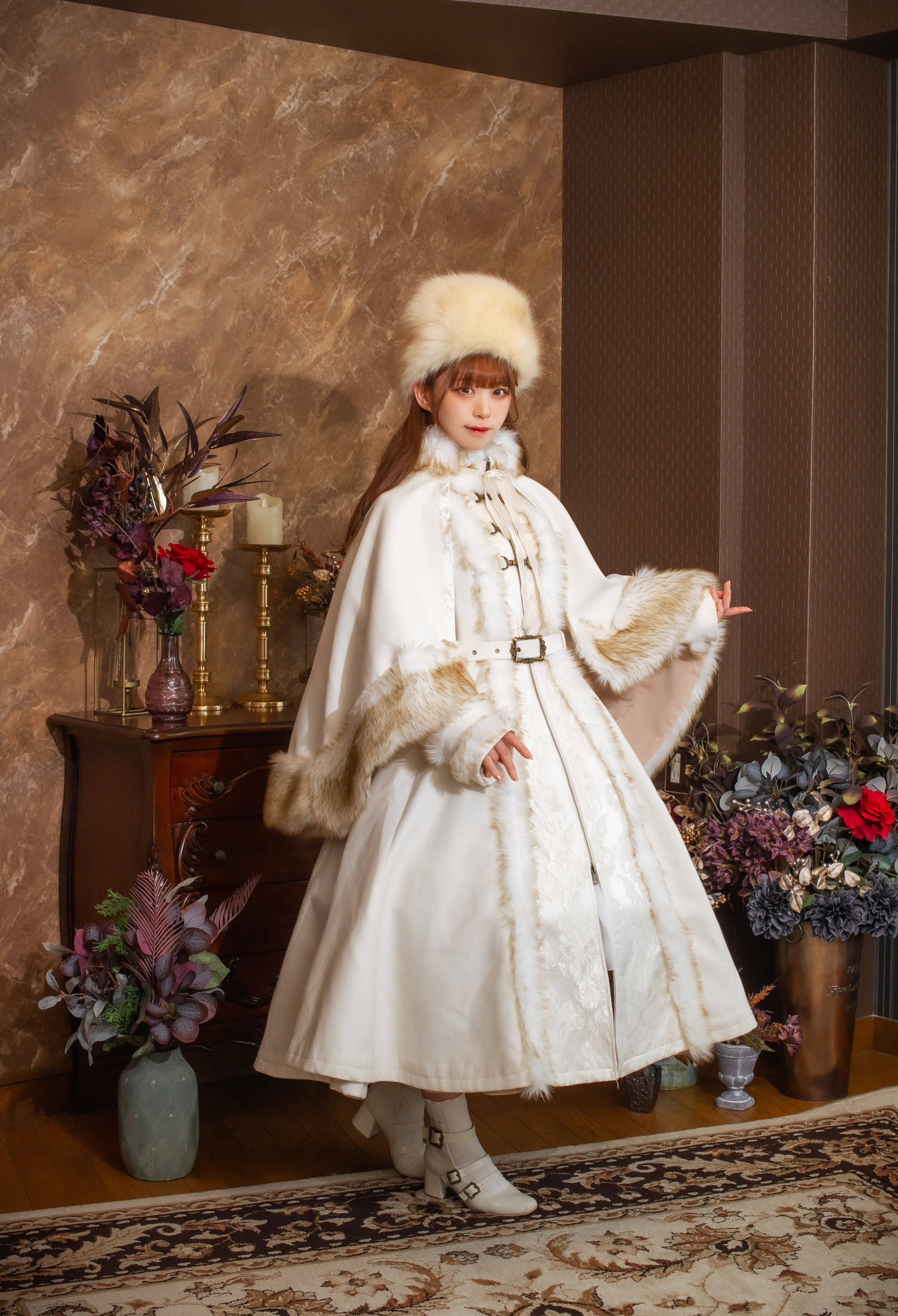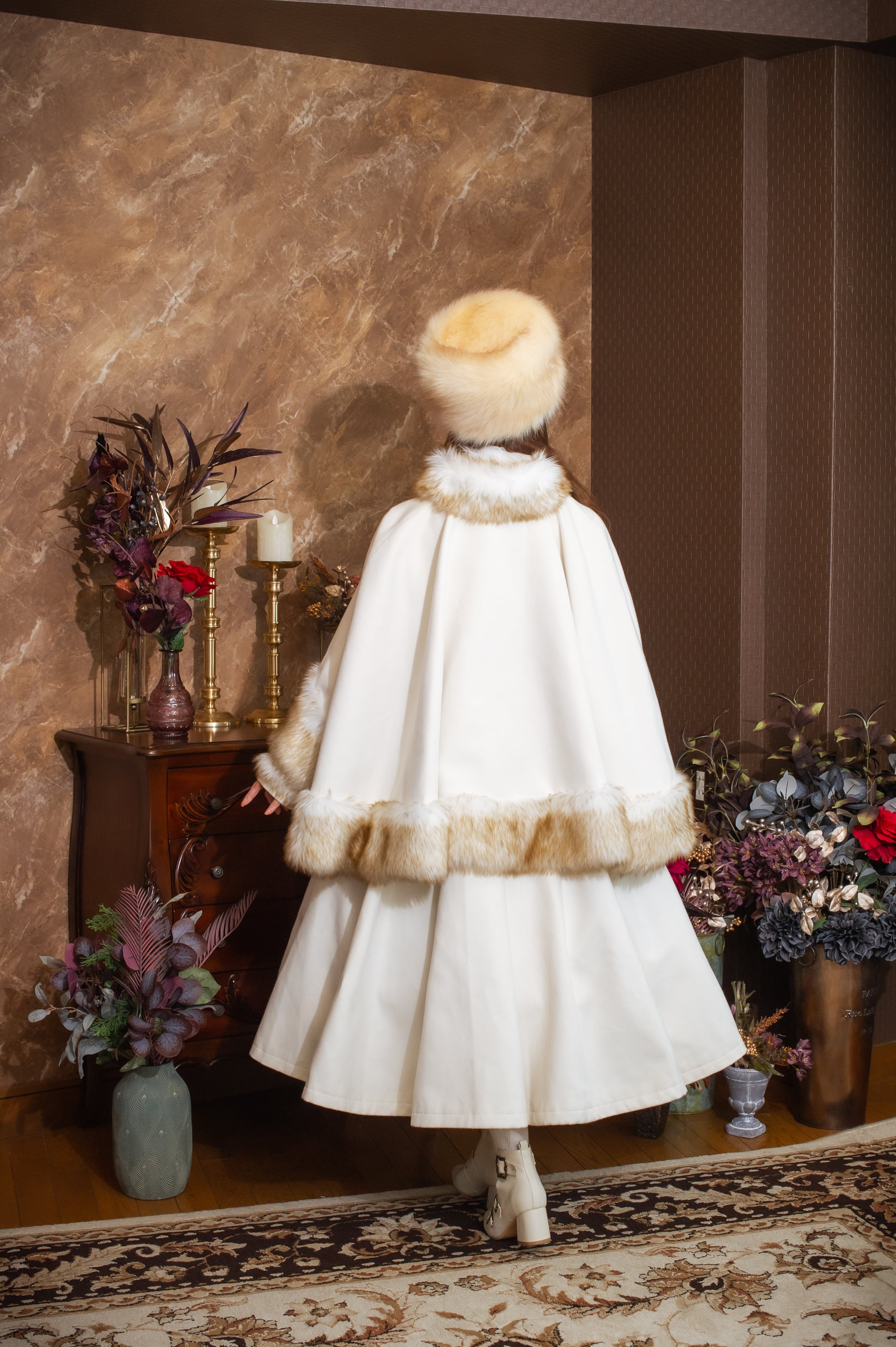 ふわふわのファーが妖精の女王の威厳と品格を演出。
