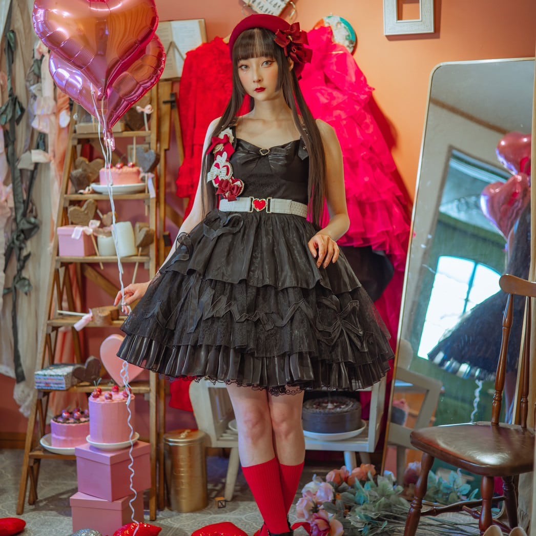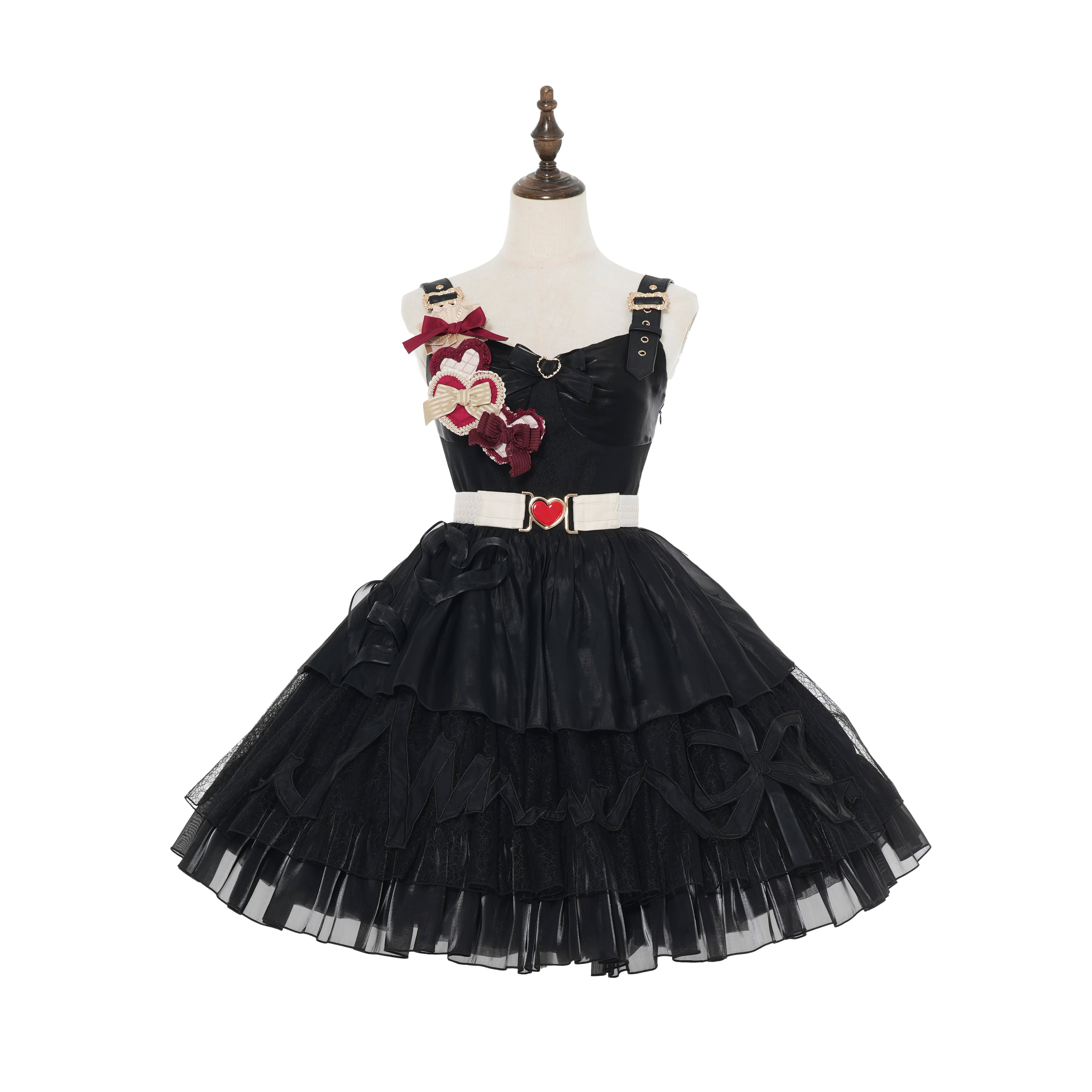 こちらの商品はジャンパースカート+ハートブローチ+ベルトの3点セットとなります。