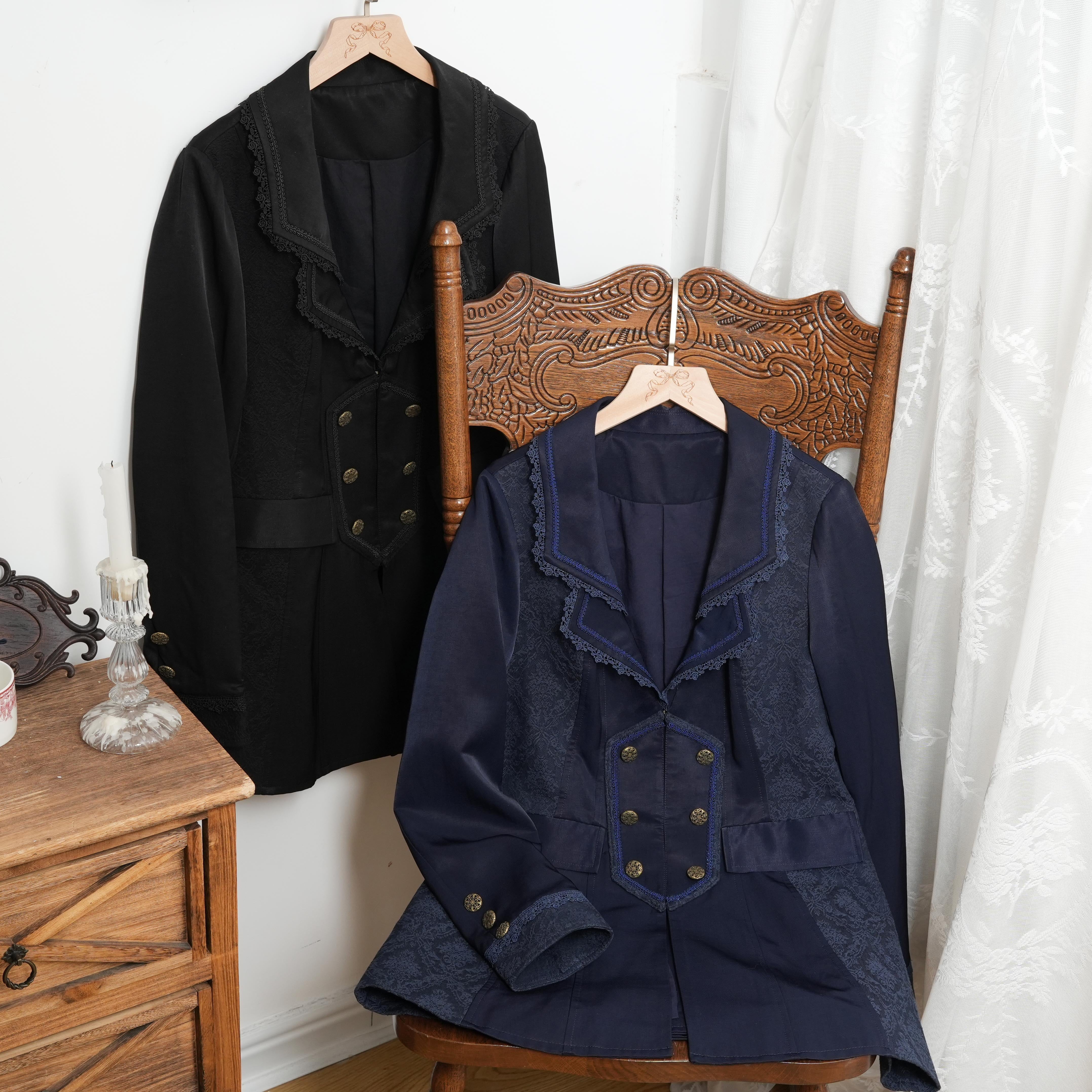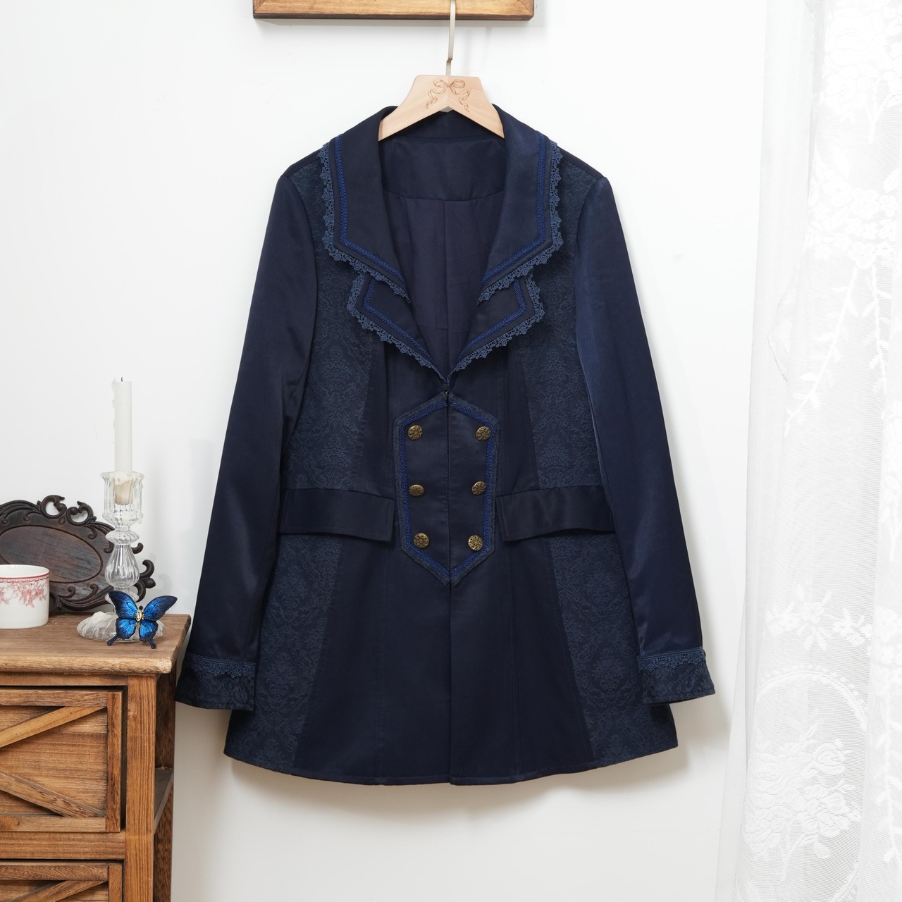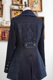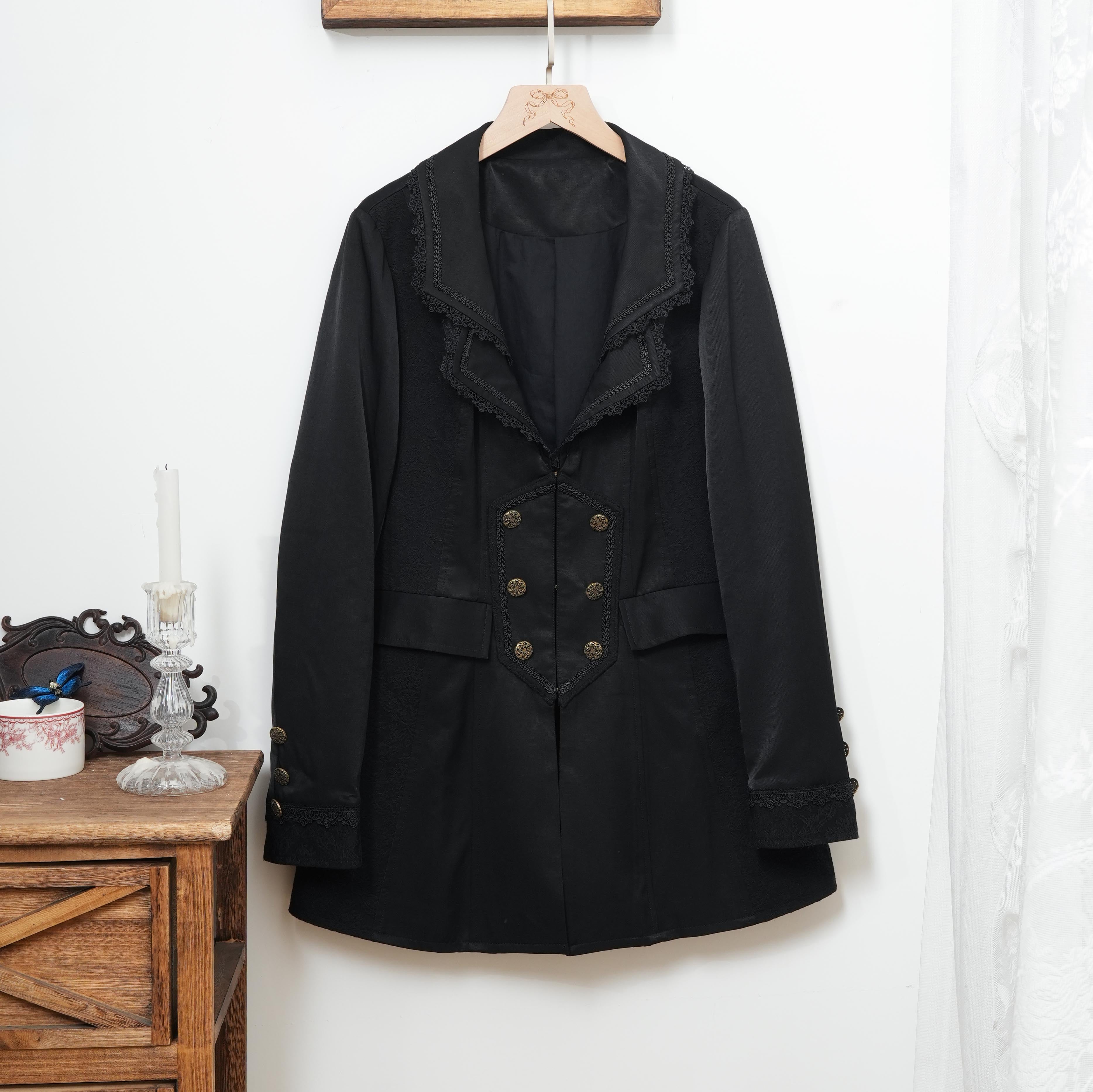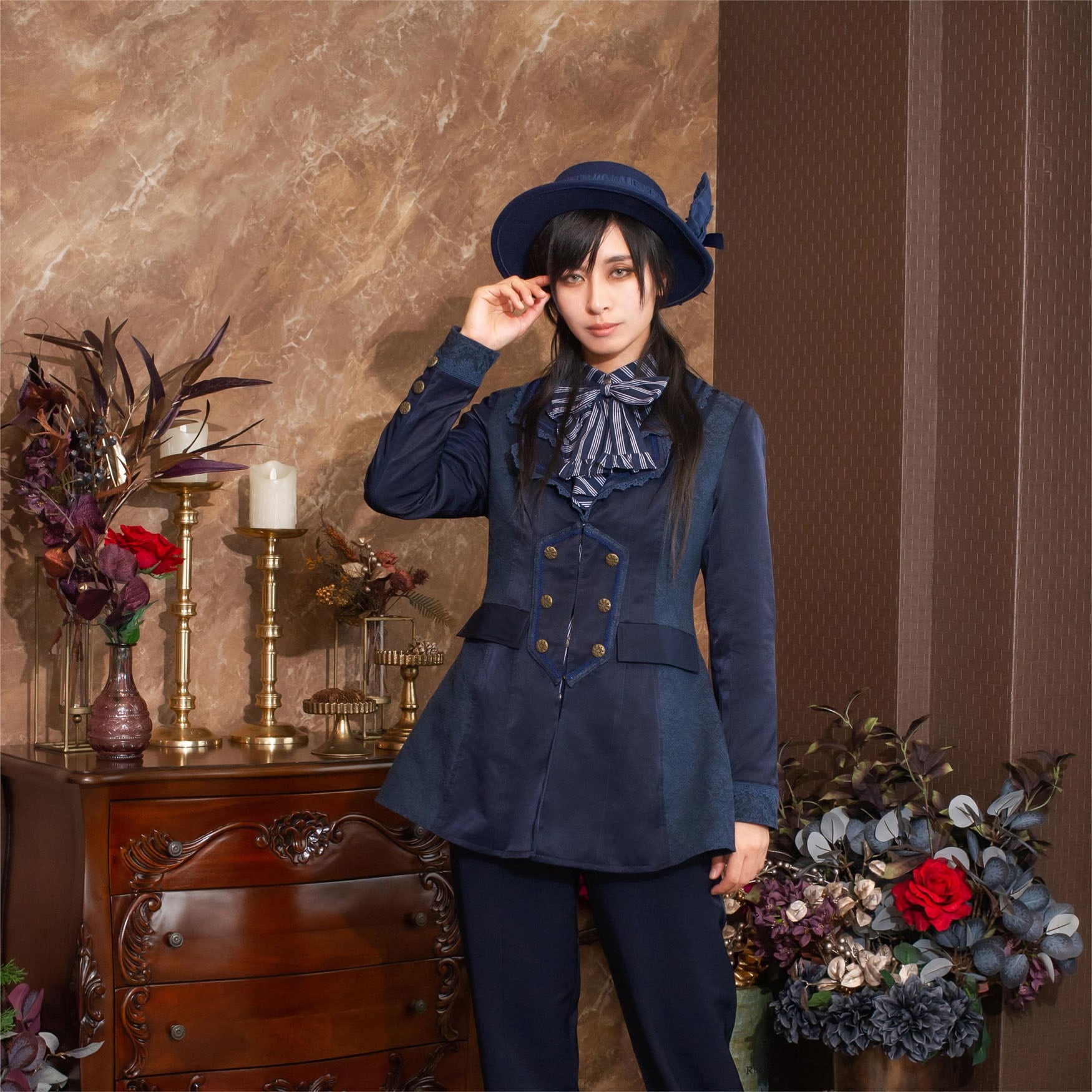 シックなカラーにアンティーク調のダブルボタンが引き立つジャケット。