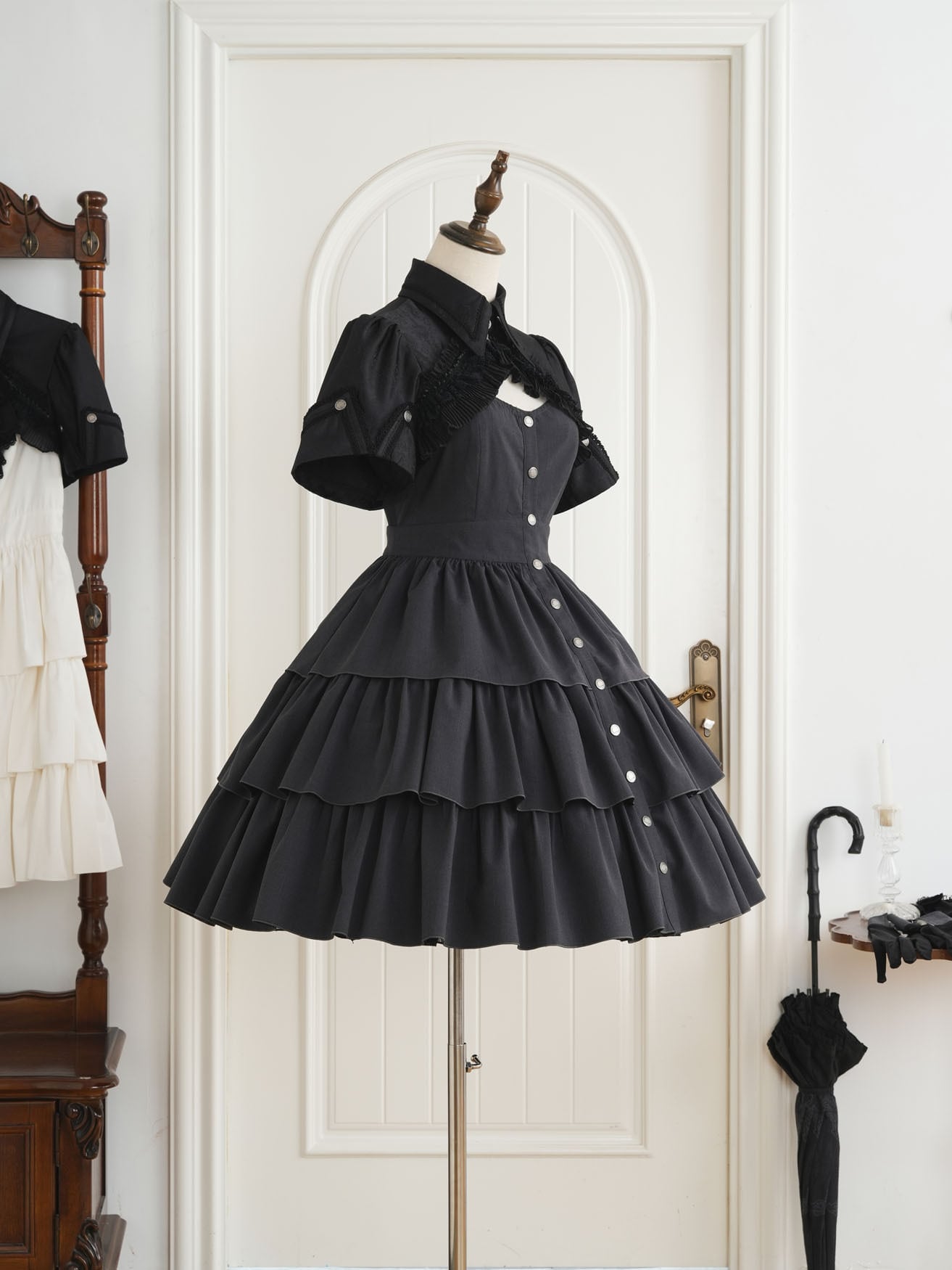 ショートボレロ風ワンピース、コルセット、ジャボタイの3点セットアイテムです。