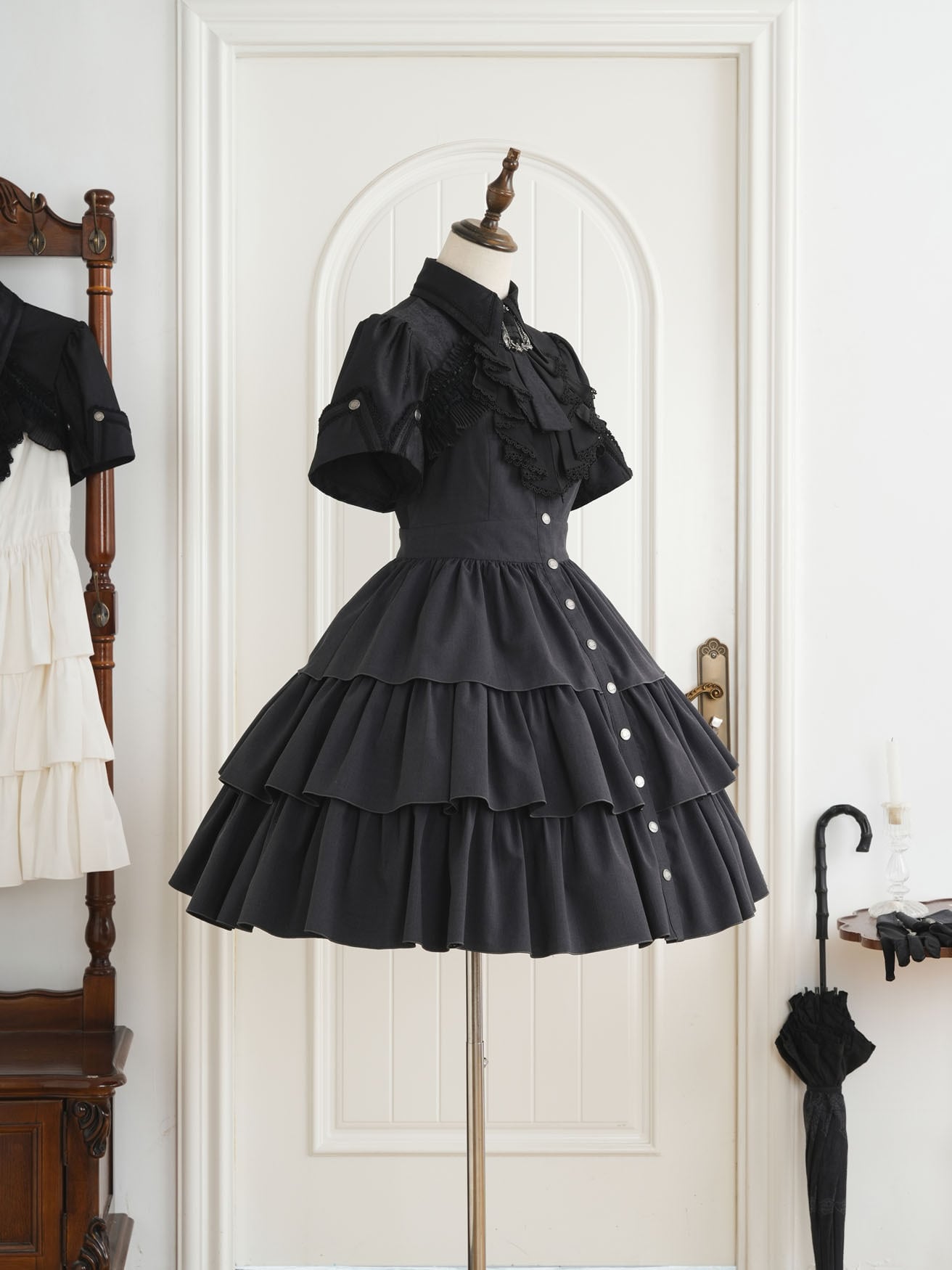 ワンピースはフロントオープン。ジャボタイはスナップ式で付け外しが可能。