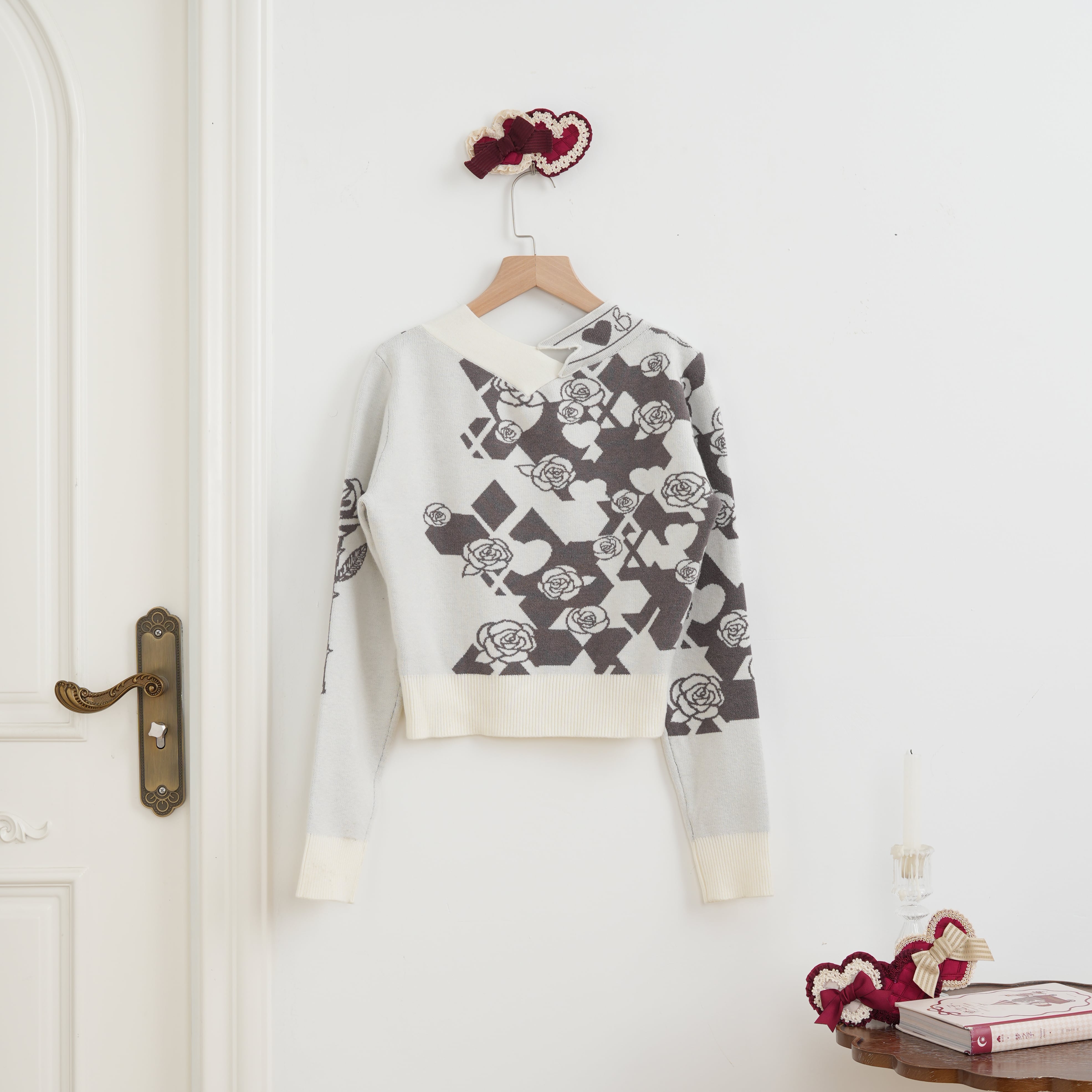 Vネックにラッピングリボン風のデザインを。施されたレタリングがおしゃれさをプラス。
