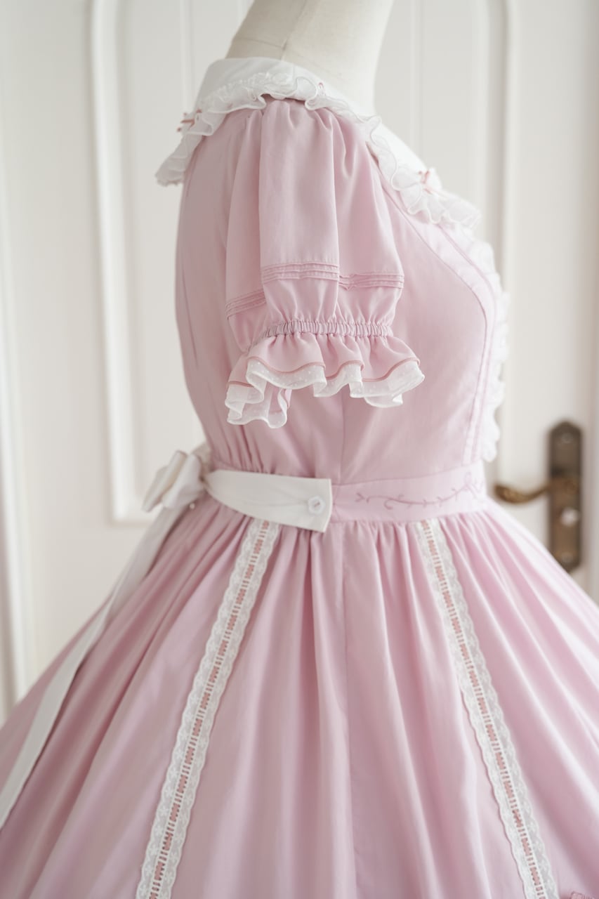 ウエスト周りの切り替えとリボンの刺繍でスタイルアップ効果も。