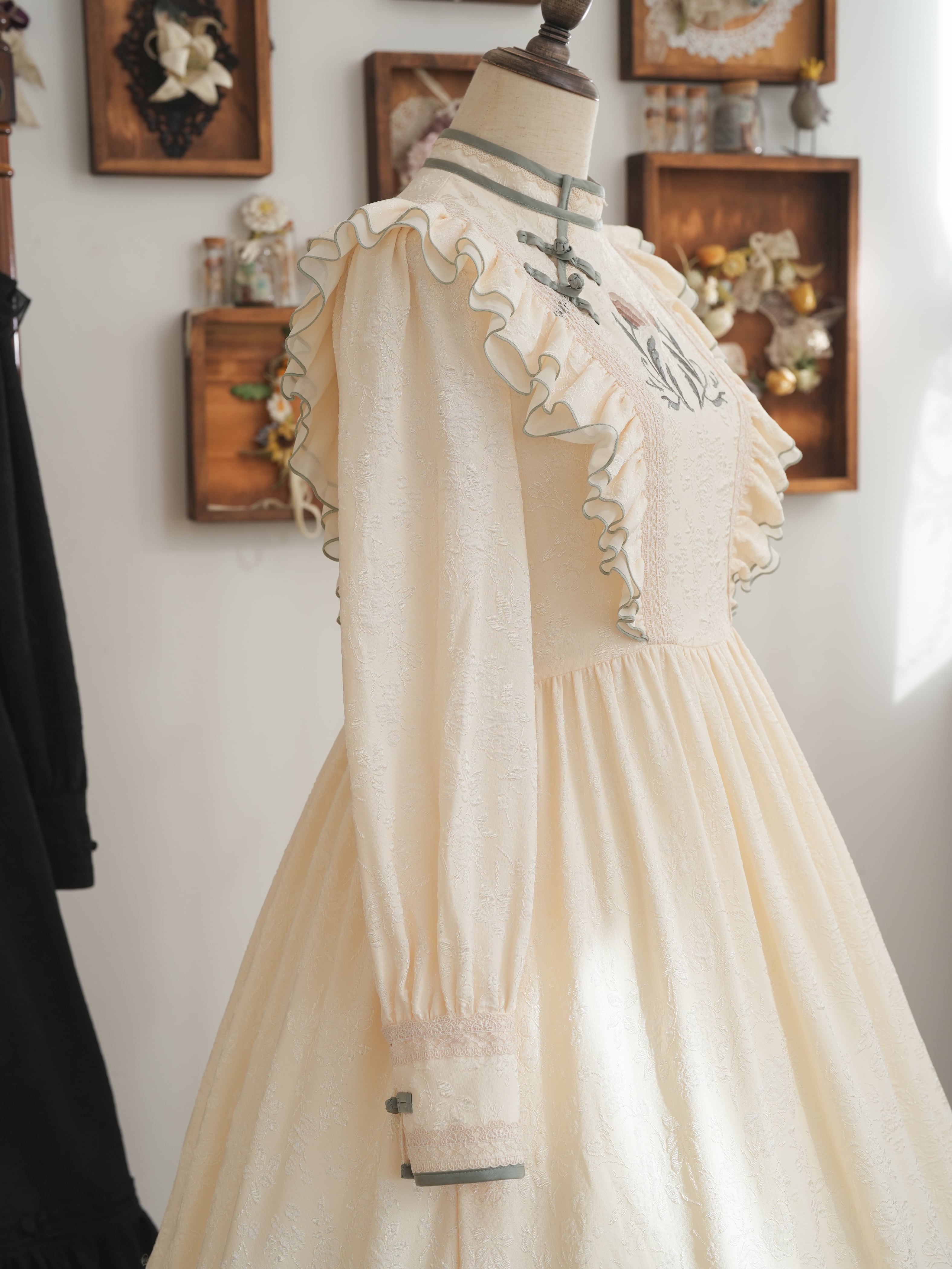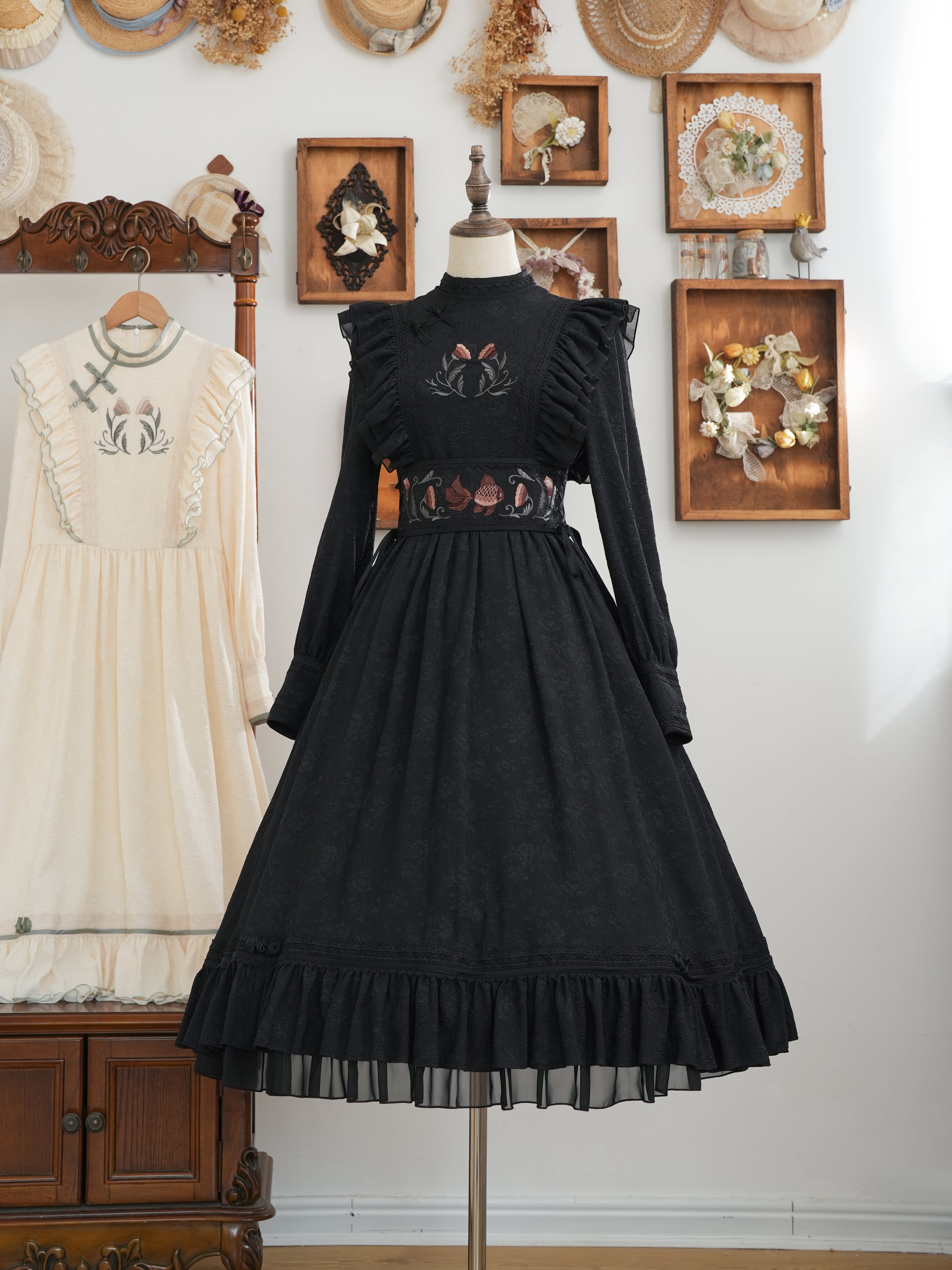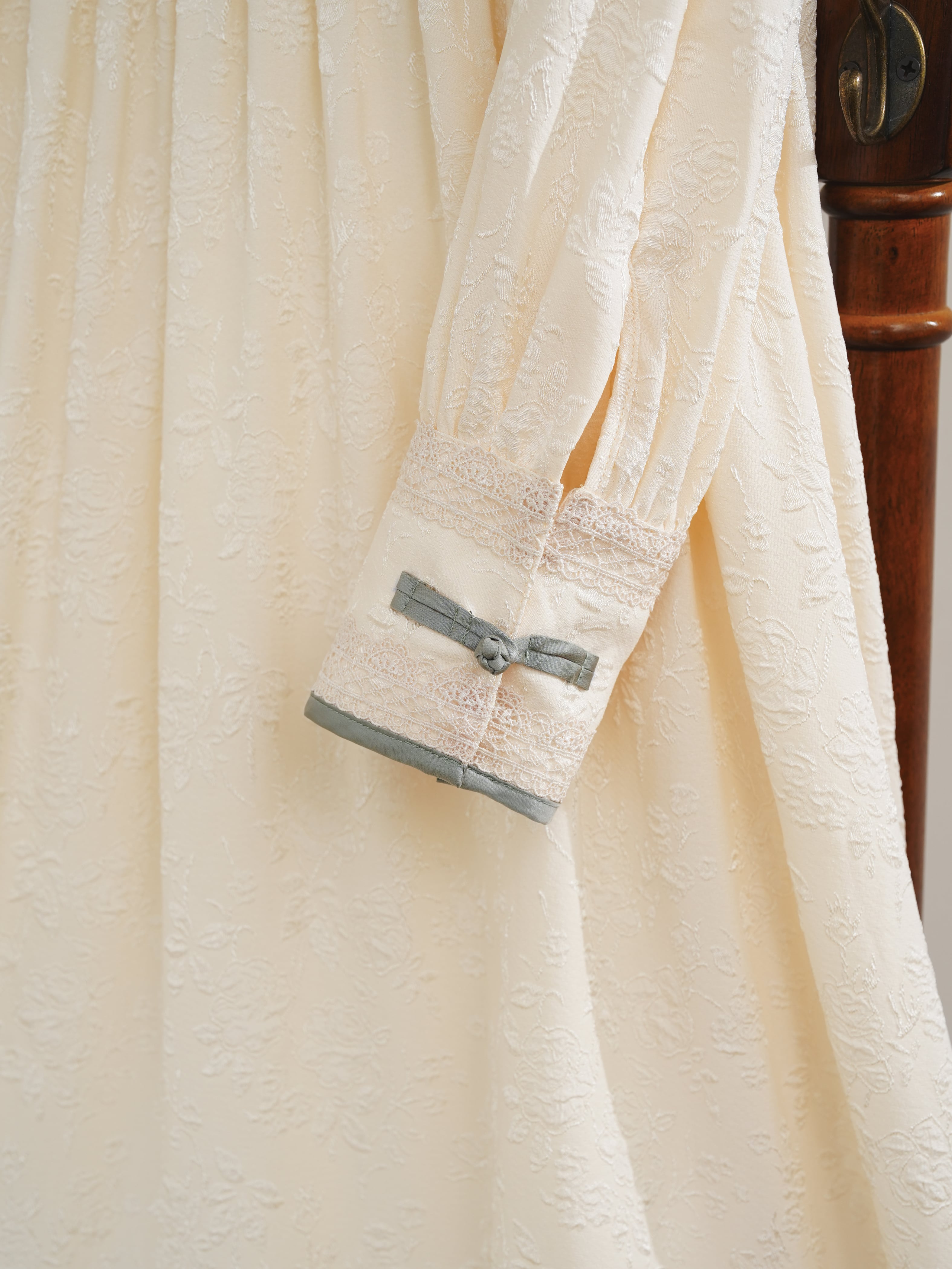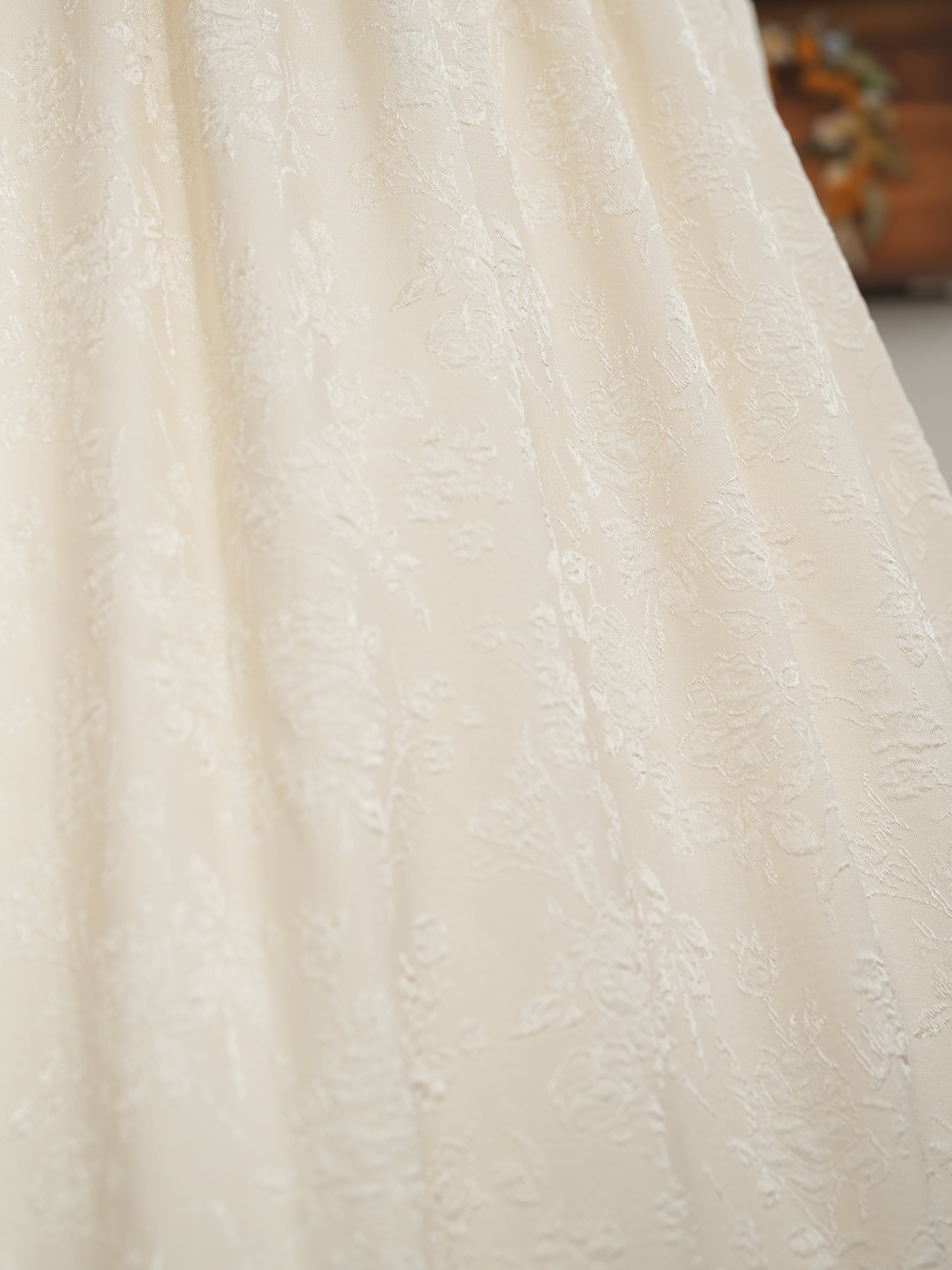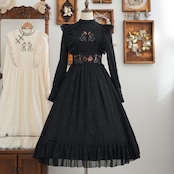 ジャガード生地に刺繍で表現された花々が艶やかなワンピース。