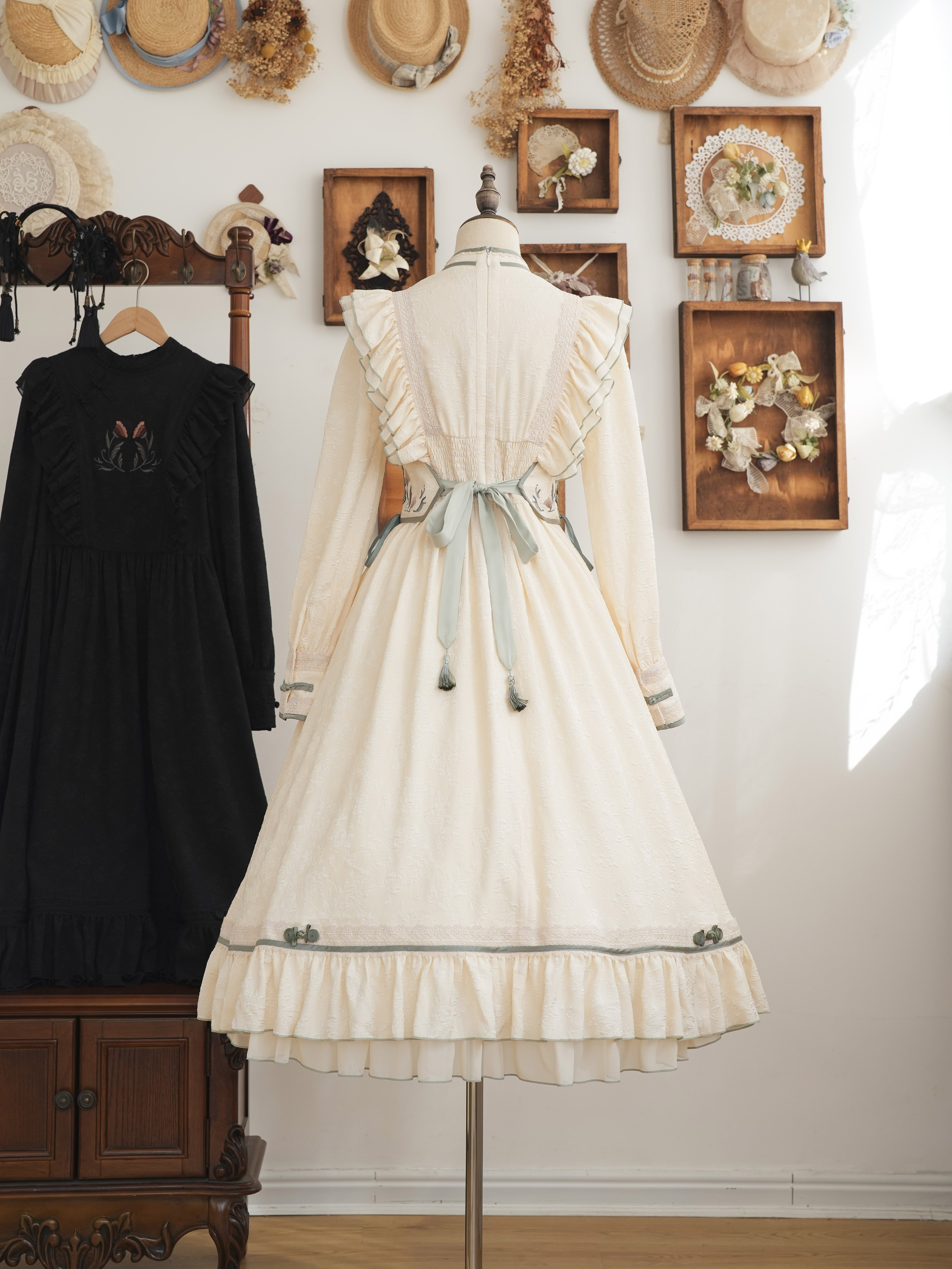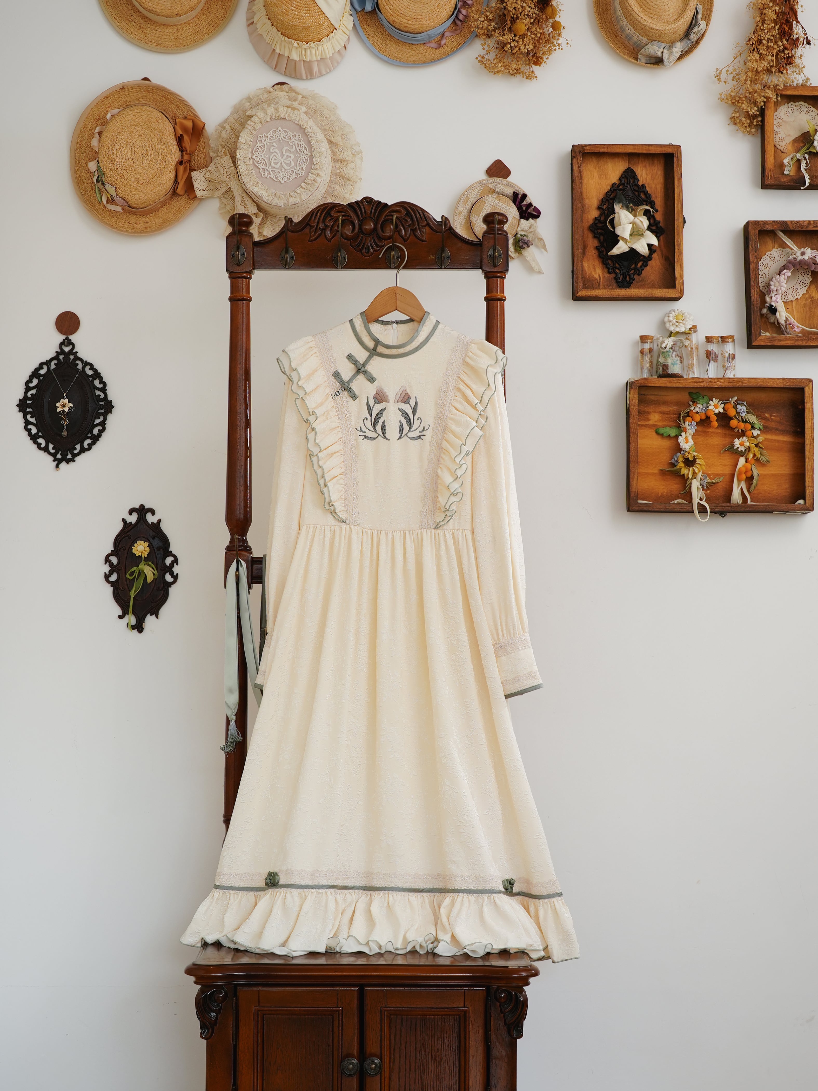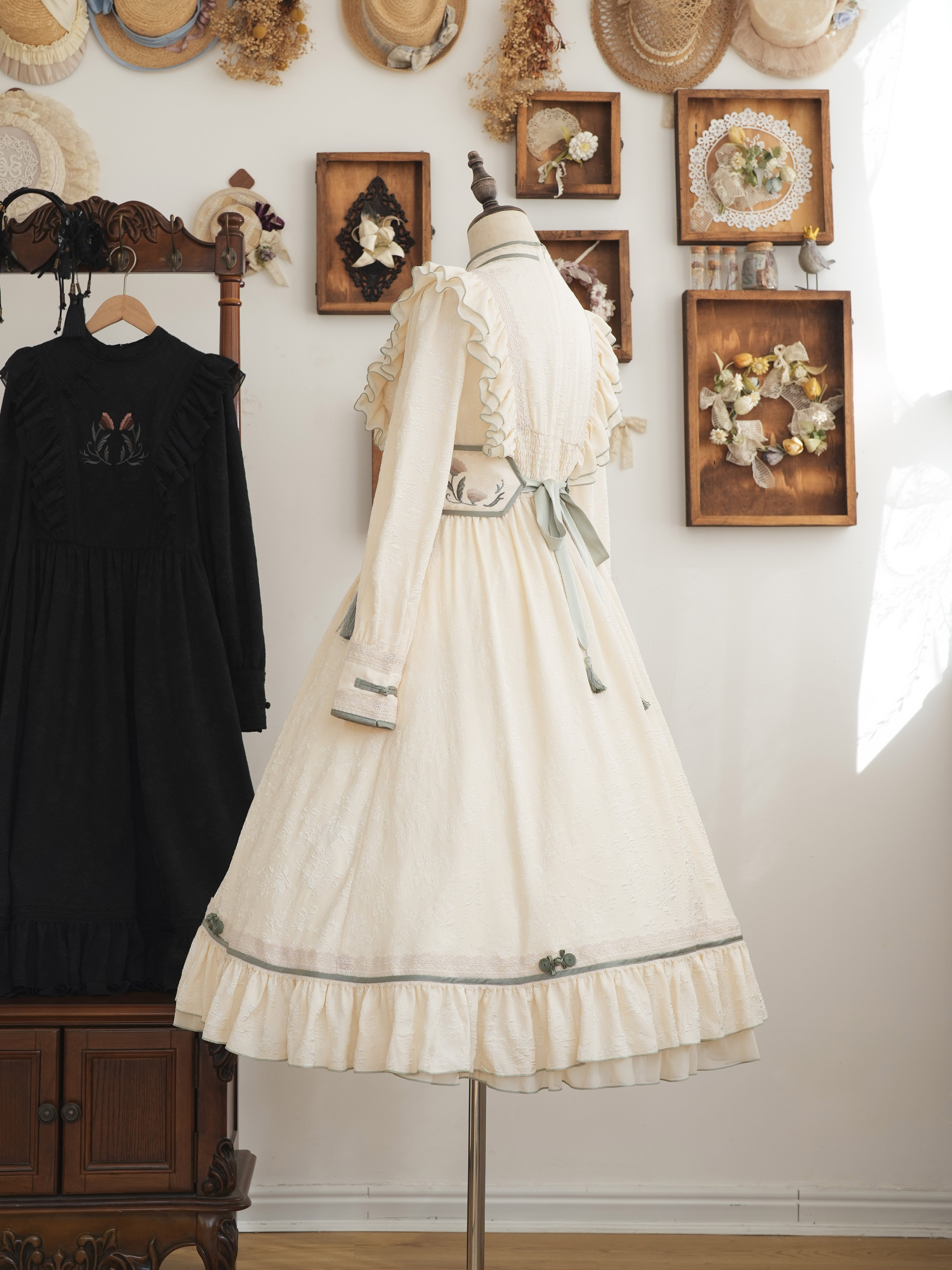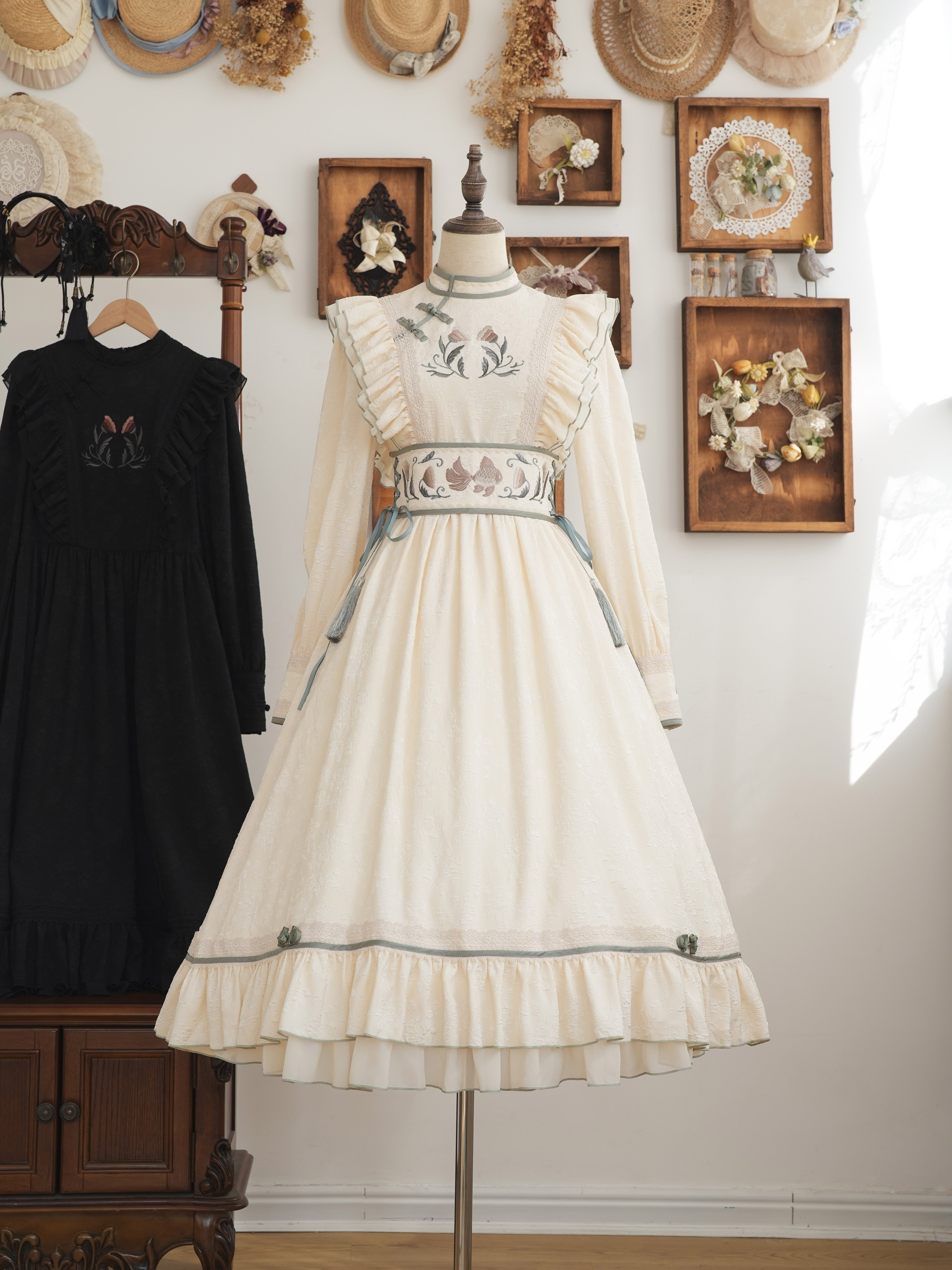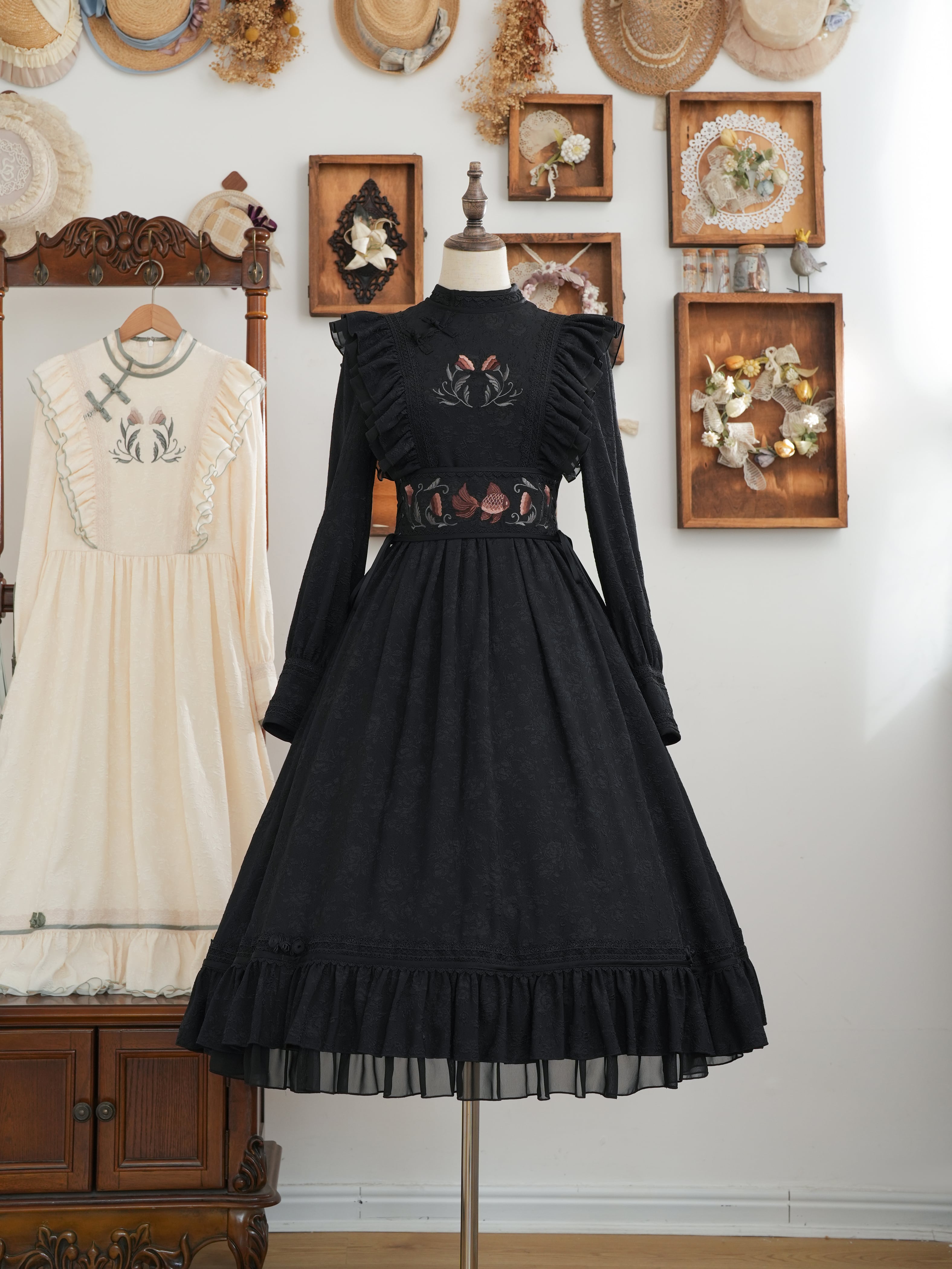 ジャガード生地に刺繍で表現された花々が艶やかなワンピース。