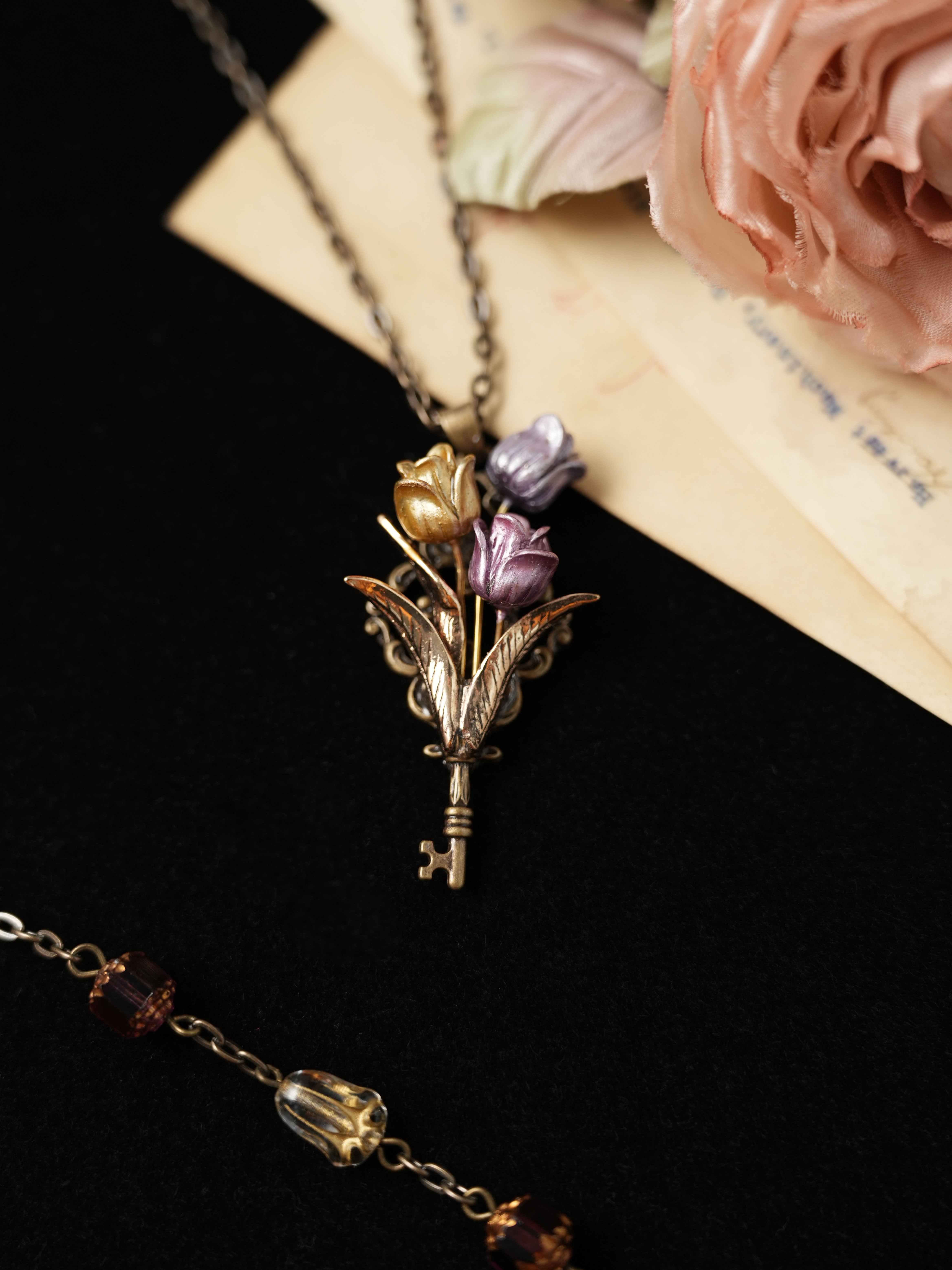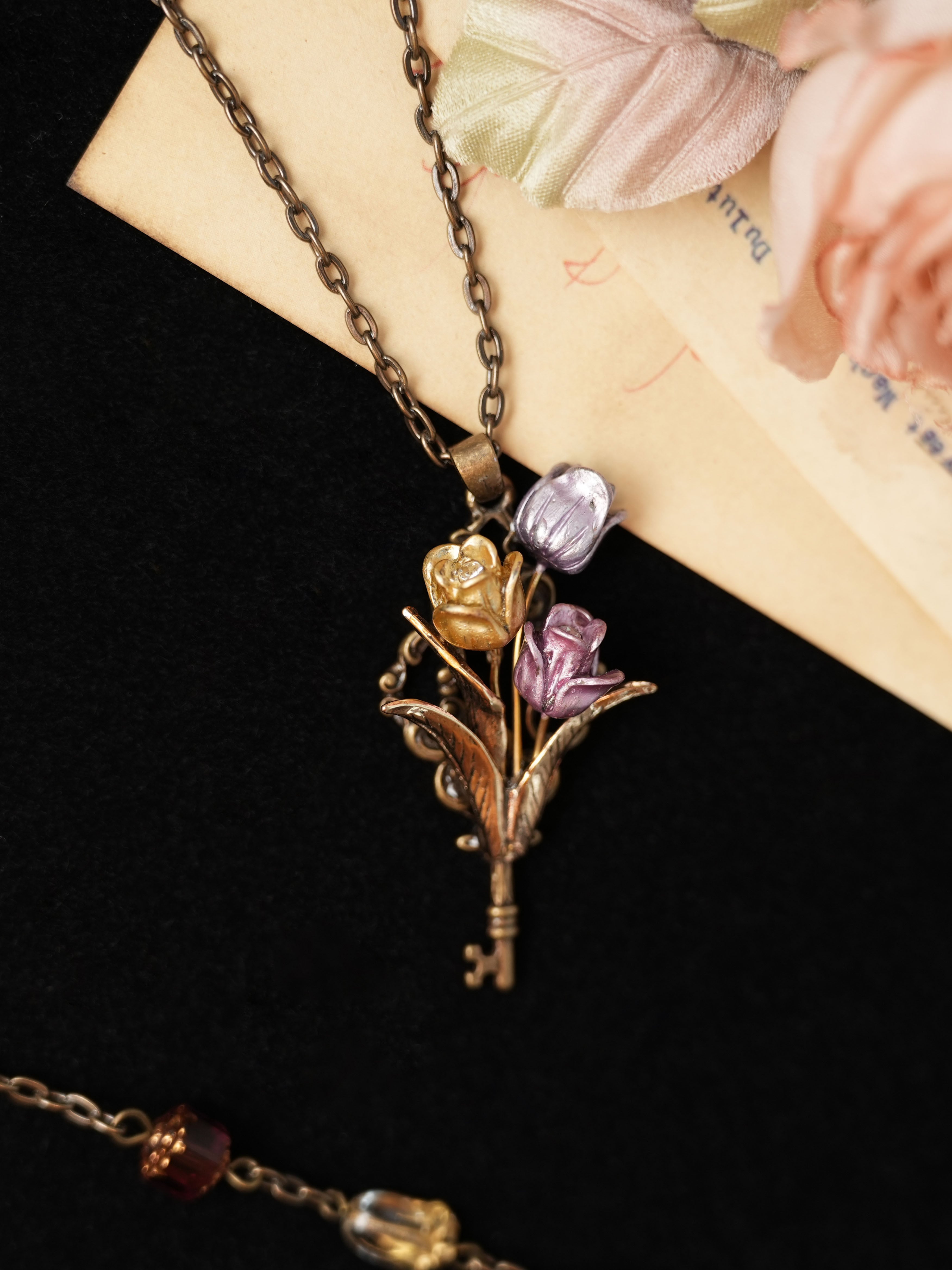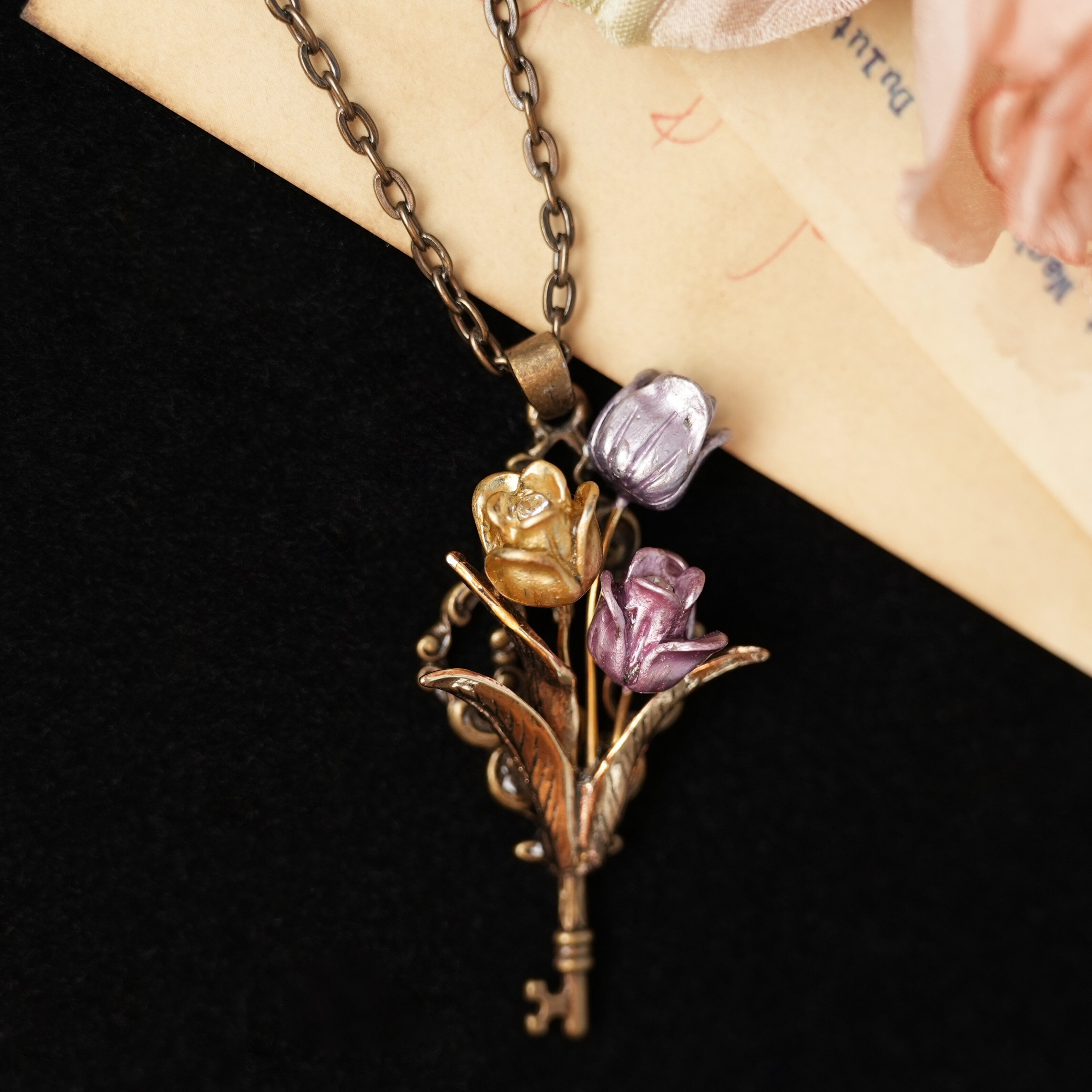 束ねたチューリップがモチーフのかわいらしいペンダント。