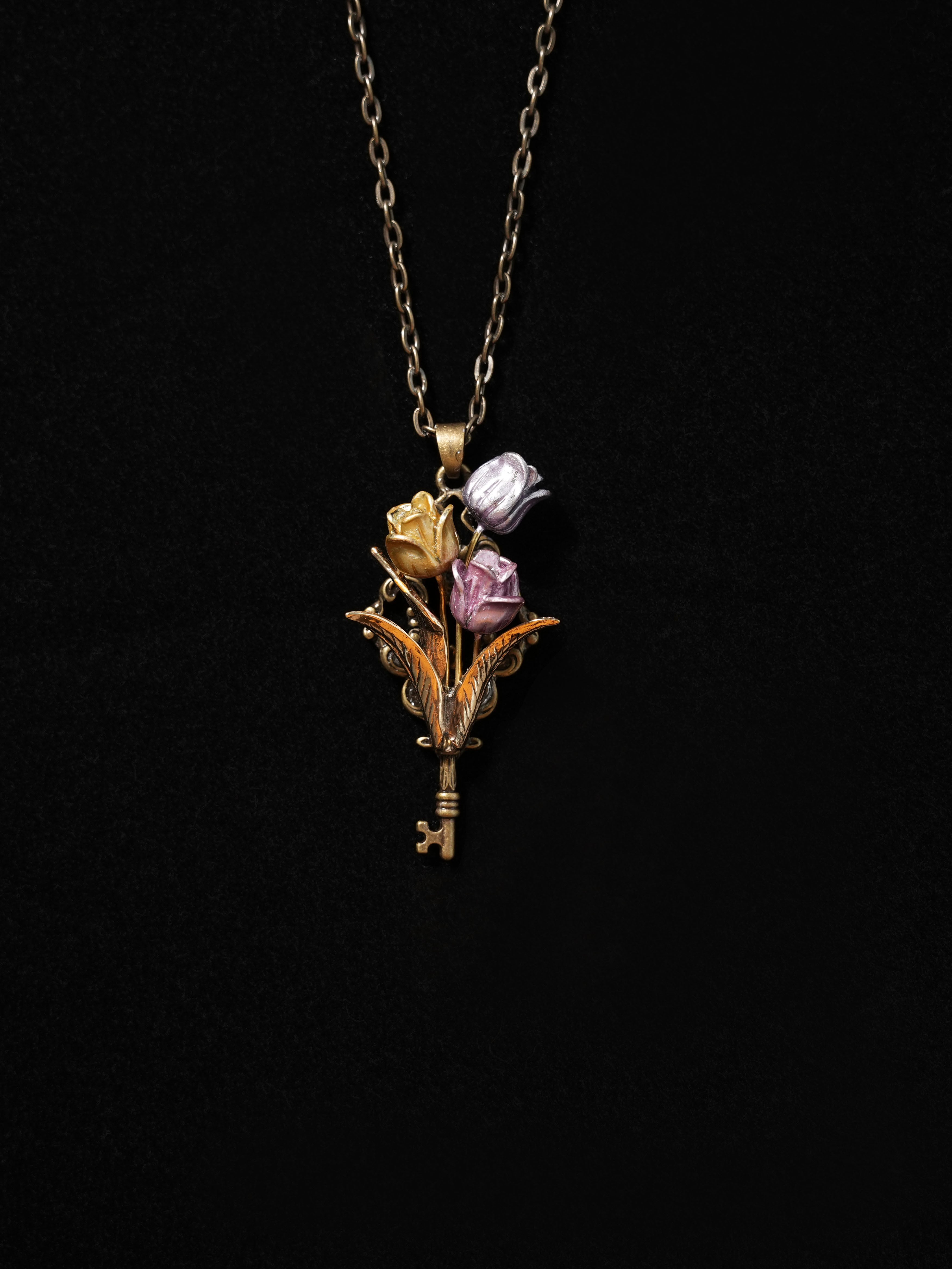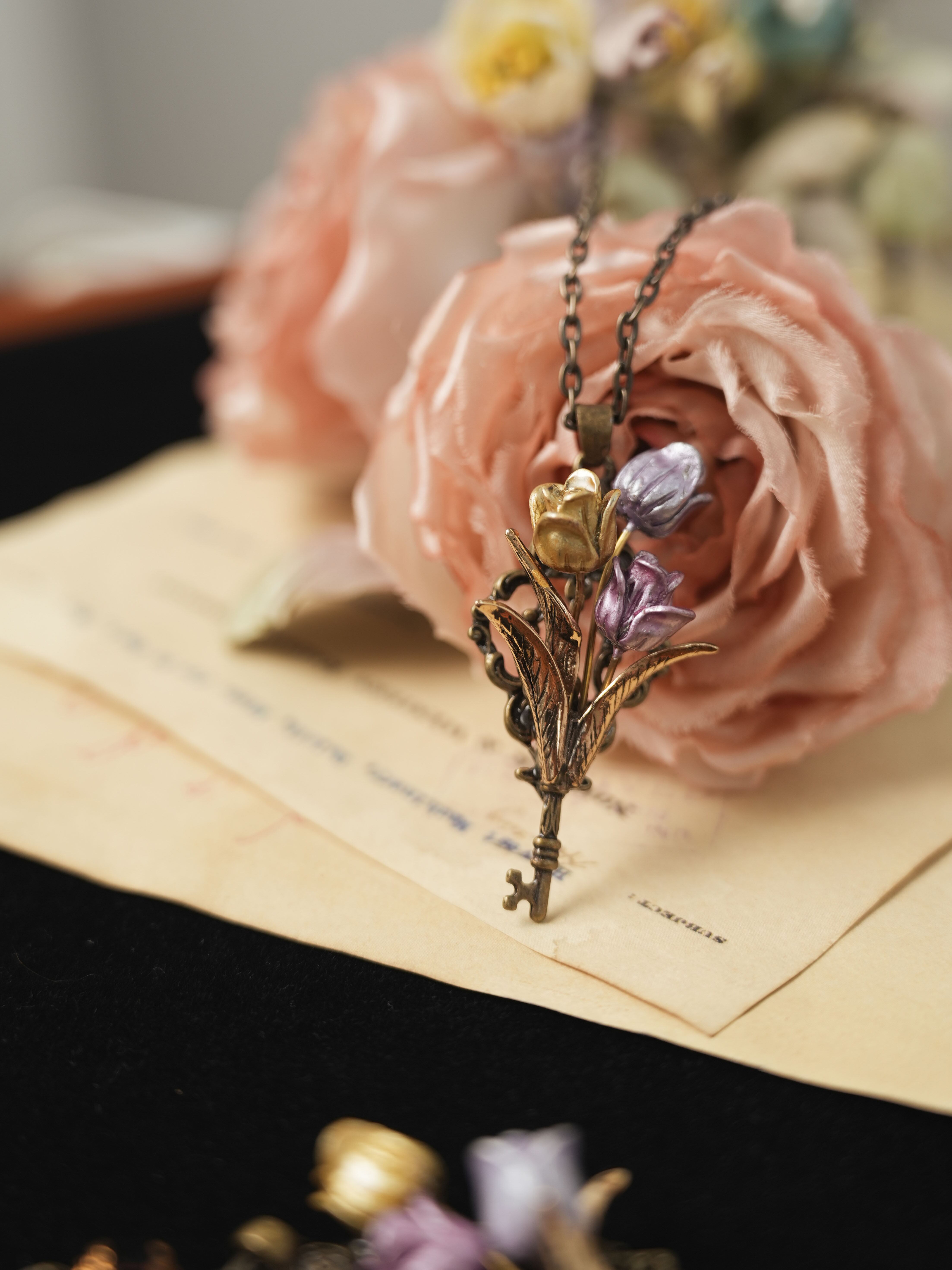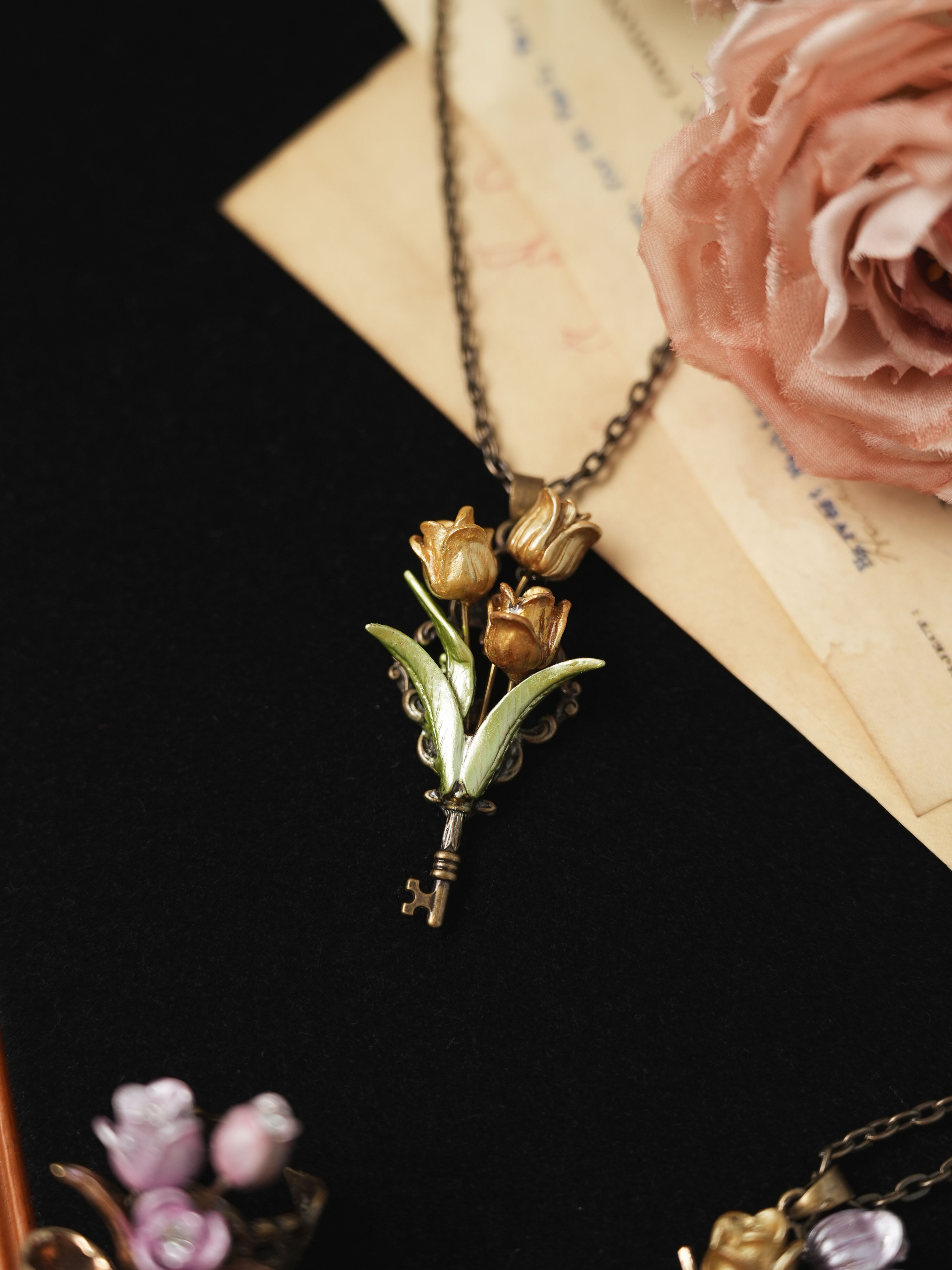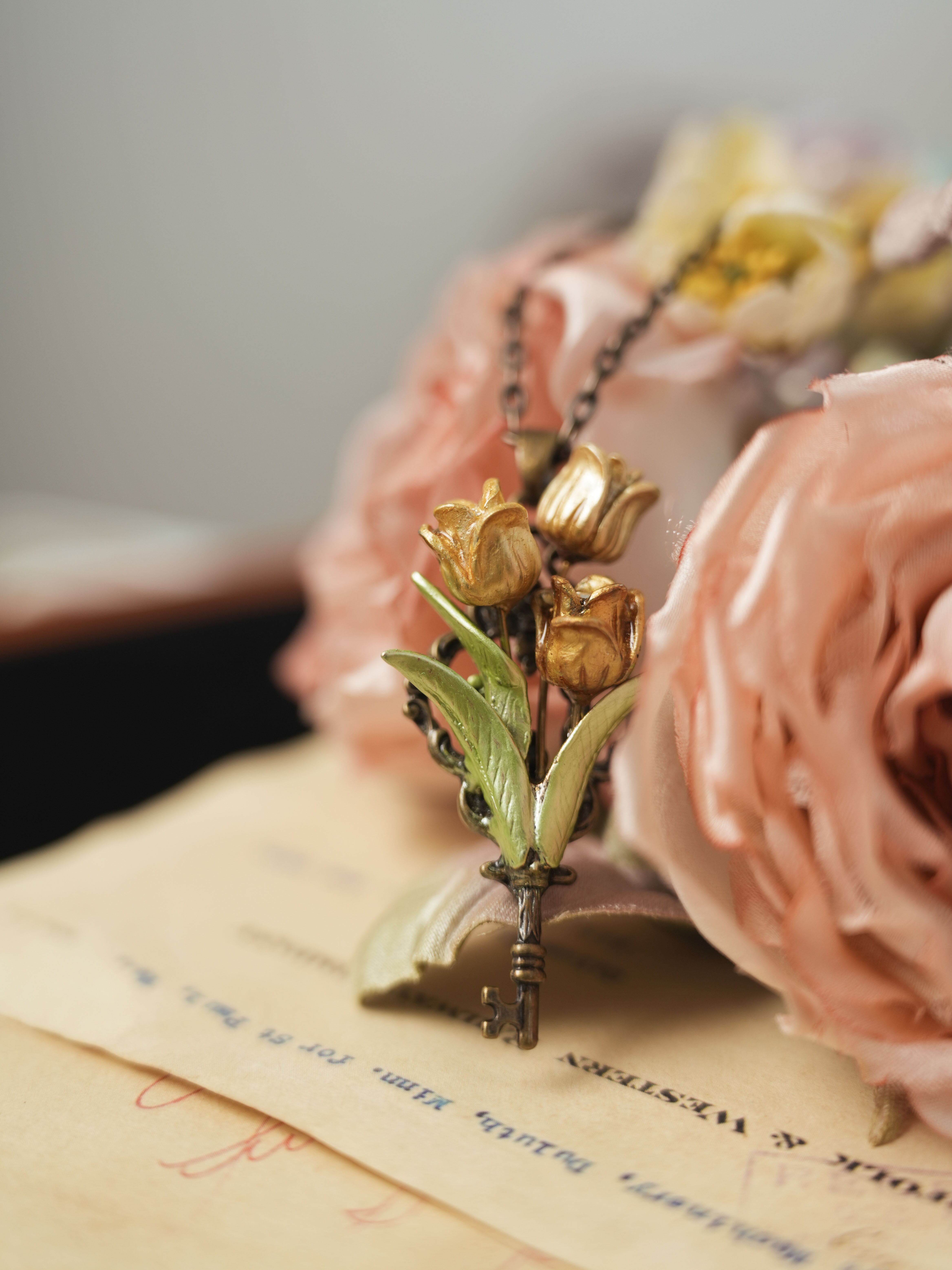 束ねたチューリップがモチーフのかわいらしいペンダント。