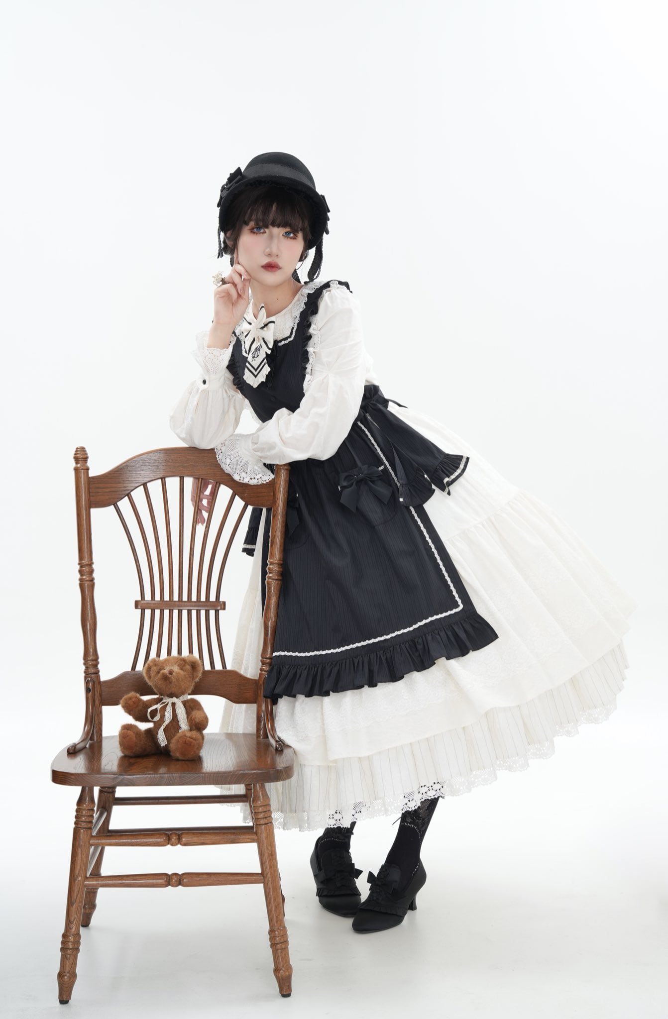 たっぷりのピンタックと肩から腰にかけての大きなフリルが目を引きます。