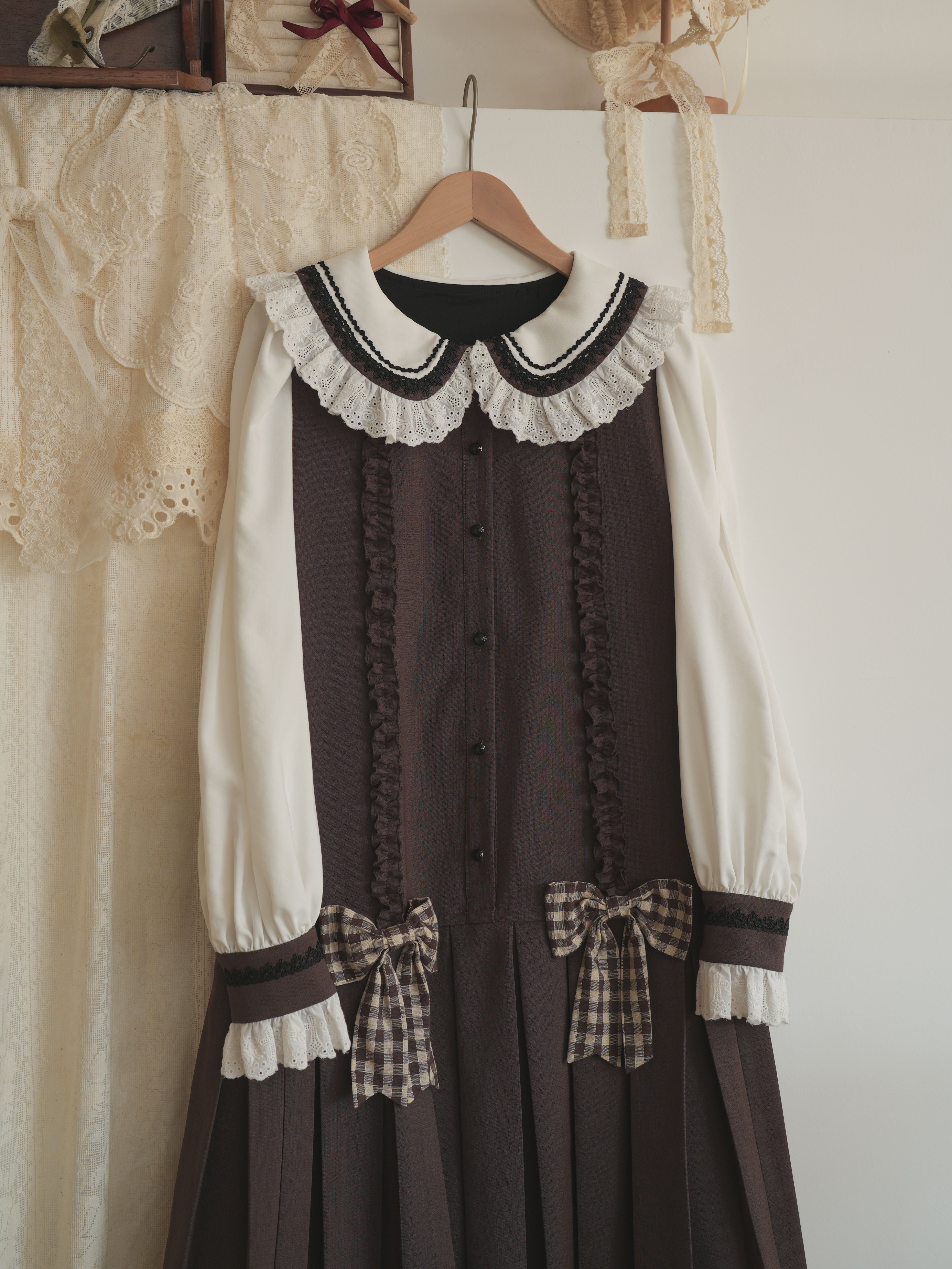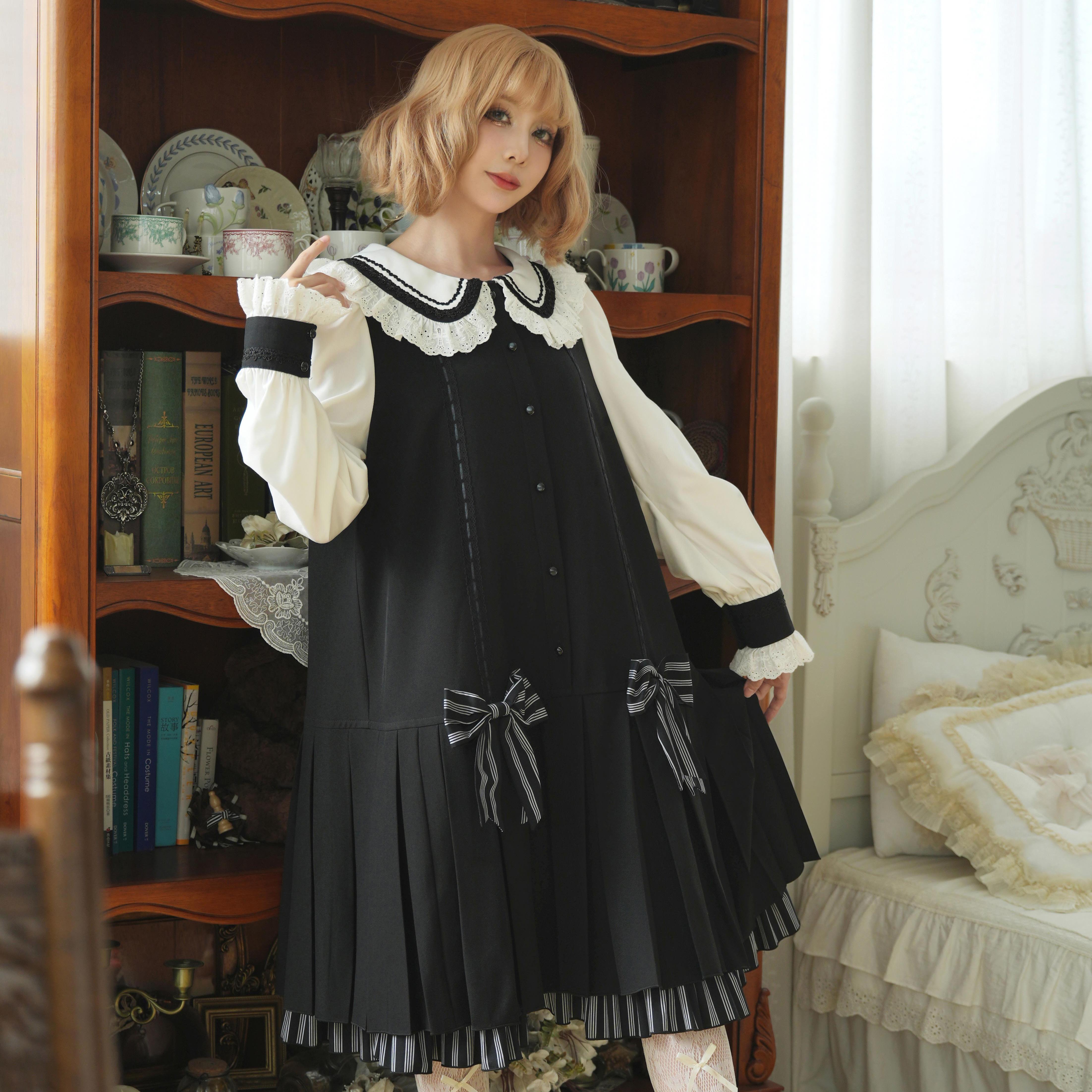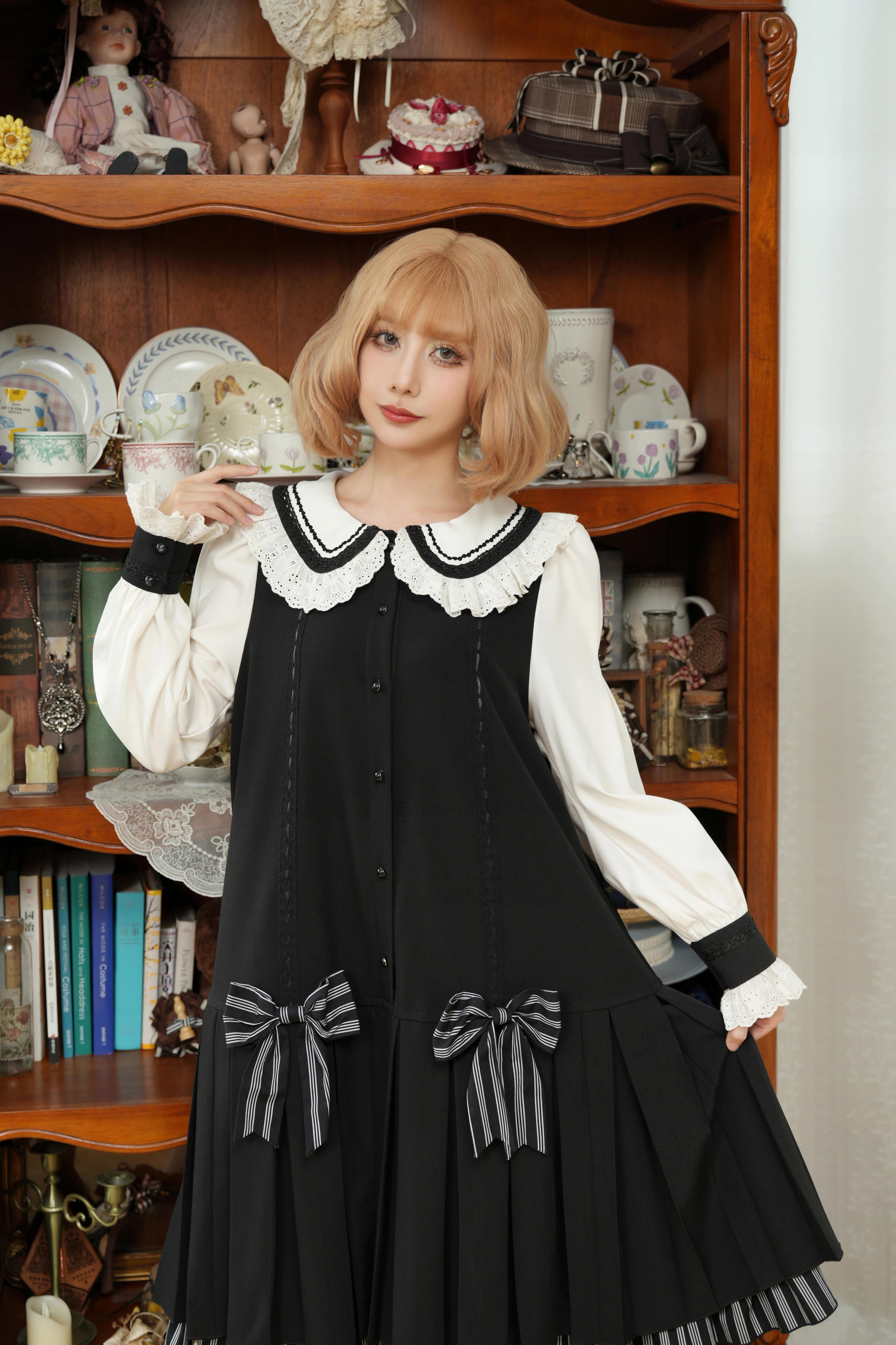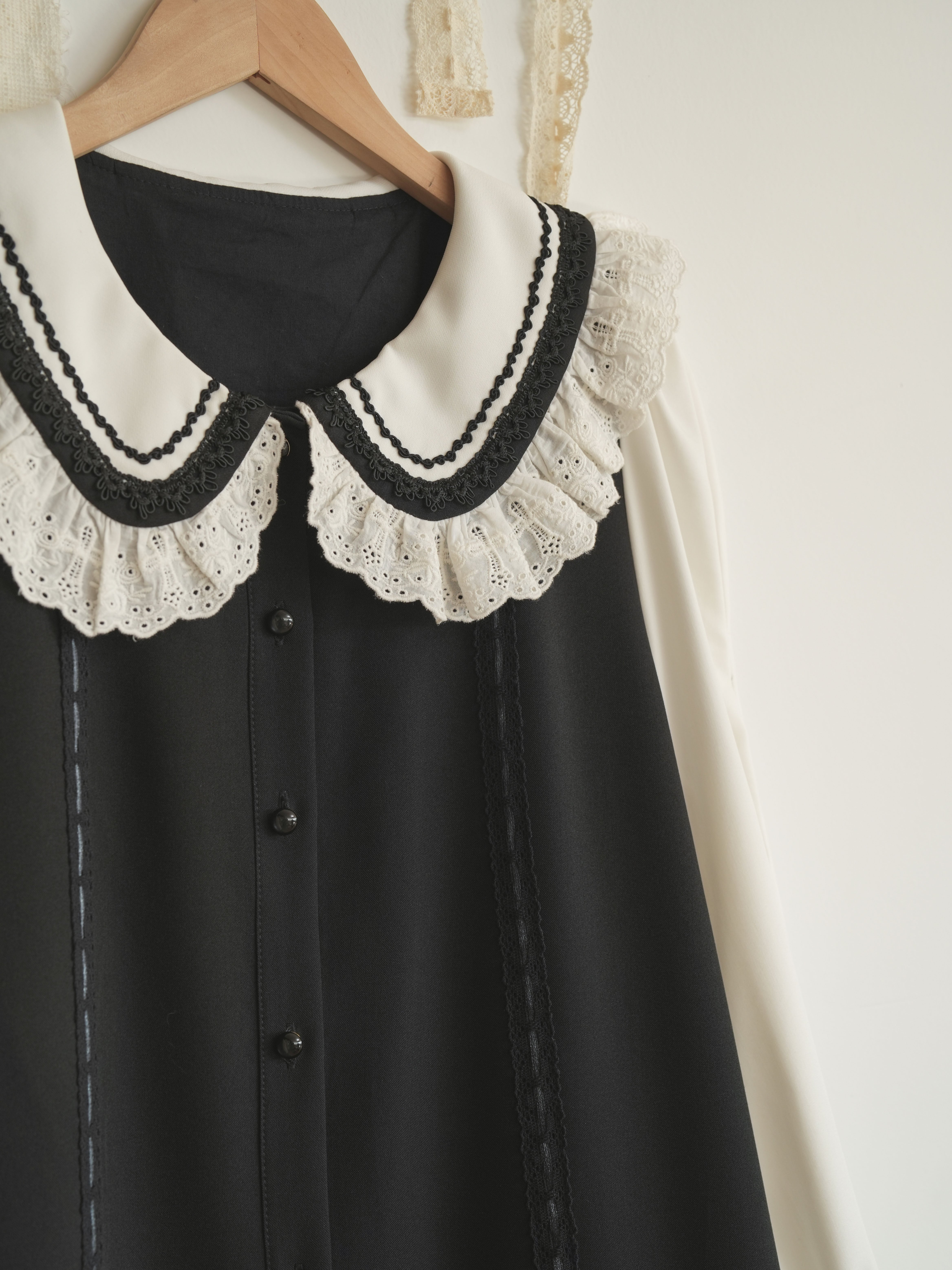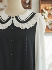 襟元を華やかに飾る、大きめのフリルやケミカルレースをあしらった丸襟。