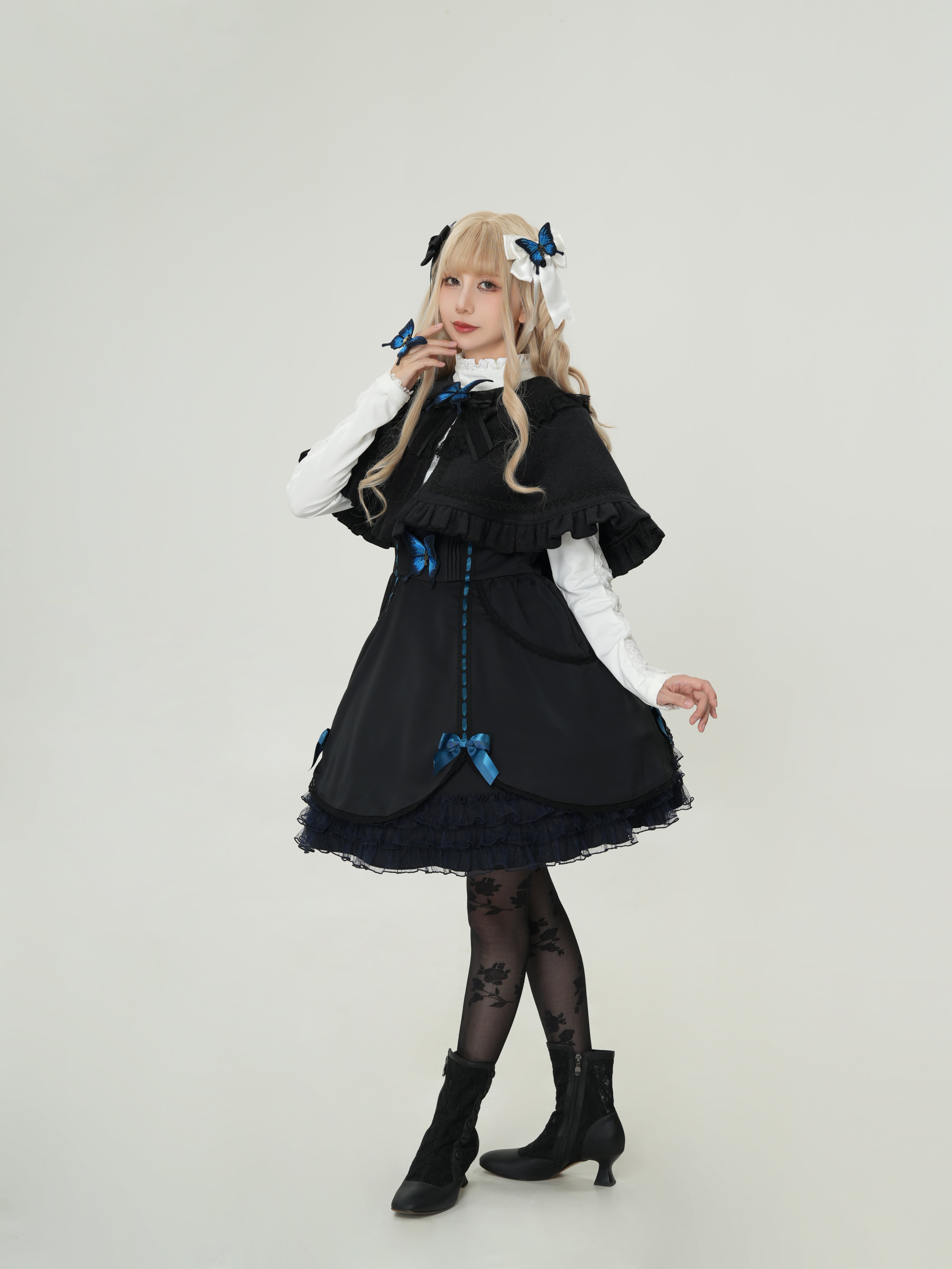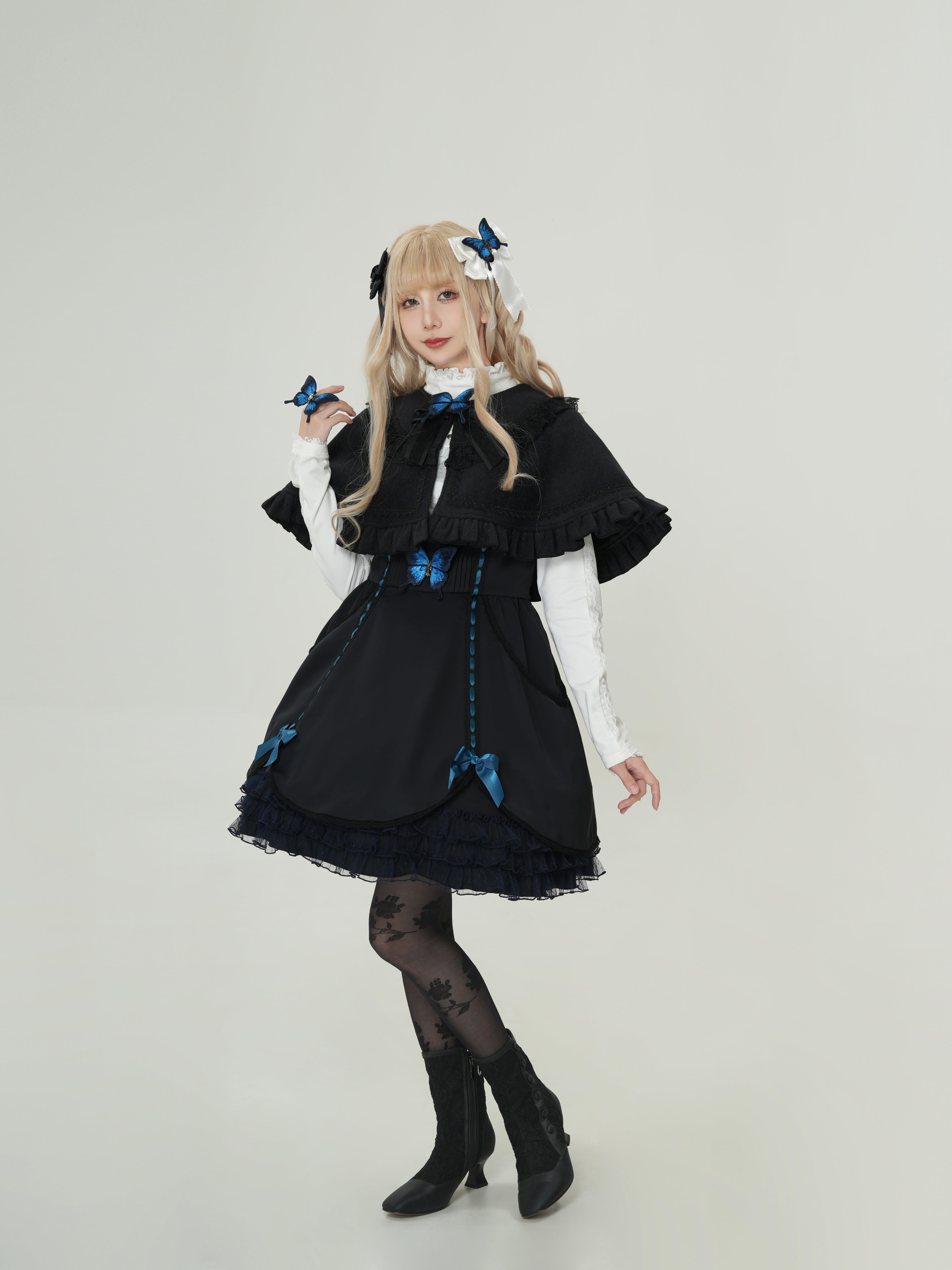 アイシング・フリル ケープ付きプリンセスラインコート(ブラック ケープのみ着用)