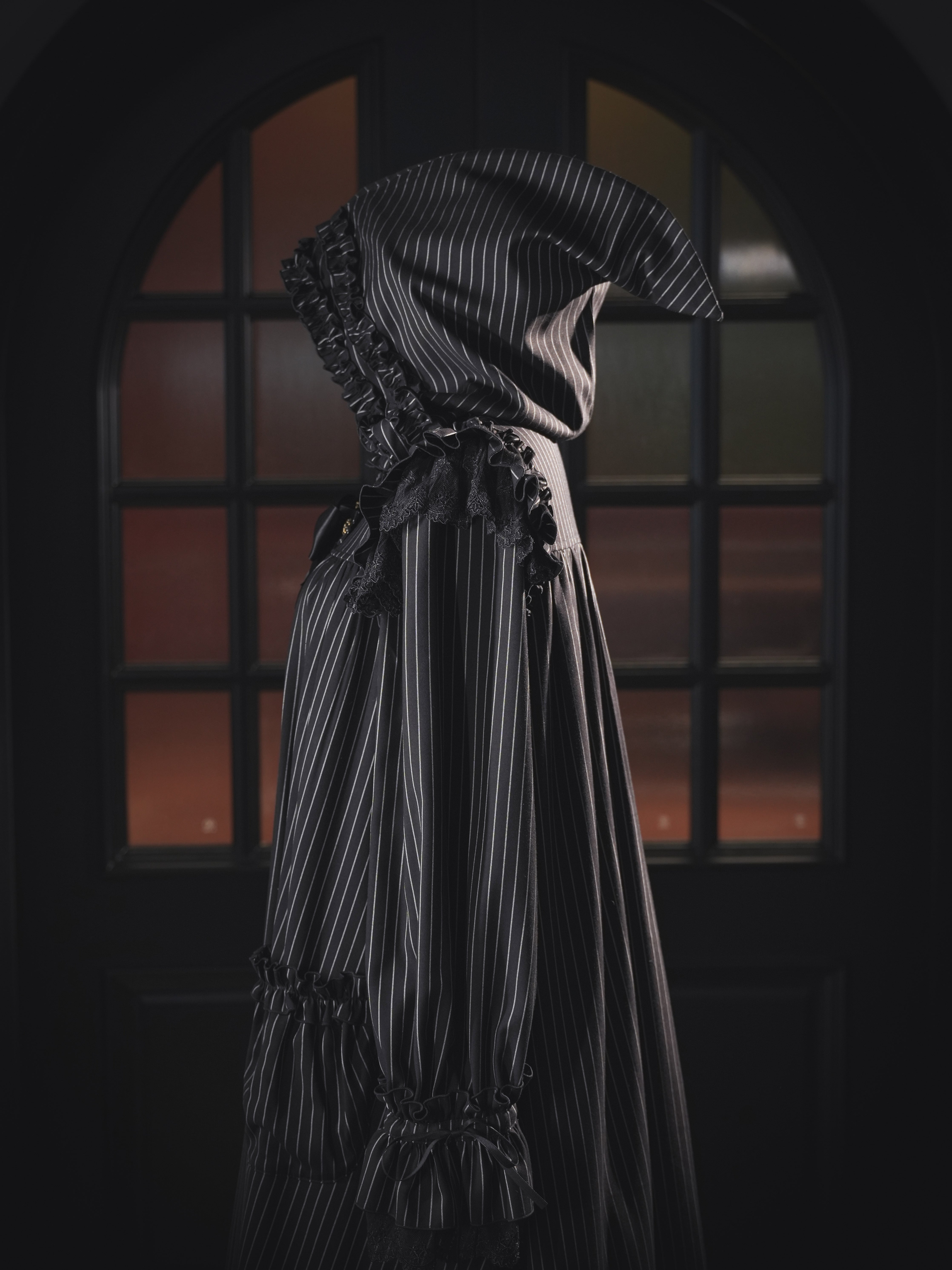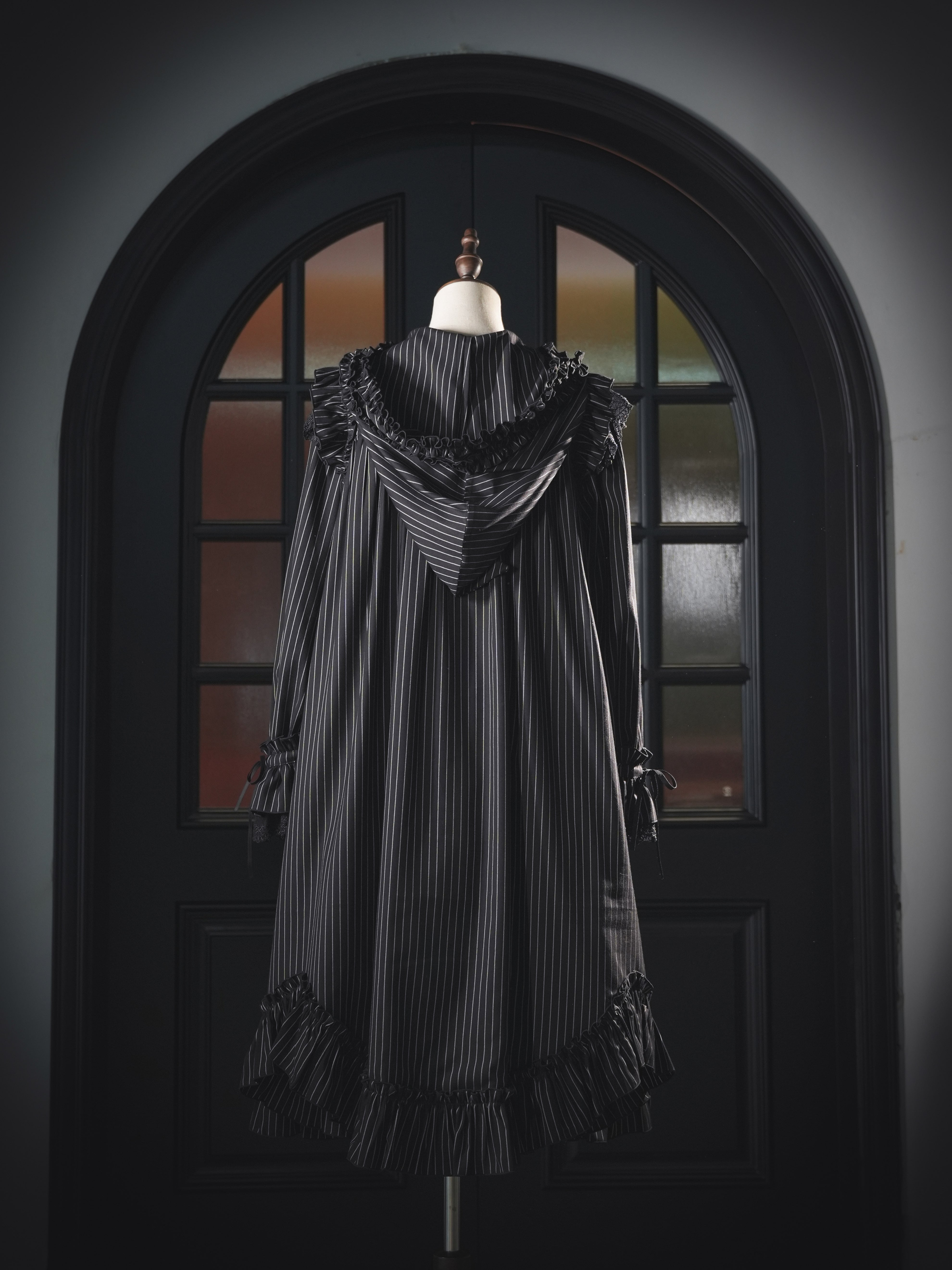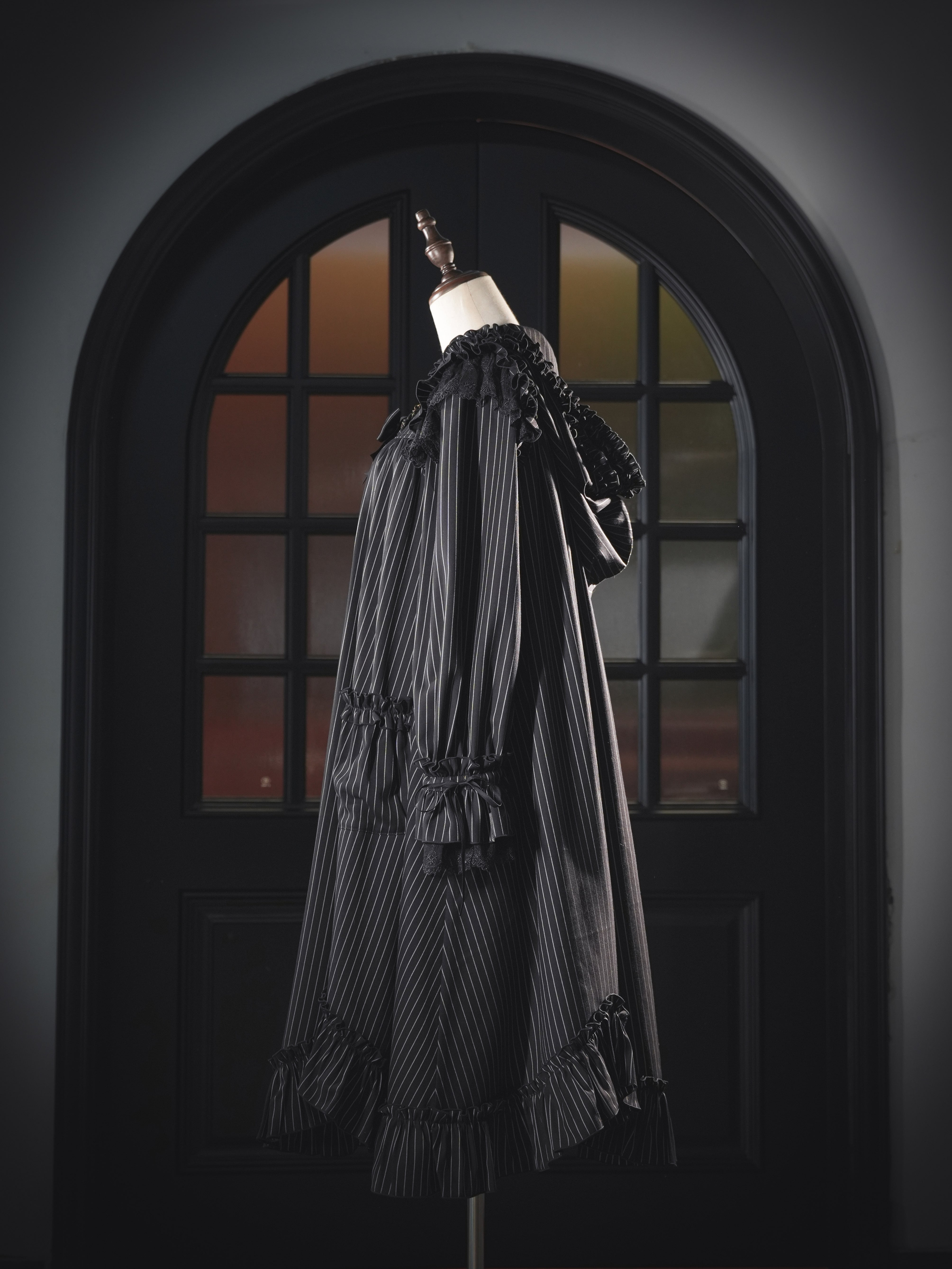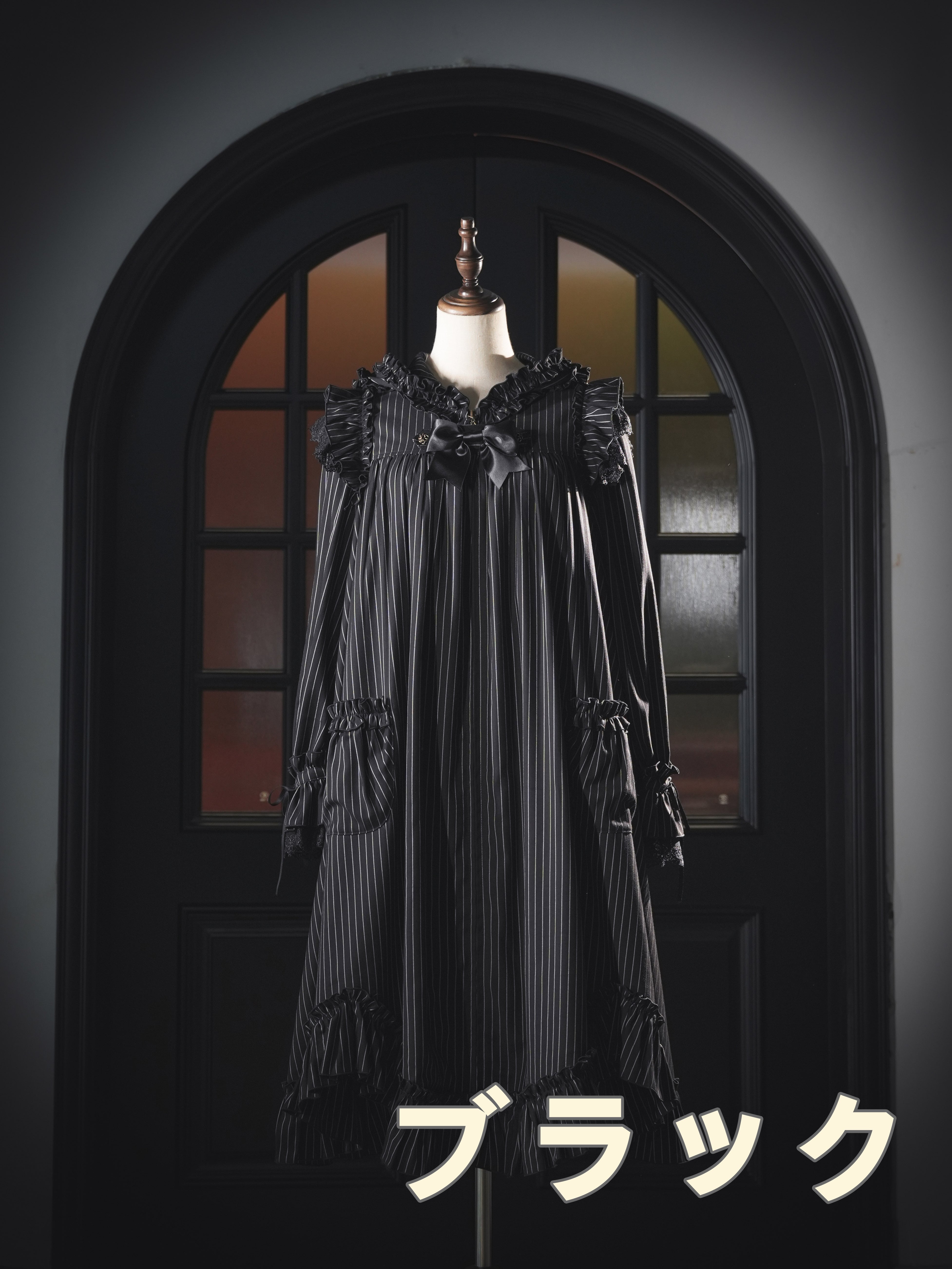 肩にあしらわれたフリルは、まるで夜空を舞うコウモリの翼のよう…。