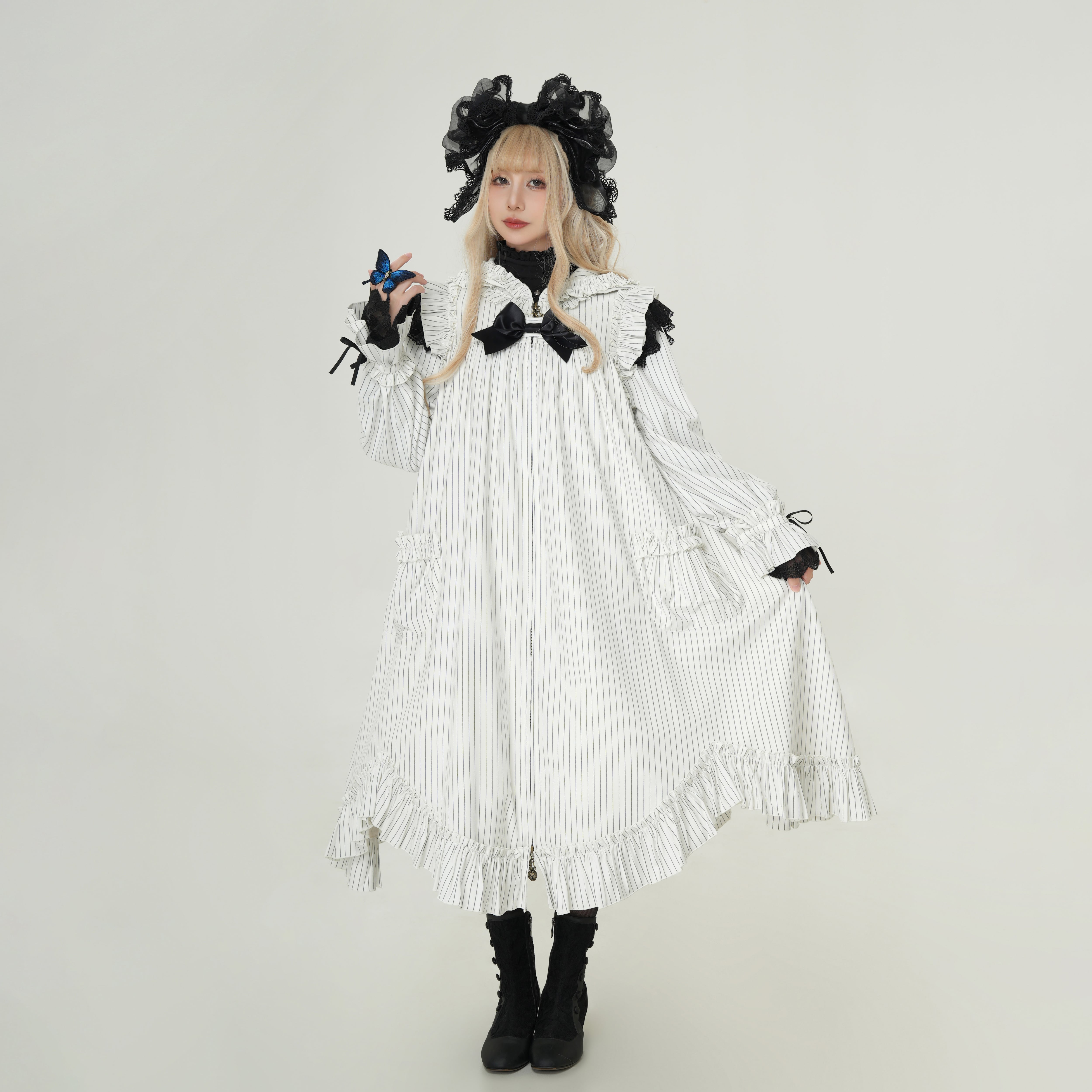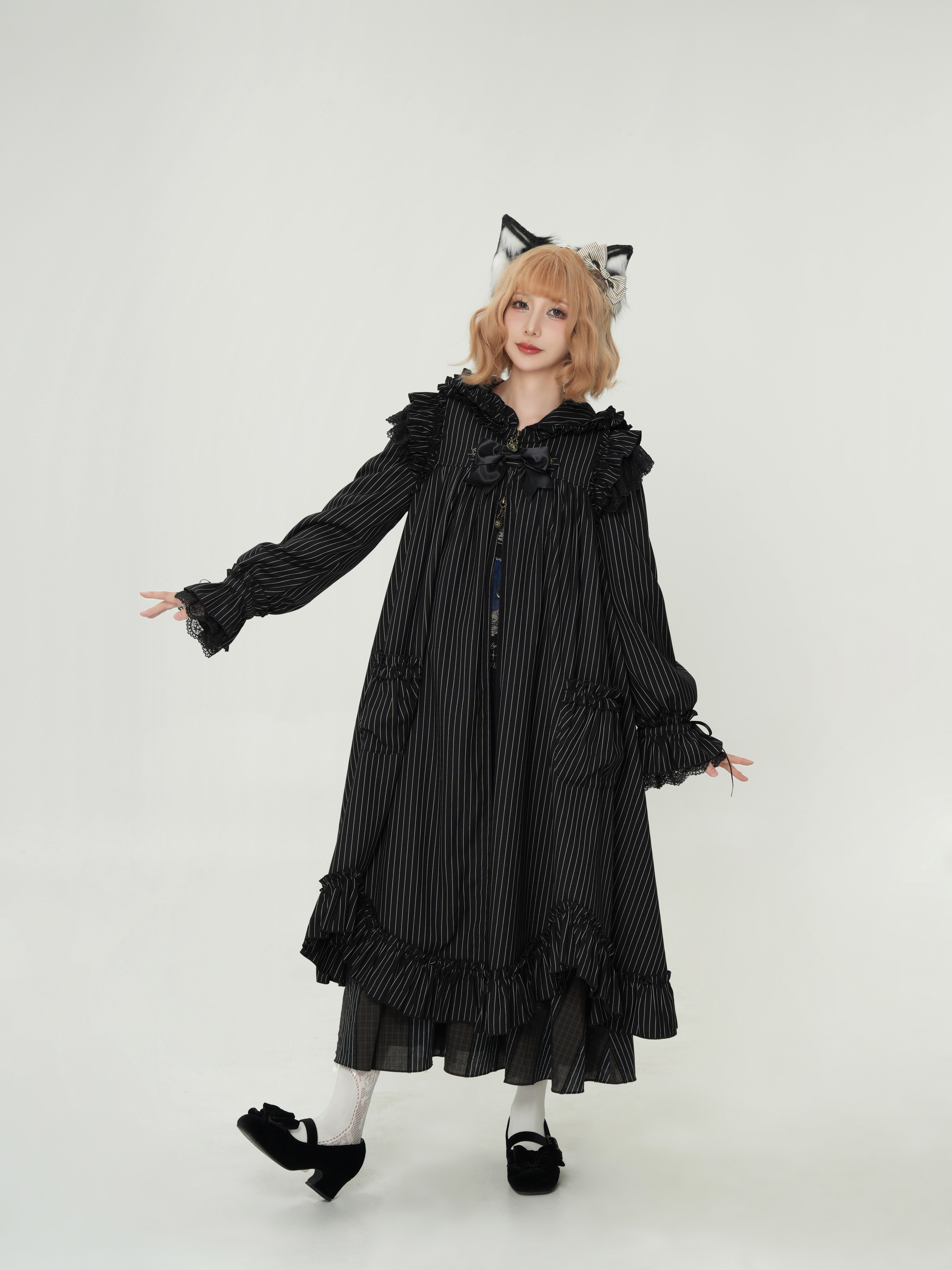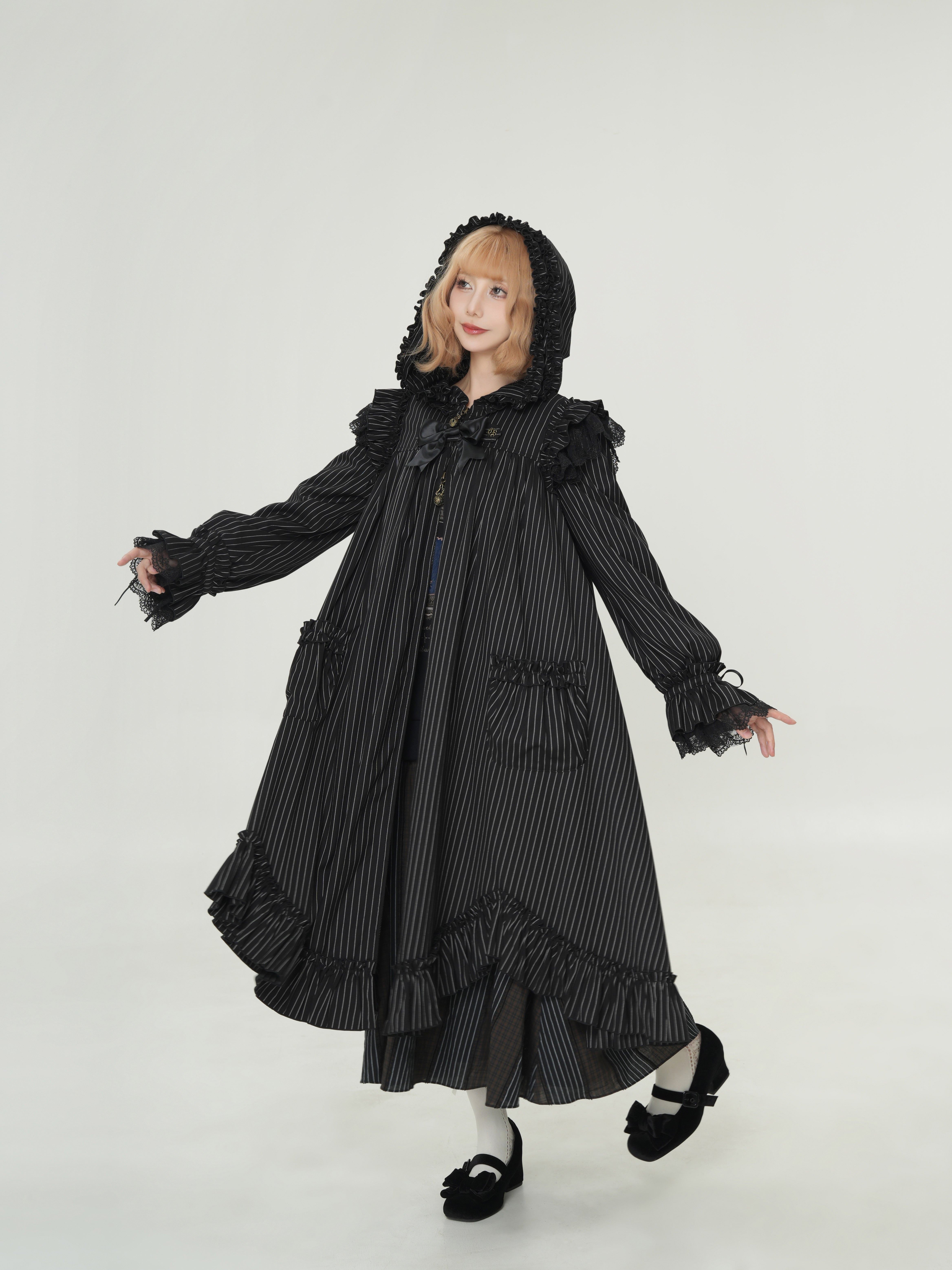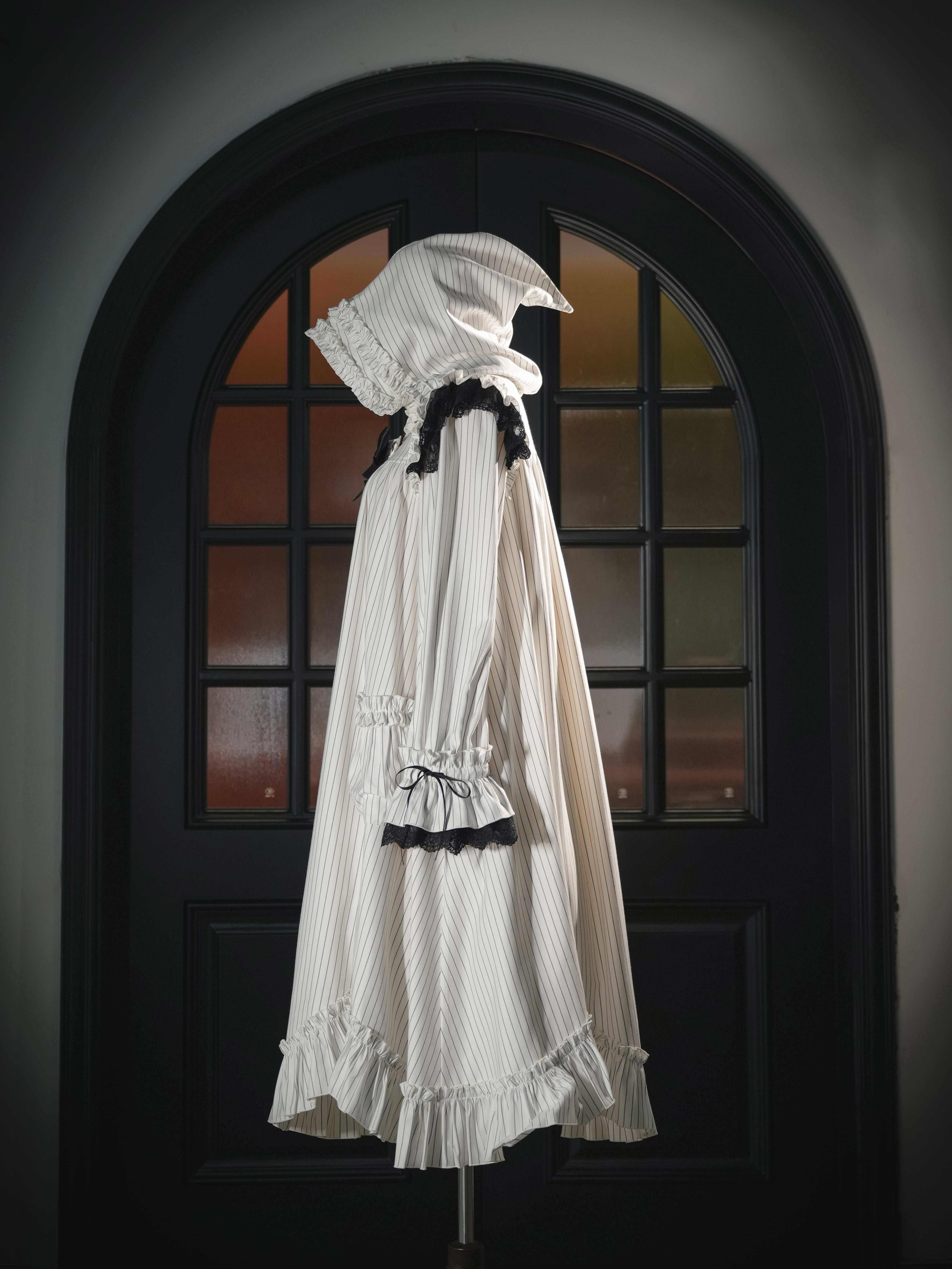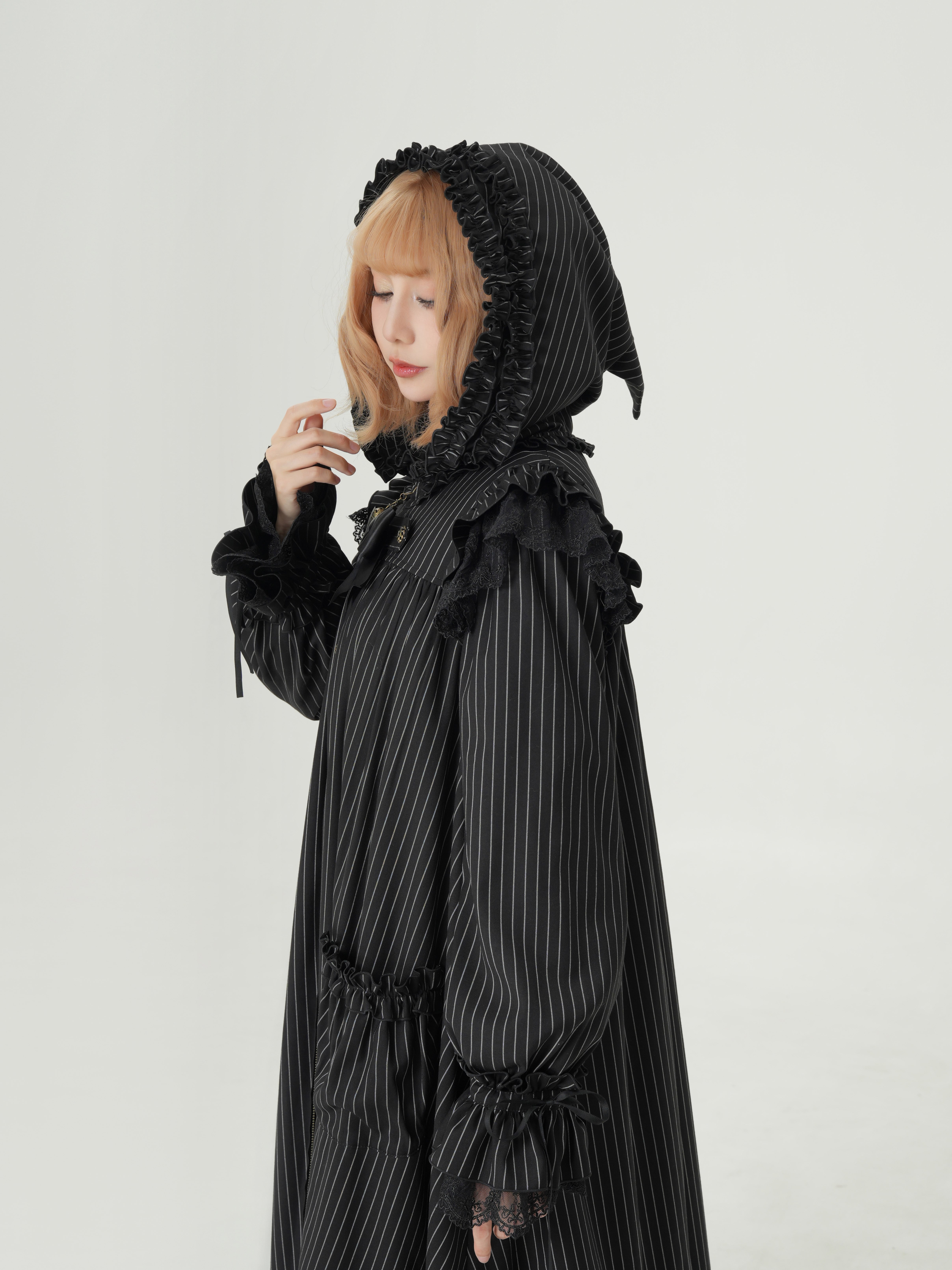 肩にあしらわれたフリルは、まるで夜空を舞うコウモリの翼のよう…。
