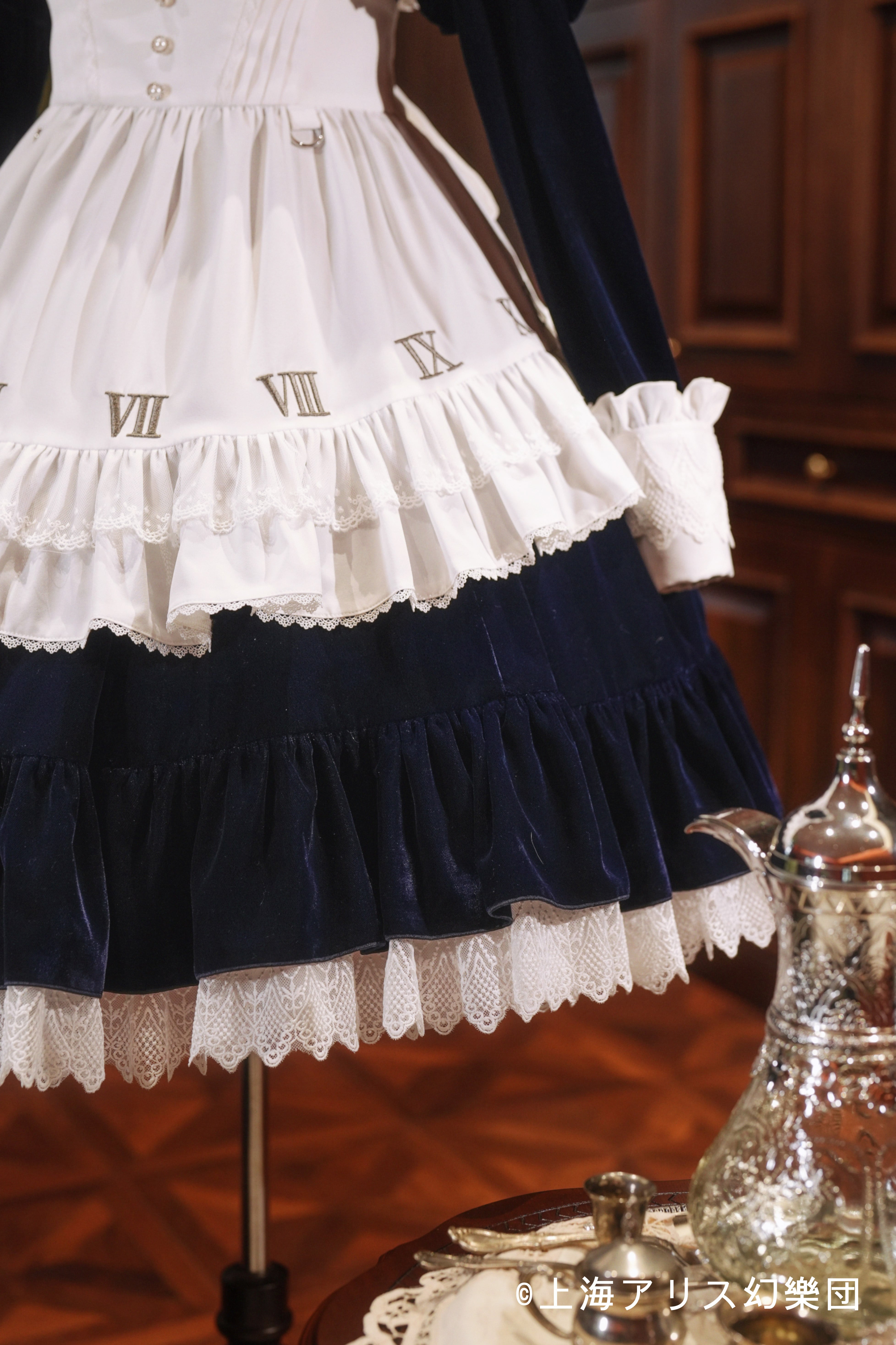 裾部分に時計の文字盤が描かれている花映塚での衣装デザインを採用しておりますが、