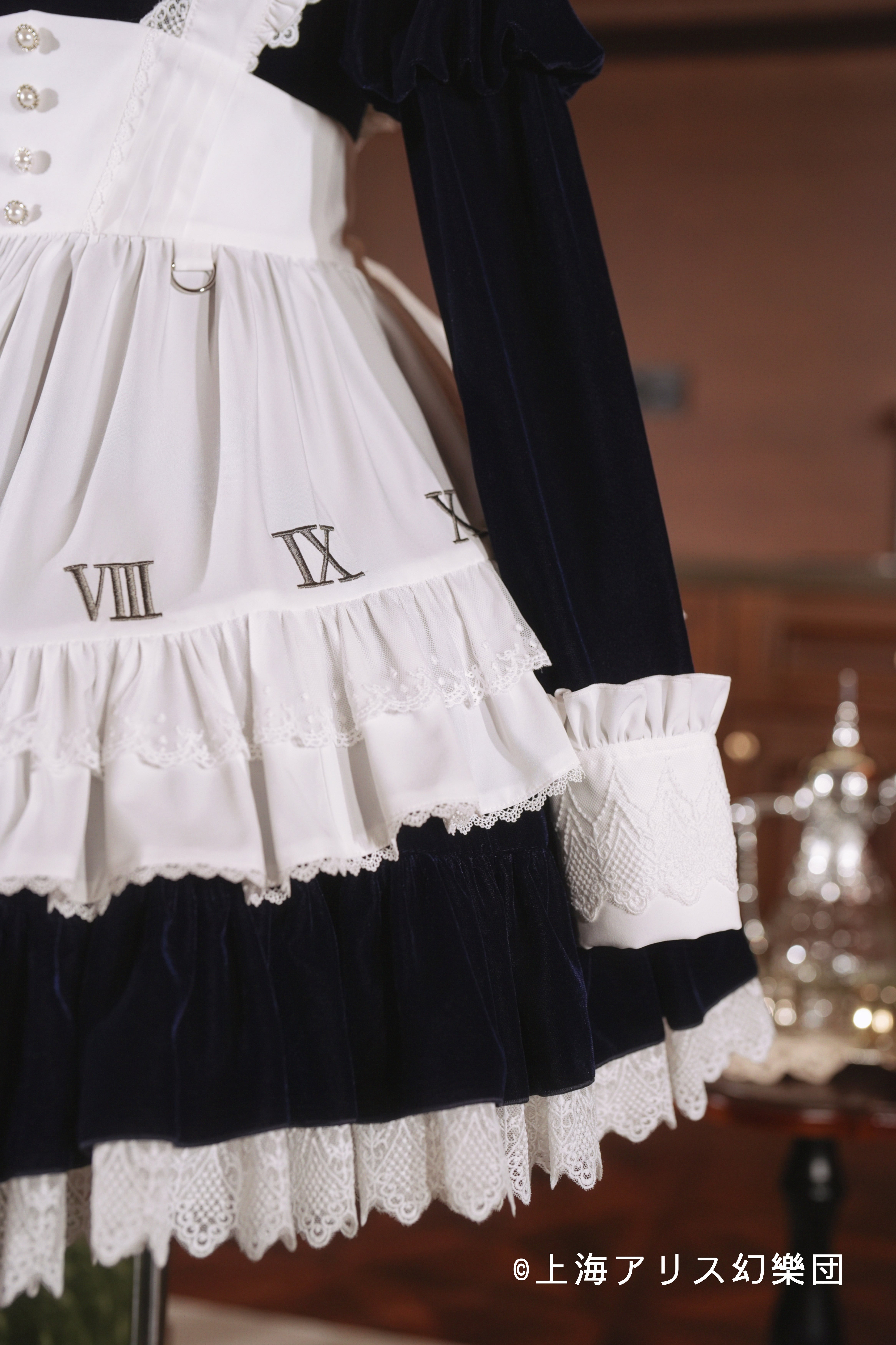 作中では肩部分のフリルが一つ一つ大きく描かれていますが、クラシカルワンピースの魅力を引き出せるよう細やかなフリルにアレンジし上品な印象へと仕上げております。