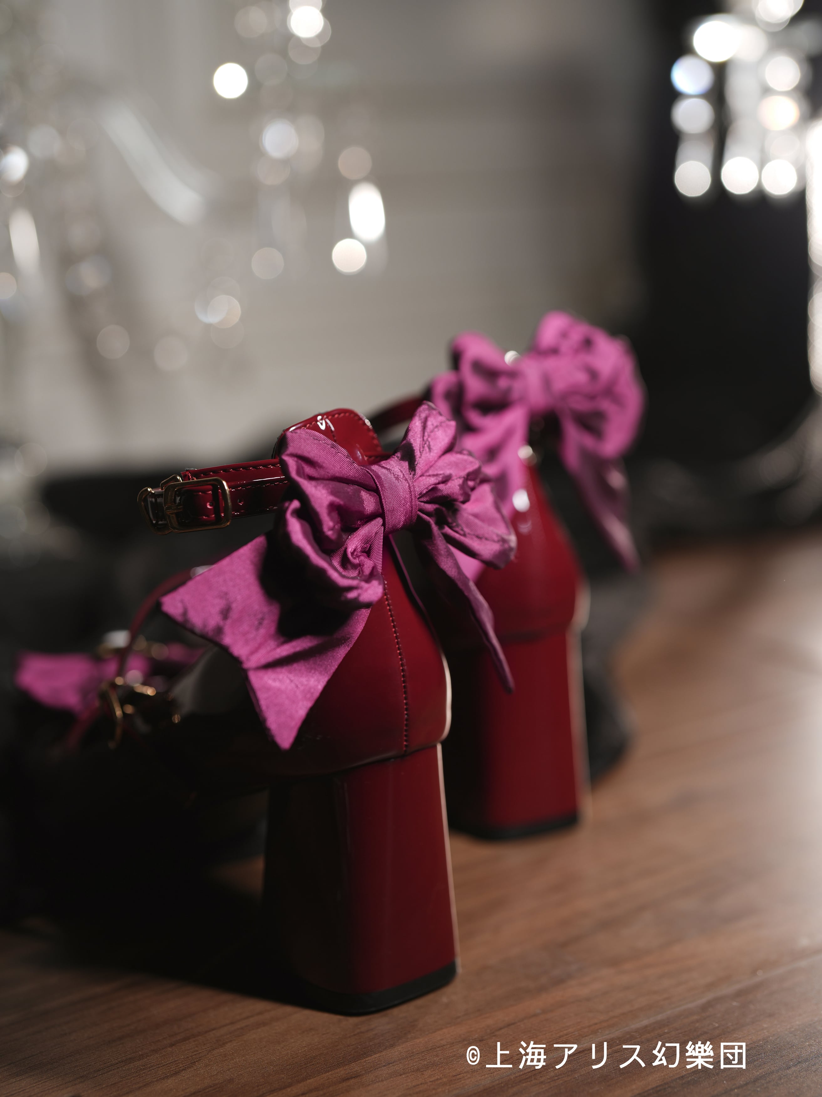 コーデ全体の統一感を出しつつ、テール部をワンピースとは異なるアレンジにすることで足元を華やかに演出します。
