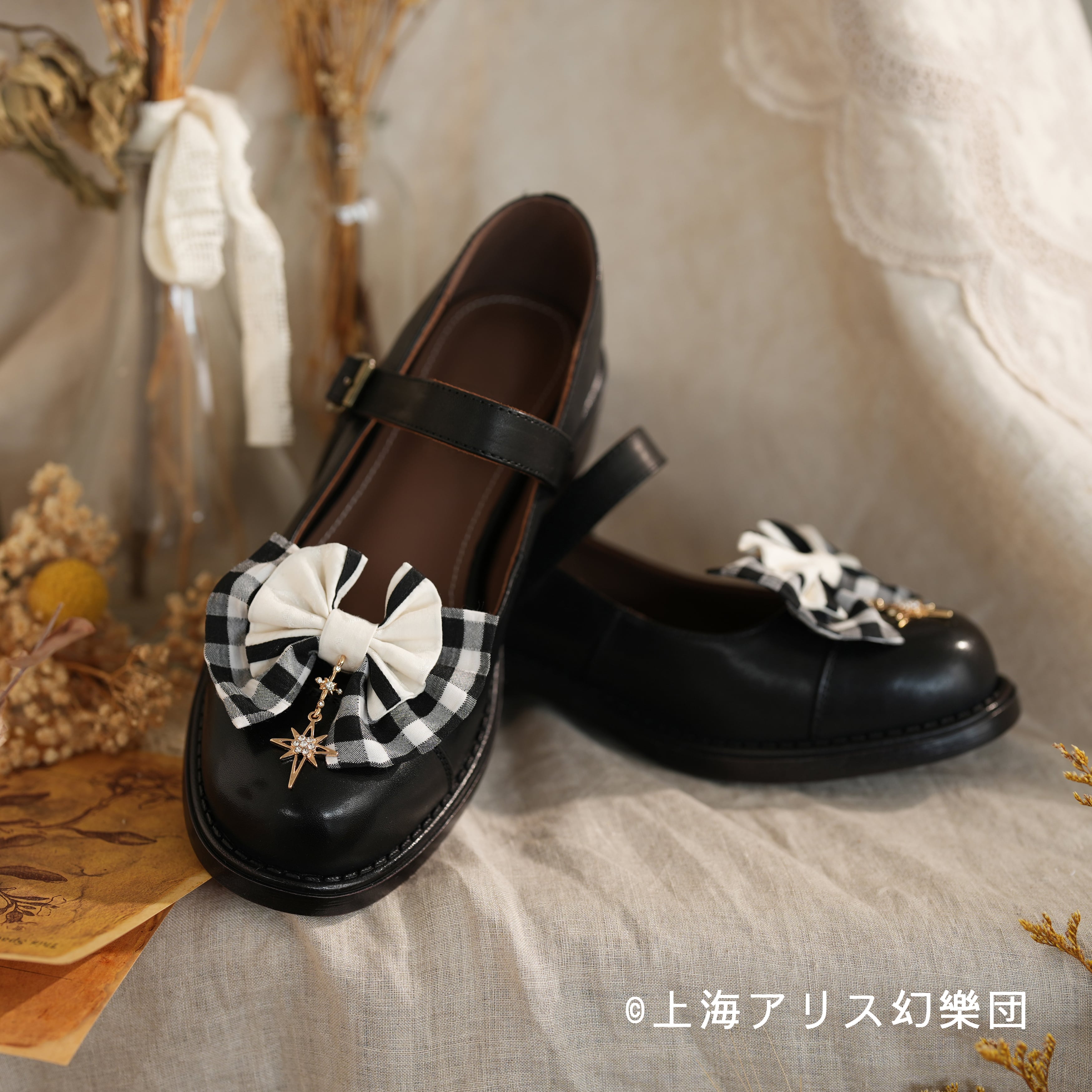 帽子・ワンピースでも使用されているギンガムチェック柄のリボンで足元も含めた統一感を演出します。