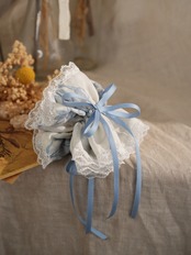 繊細なリボンできゅっとまとめたフラワーブーケを袖口に♡