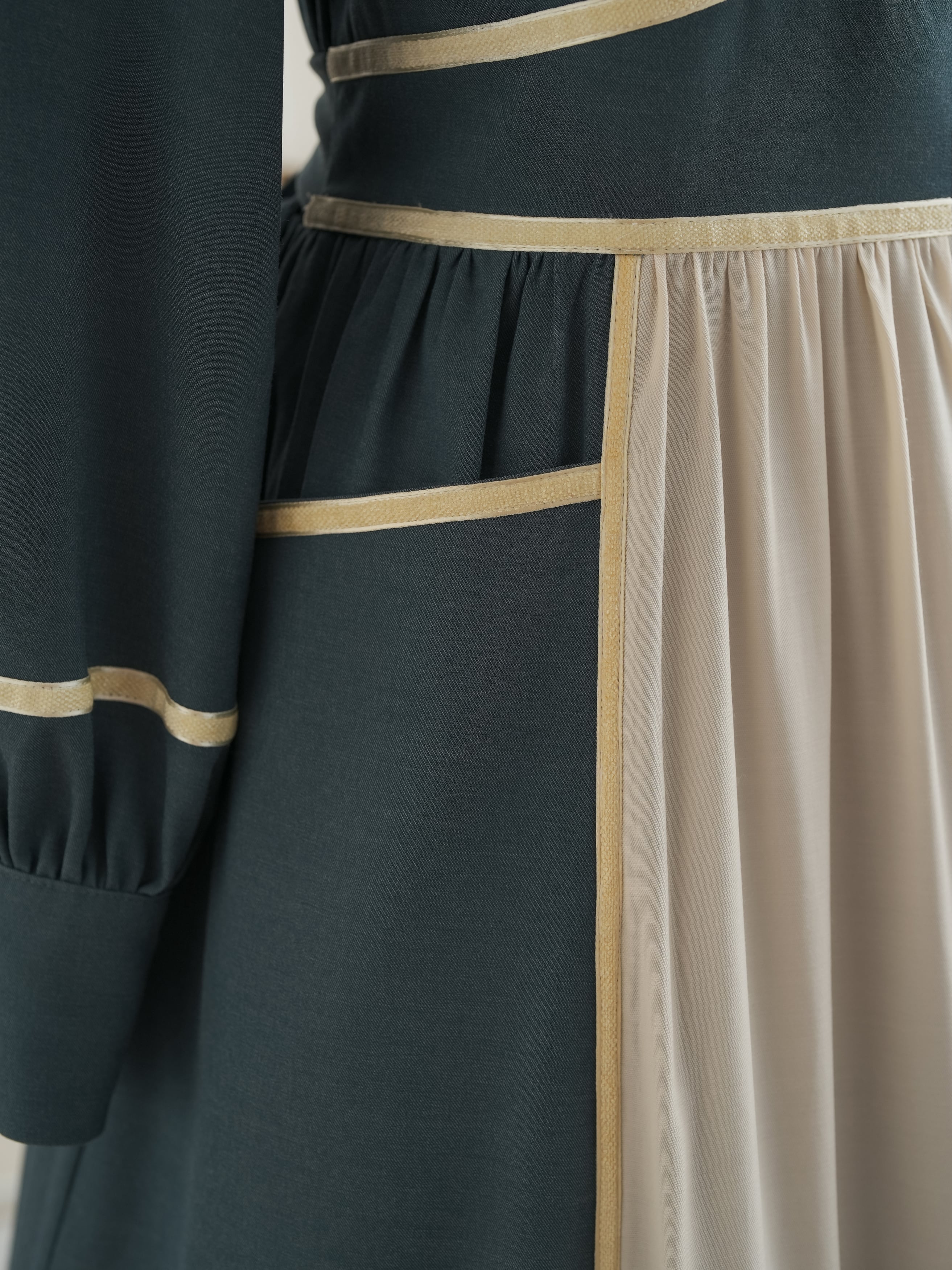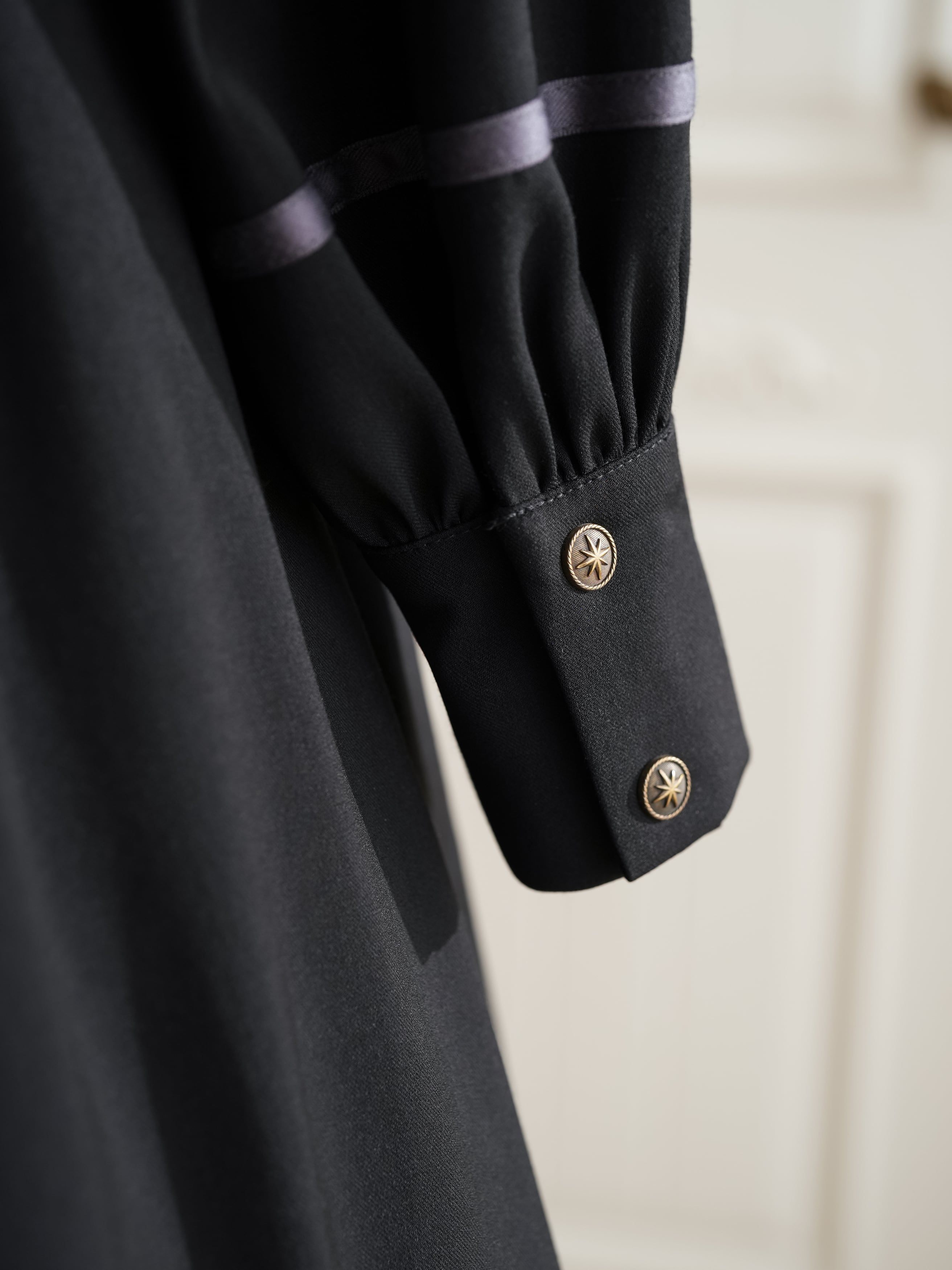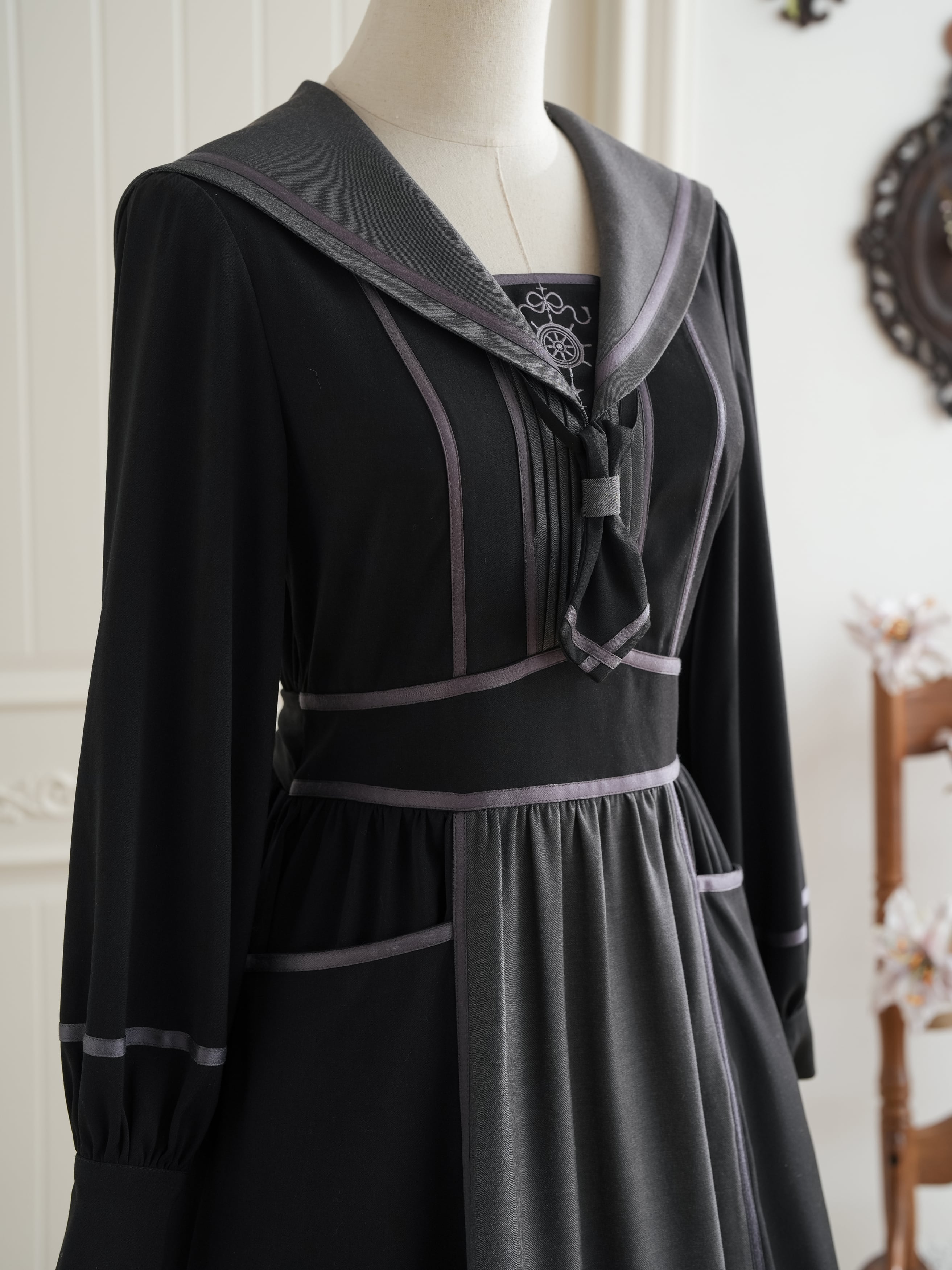 知的な印象のパネルデザインのワンピースは、落ち着きを感じるロング丈。