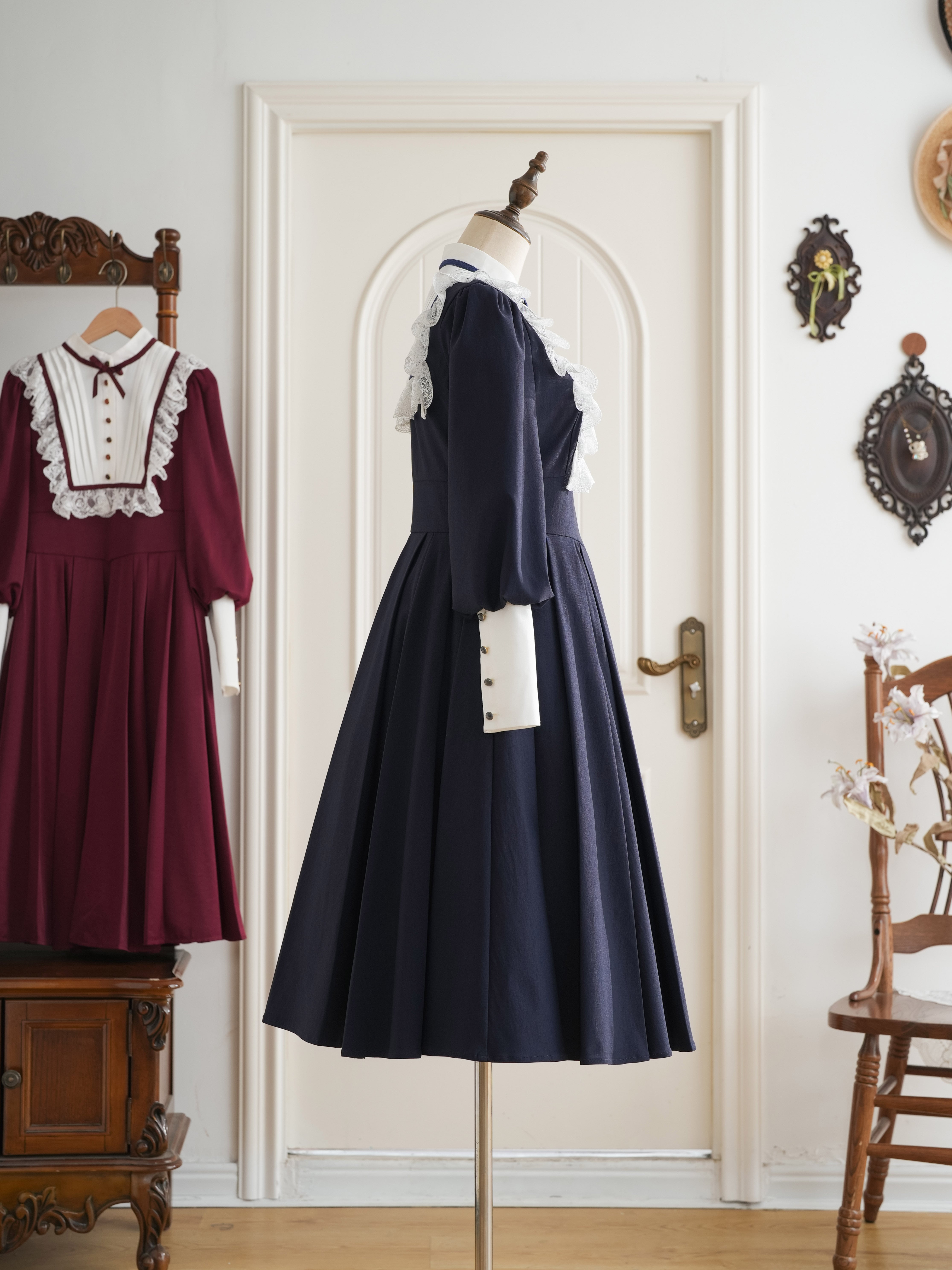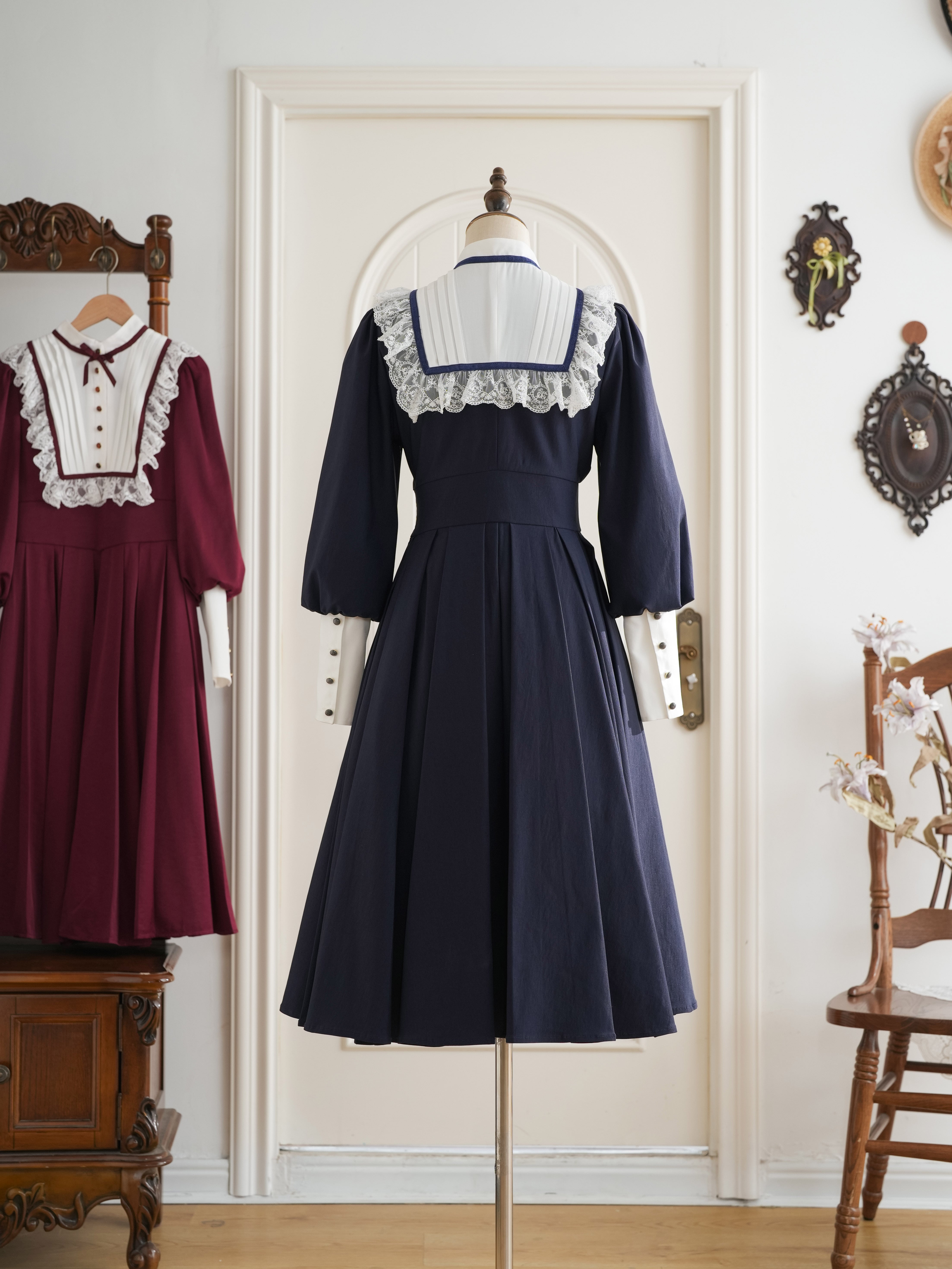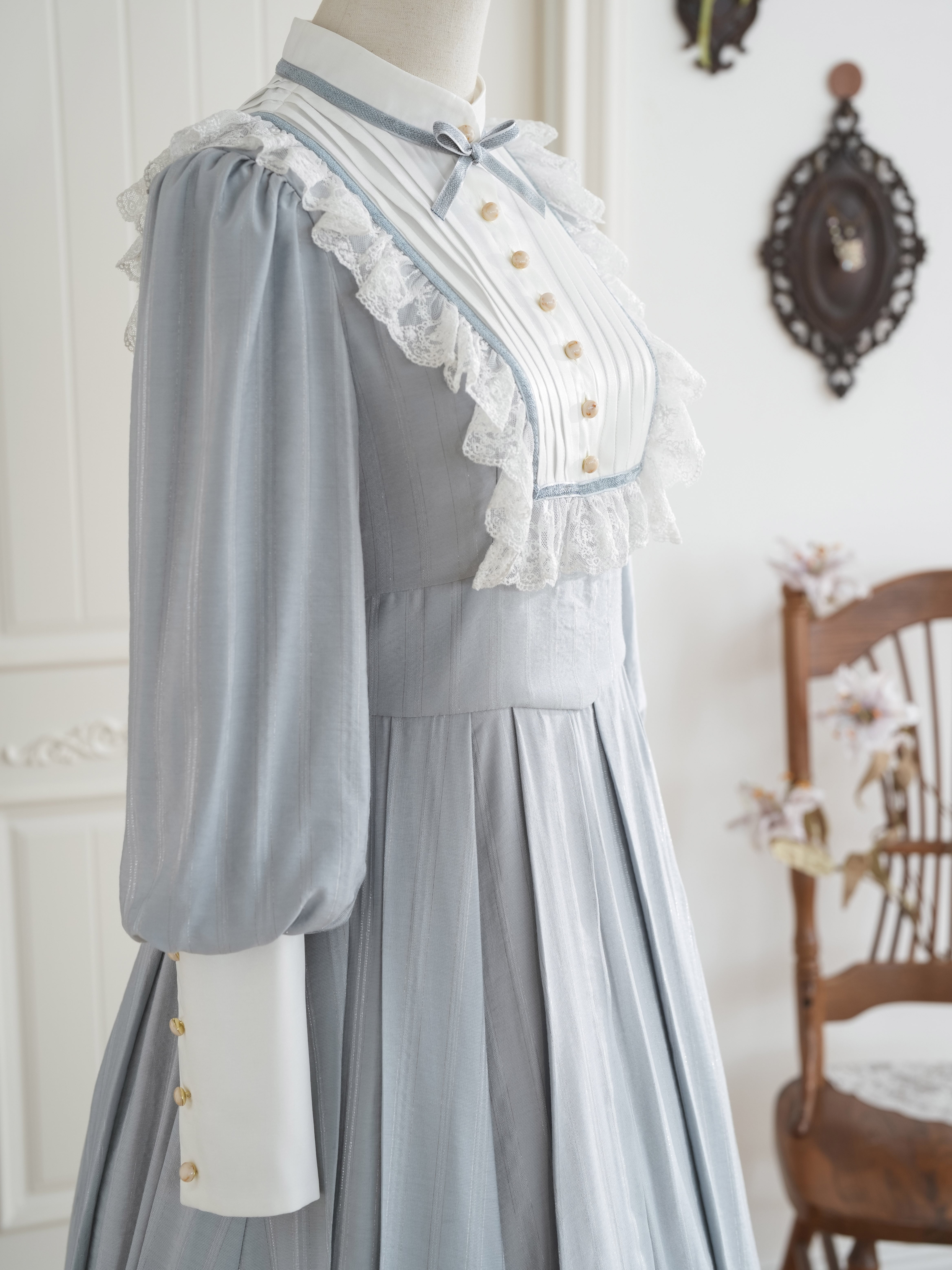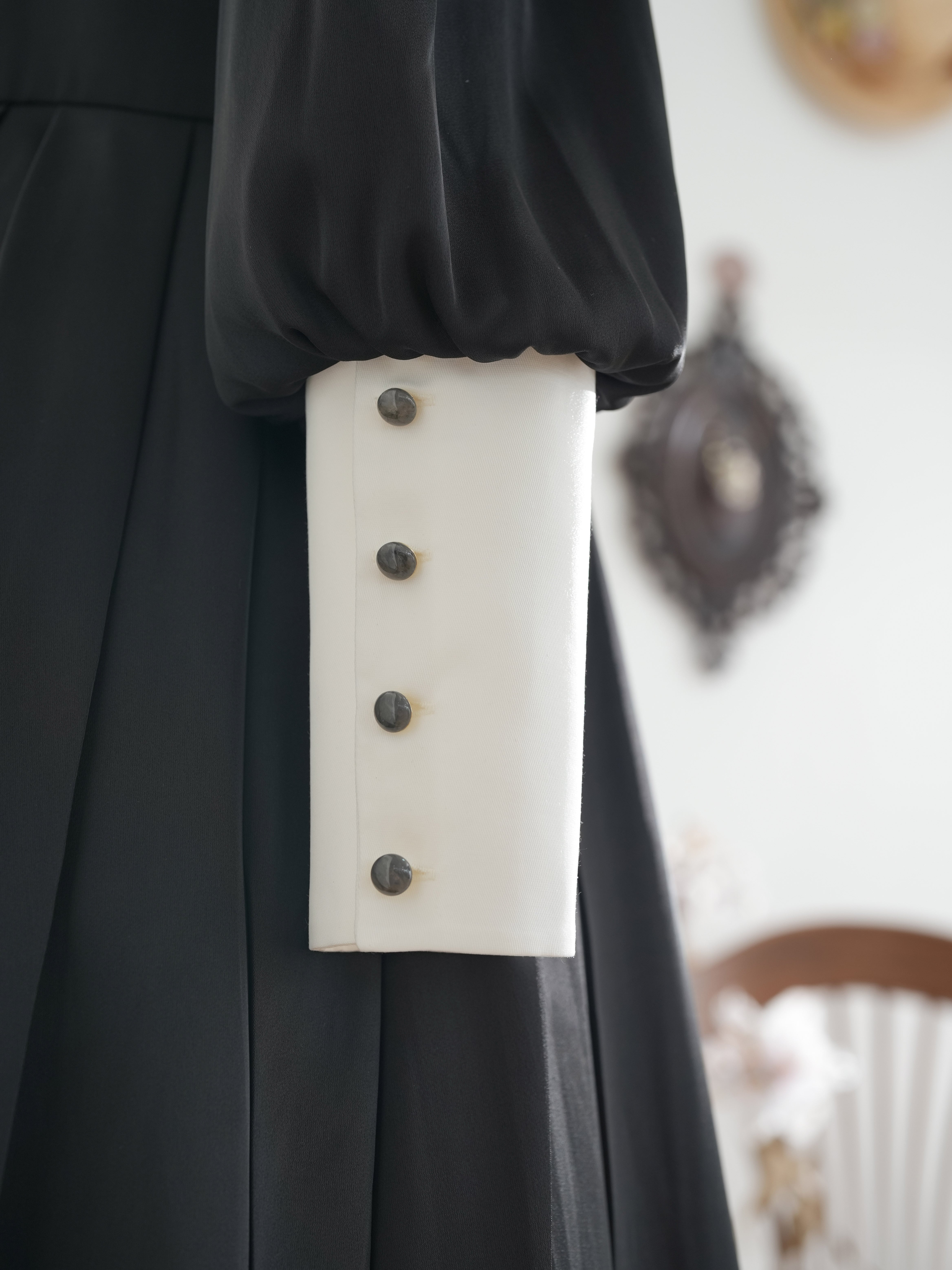 レトロな配色使いや、繊細なレース生地のクレリックヨーク、スタンドカラーなど細部までこだわりをぎゅっと詰め込みました。