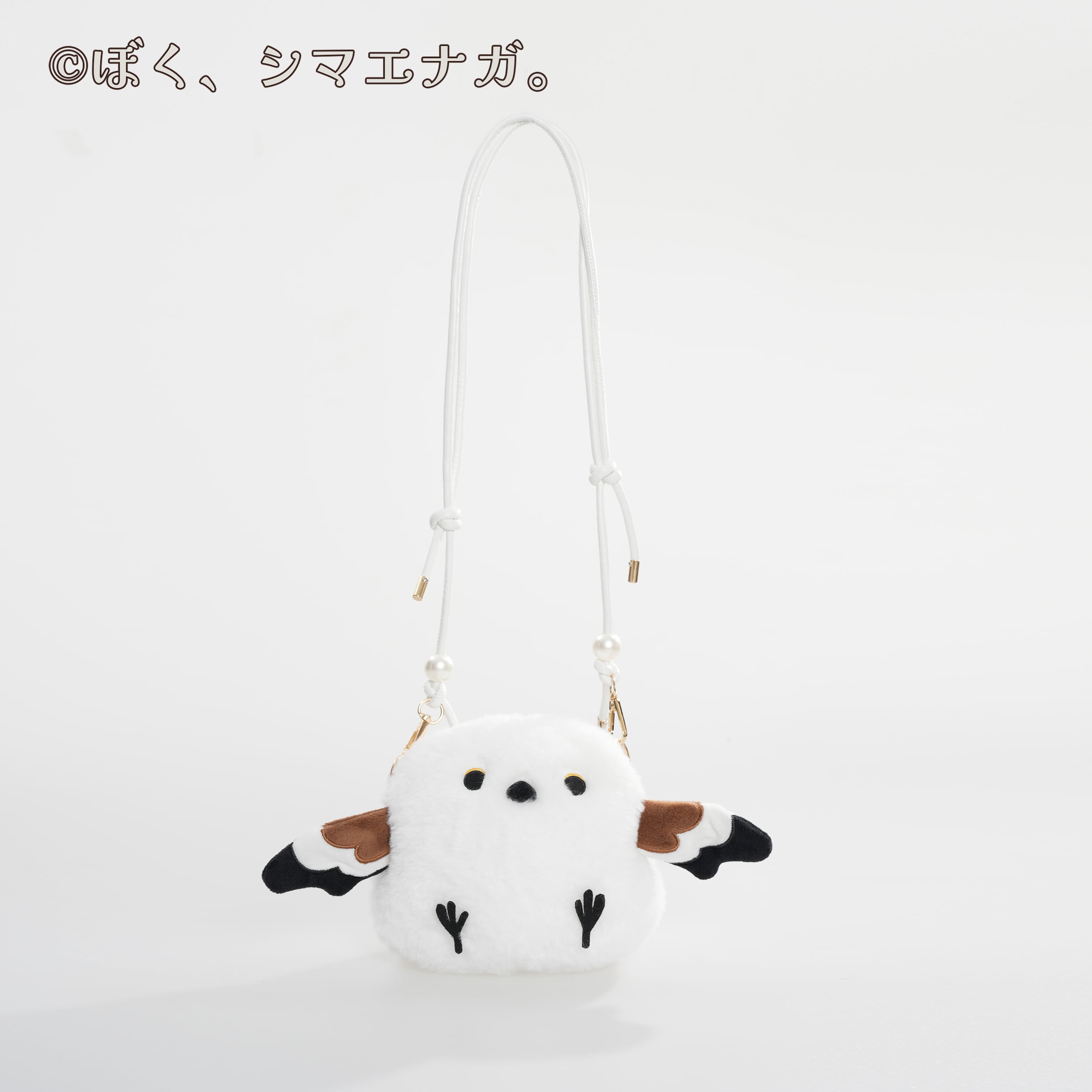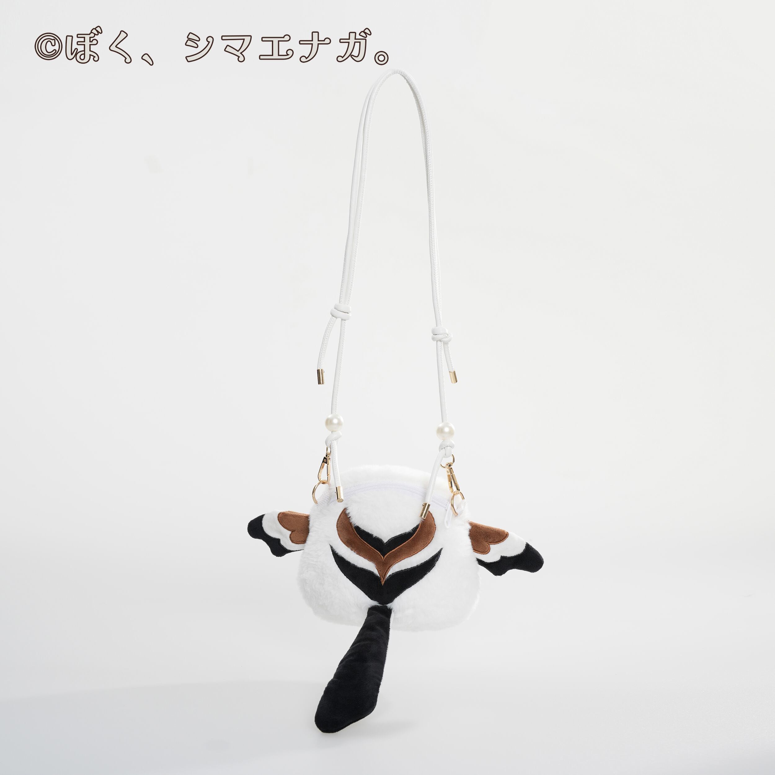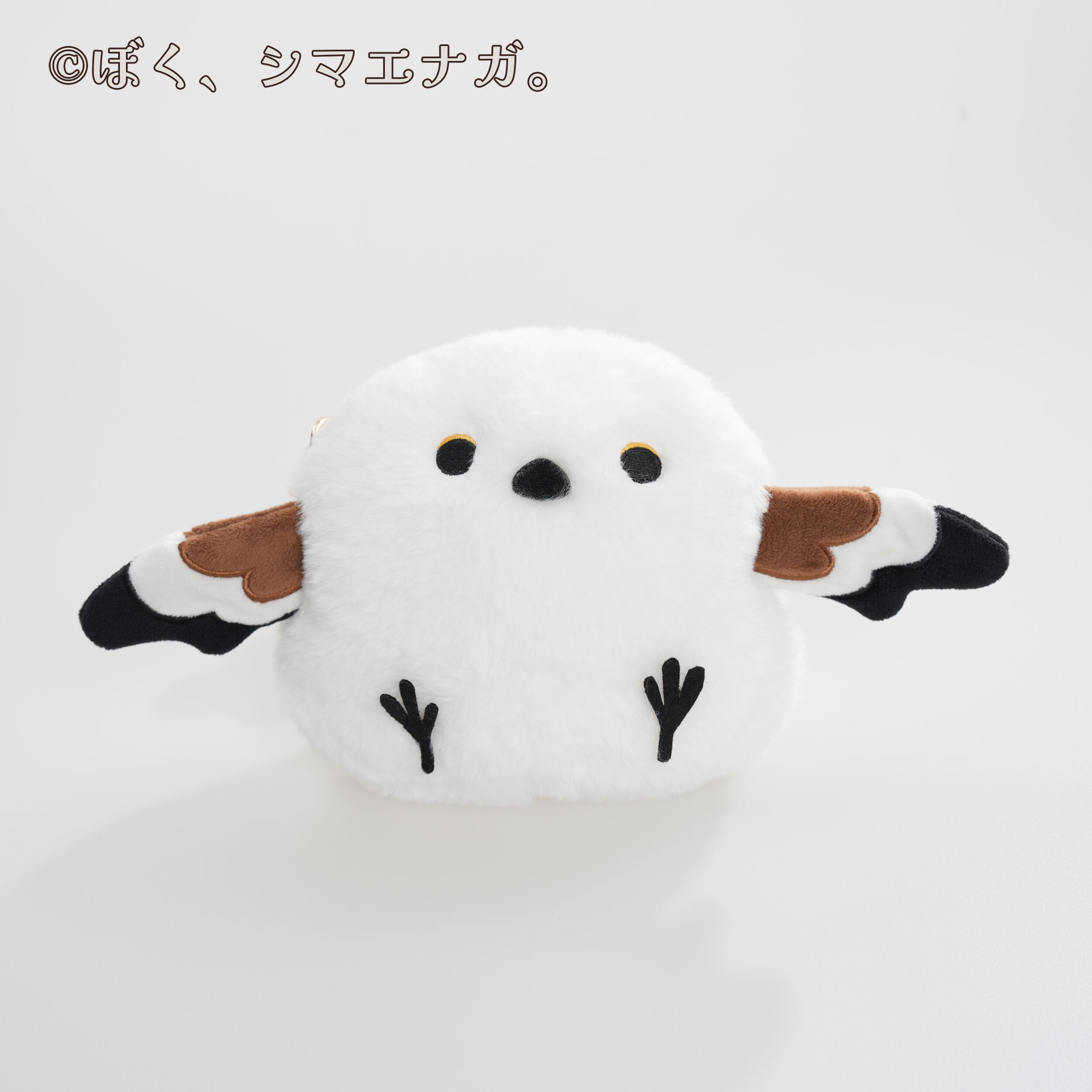 キュートなシマエナガをモチーフにしたぬいぐるみポシェット。